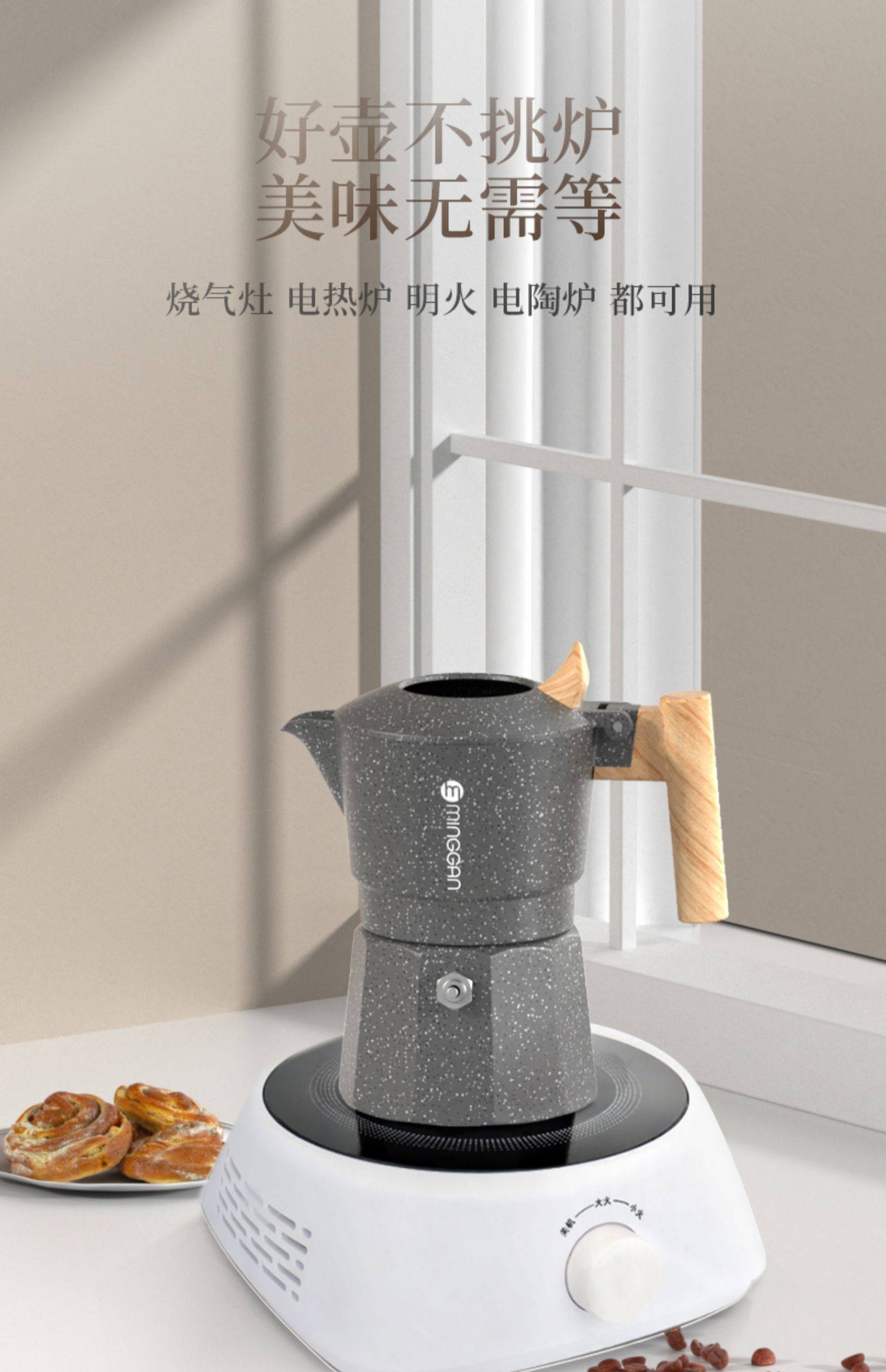 鸣感 Двойной клапан мокко горшок с наддувным кофейным горшками мебель ретро -европейский в стиле открытый лагерь, означающий концентрированный кофе 具