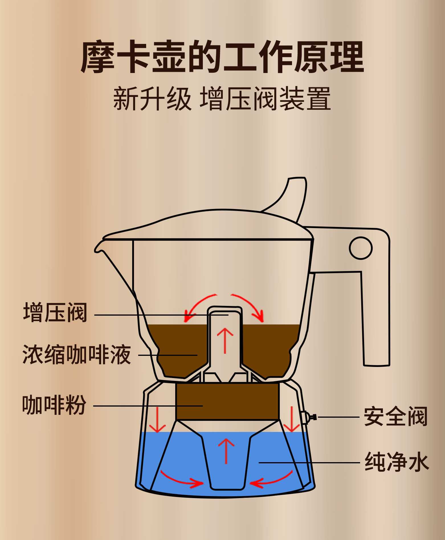 Четыре поколения клапанов, одна кофеварка для мока, два клапана, две чашки, бытовое оборудование для экстракции эспрессо, кофеварка для эспрессо.