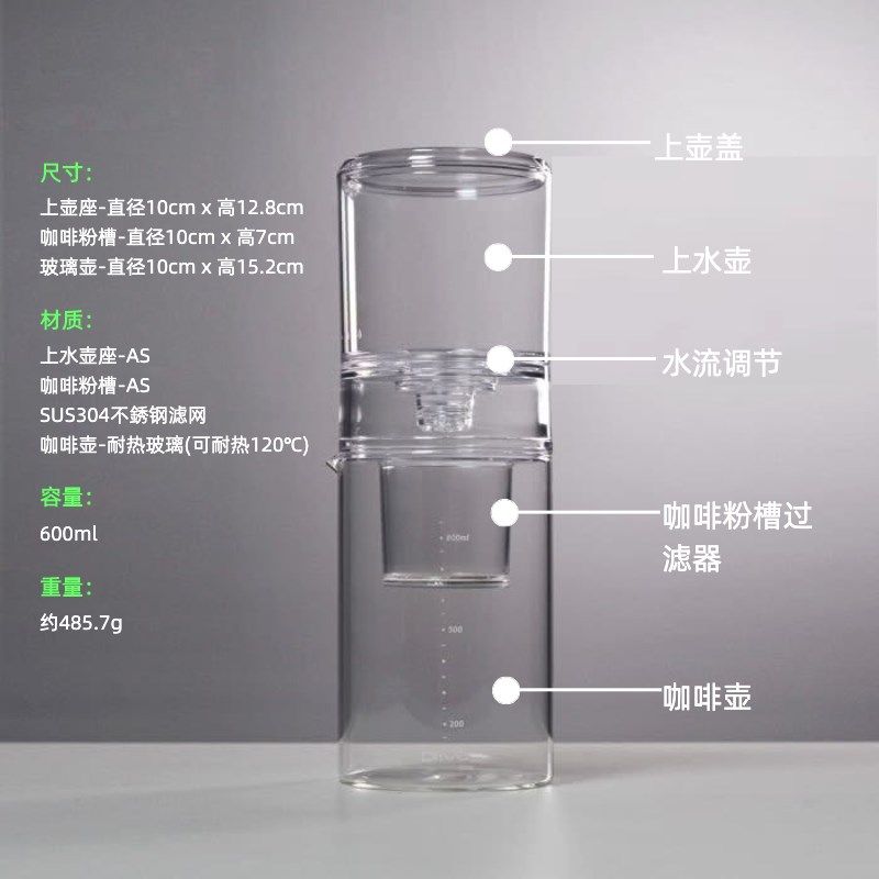 Rive -type -ice -drop Cold Coffee Pot Утечка с холодным пеной с оригинальным фильтром P -фильтра o Пленка