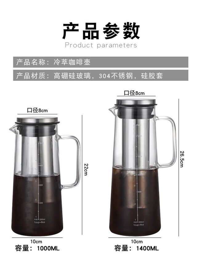 Кофейный холодный напиток для домашнего использования, мундштук, холодный чай, стеклянный заварочный чайник, в американском стиле, увеличенная толщина