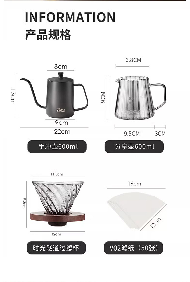 Bincoo Hand -coffee Установите домашний кофейный фильтр стеклян