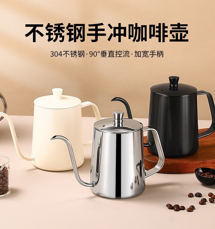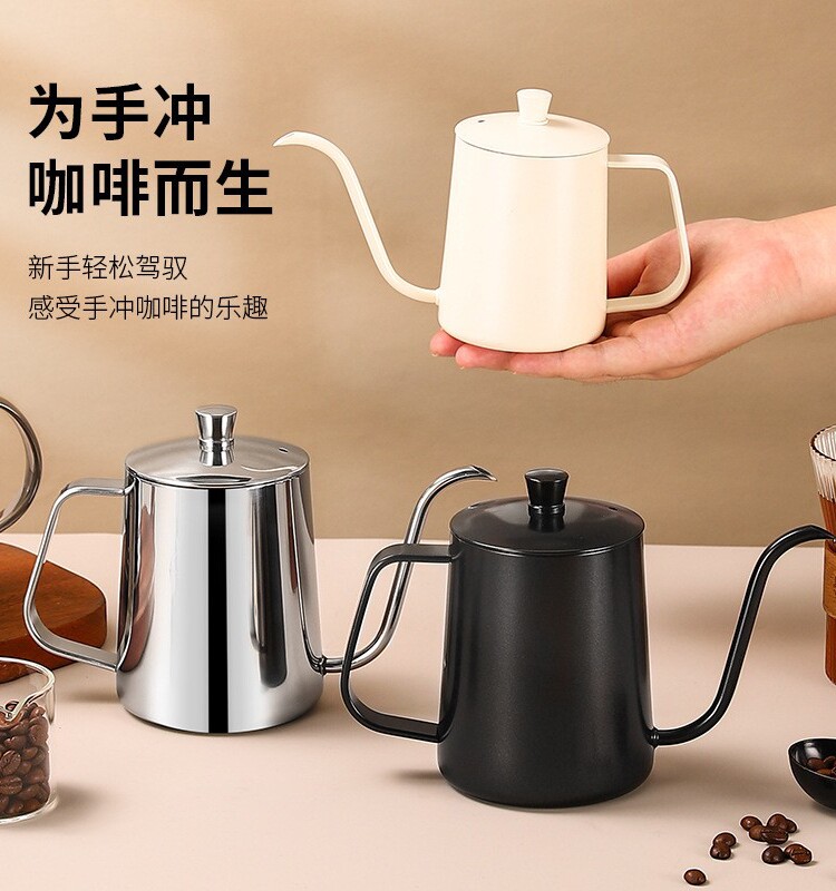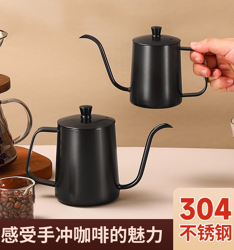 Чайник для ручного заваривания кофе из нержавеющей стали 304 с крышкой, утолщенным узким горлышком, мини-кофейником с длинным носиком, подвесным чайником с подогревом