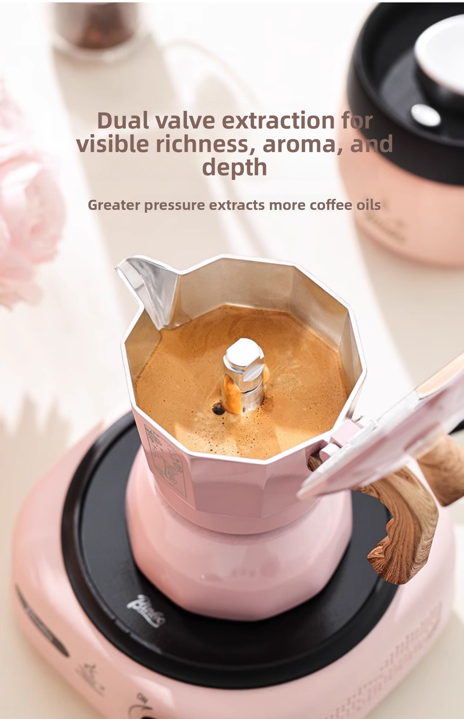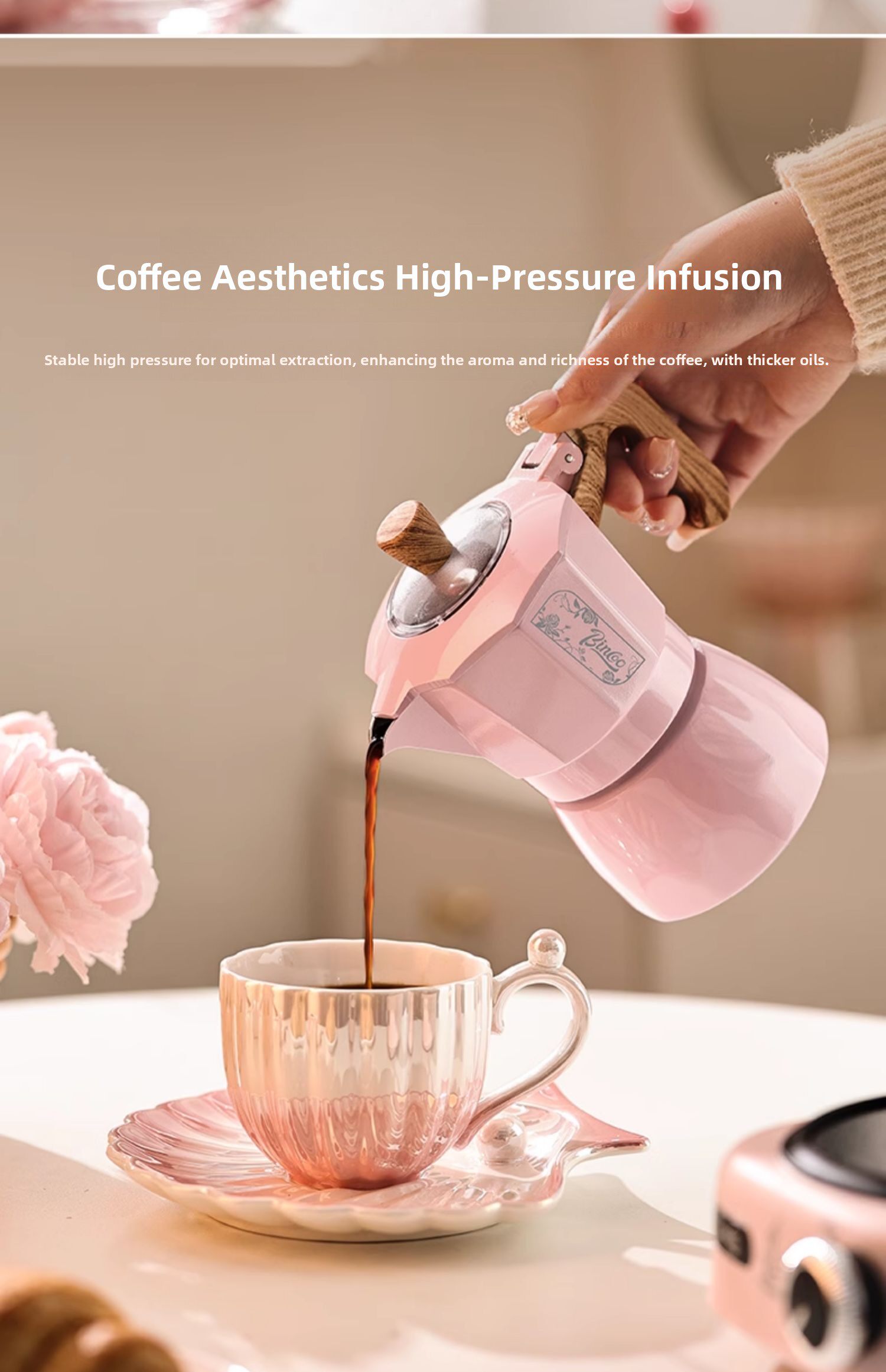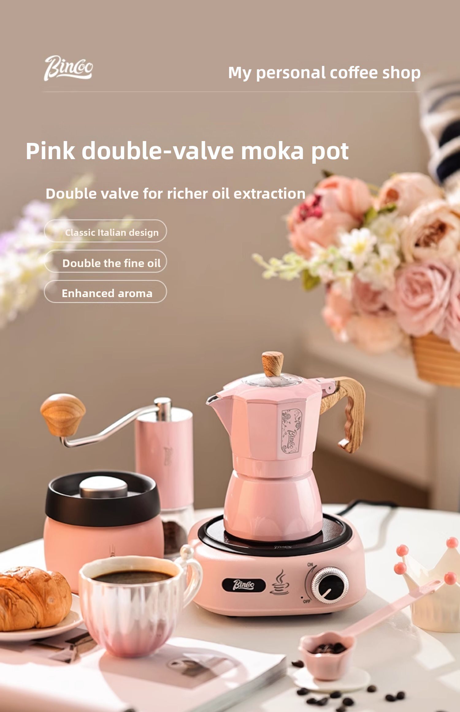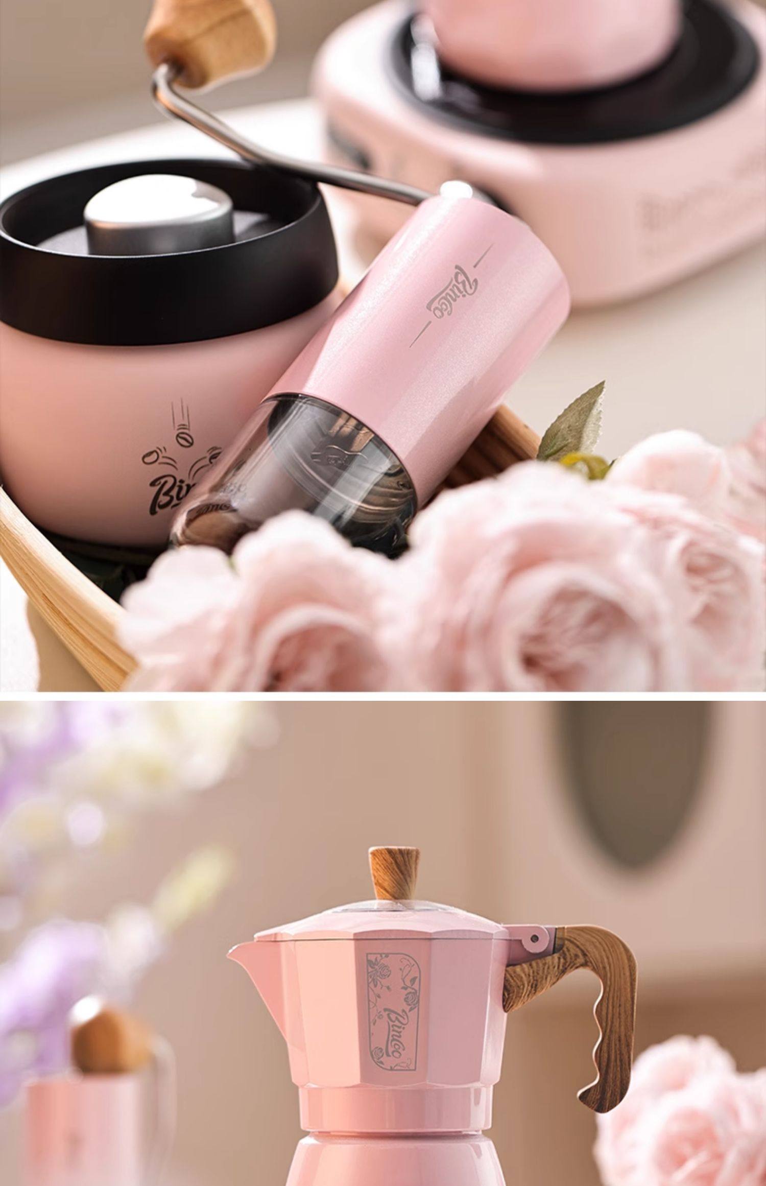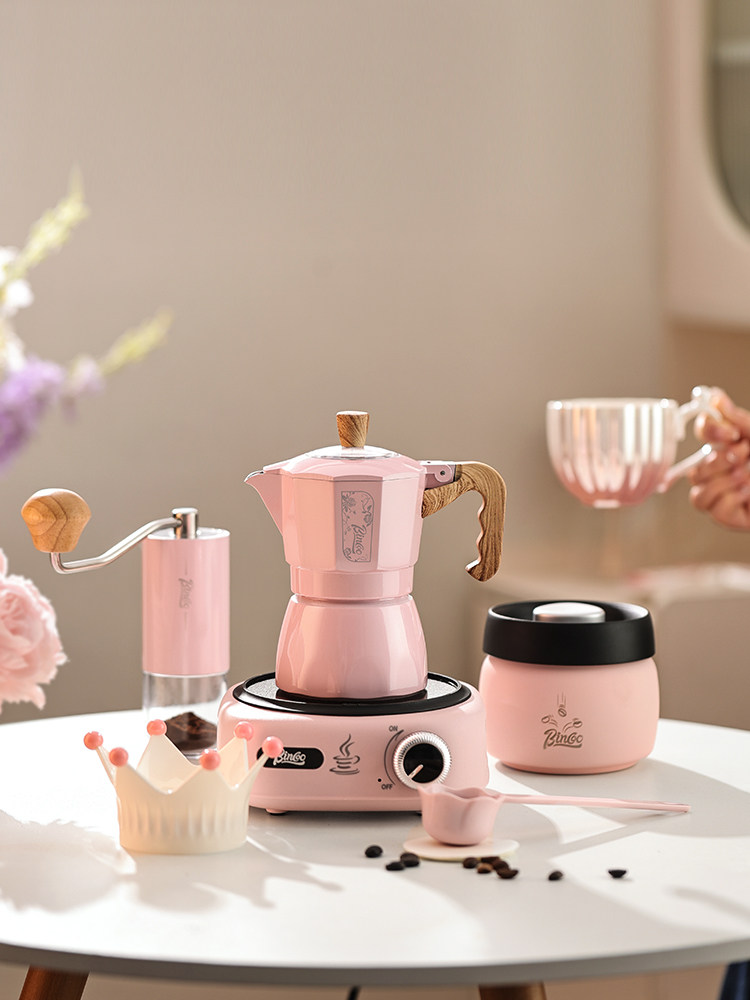 Мока-горшок Bincoo с двойным клапаном, красивый кофейник для девочек, бытовая маленькая ручная кофемолка для эспрессо, кофемашина