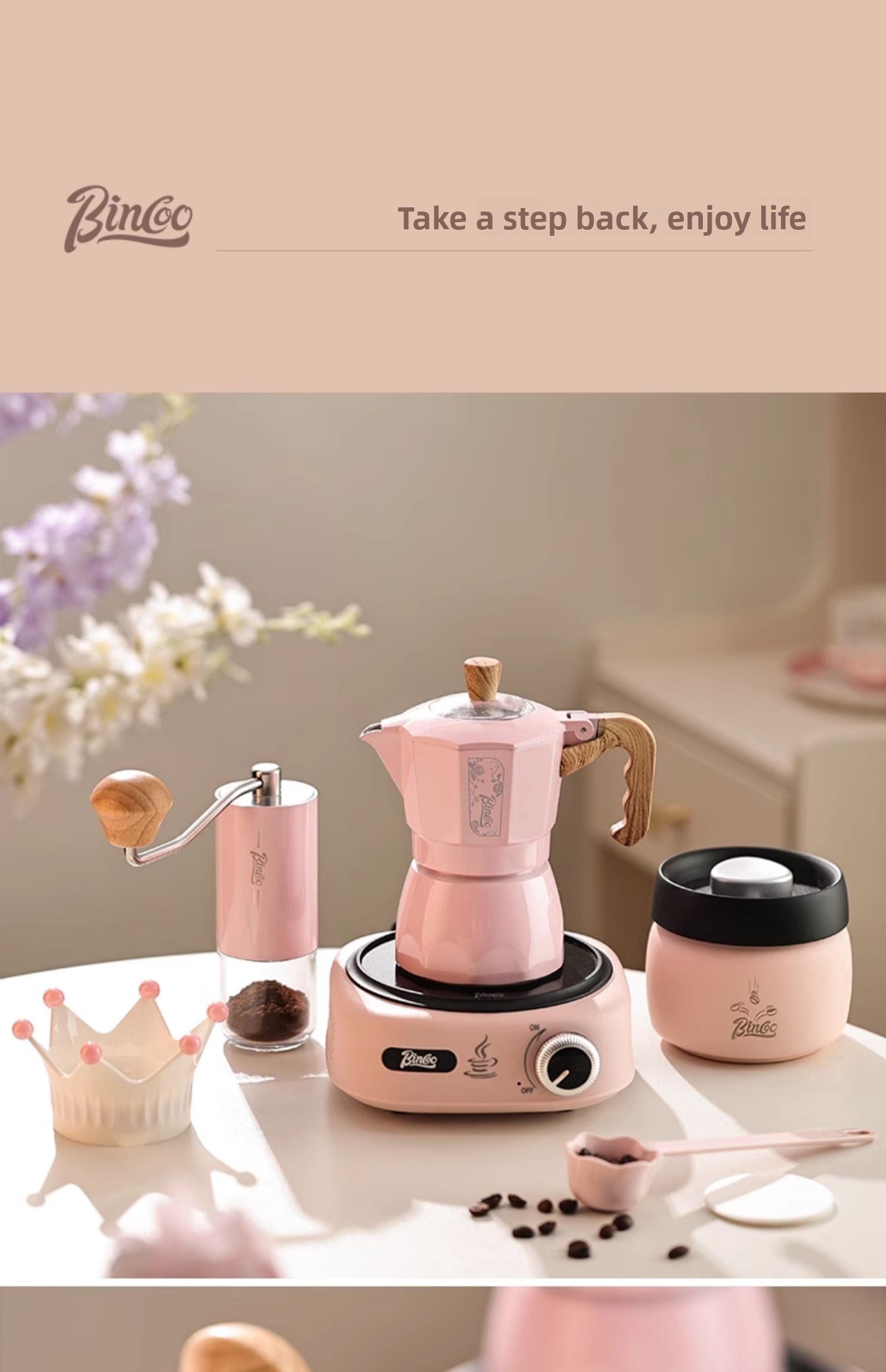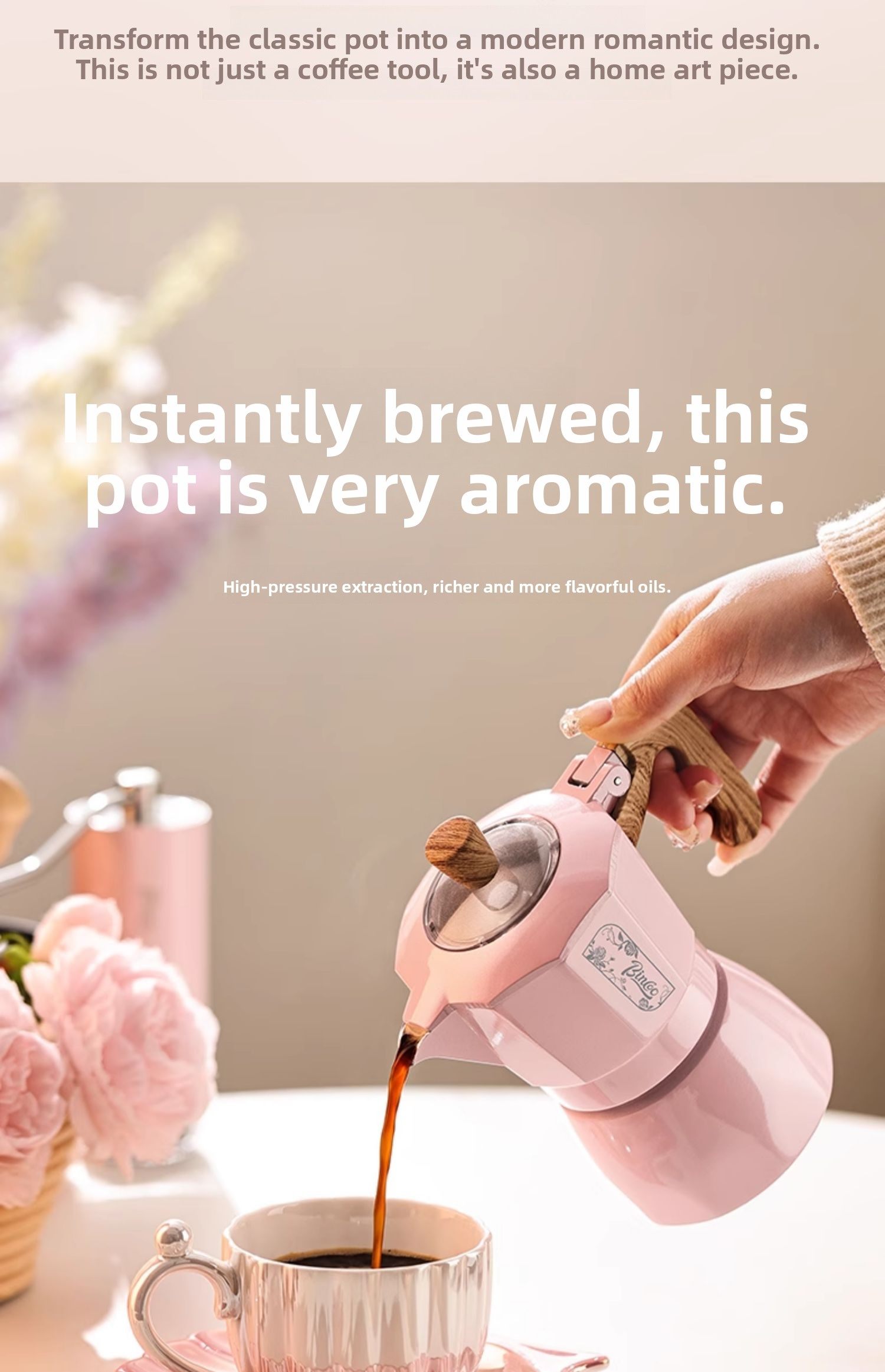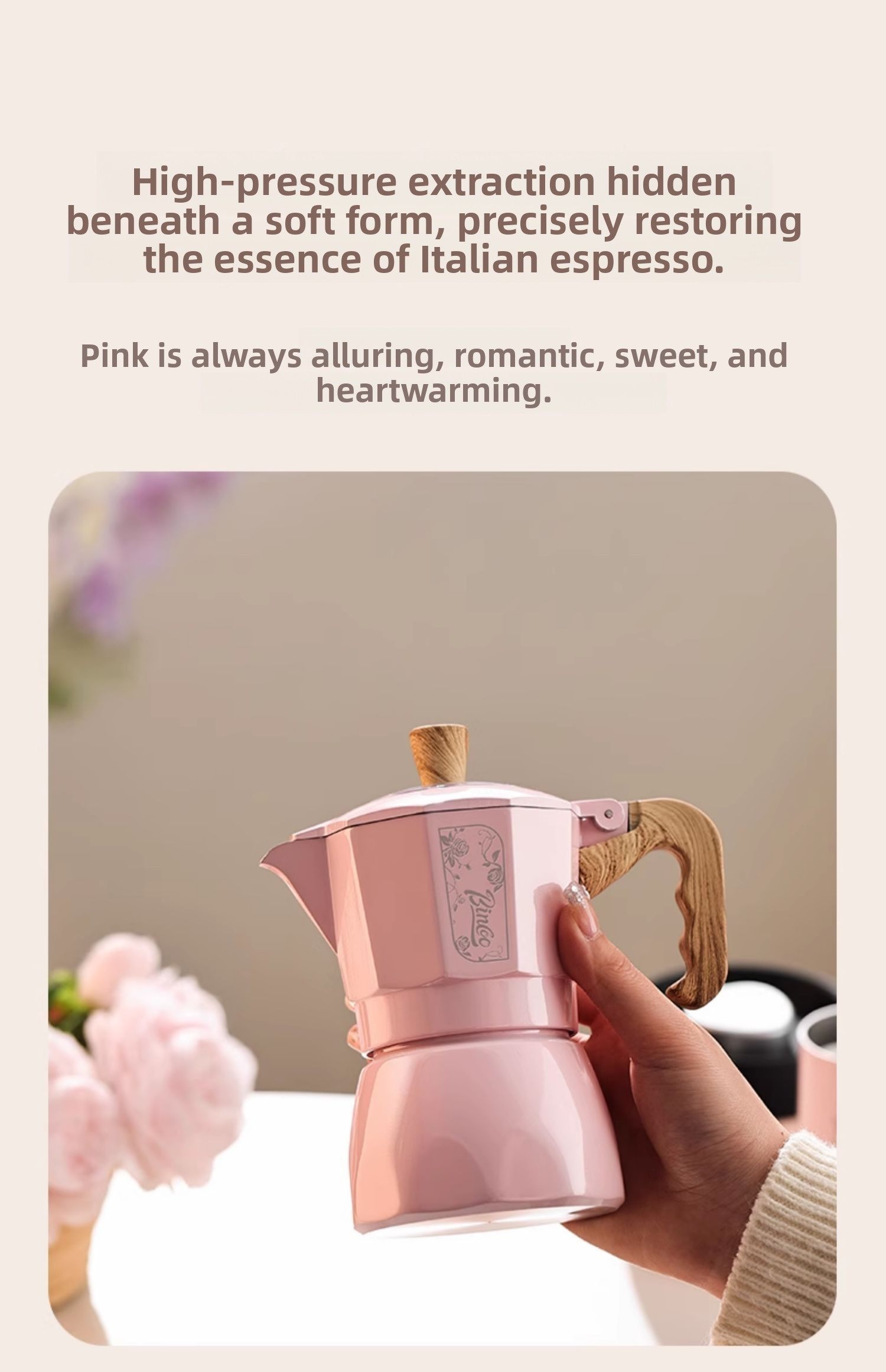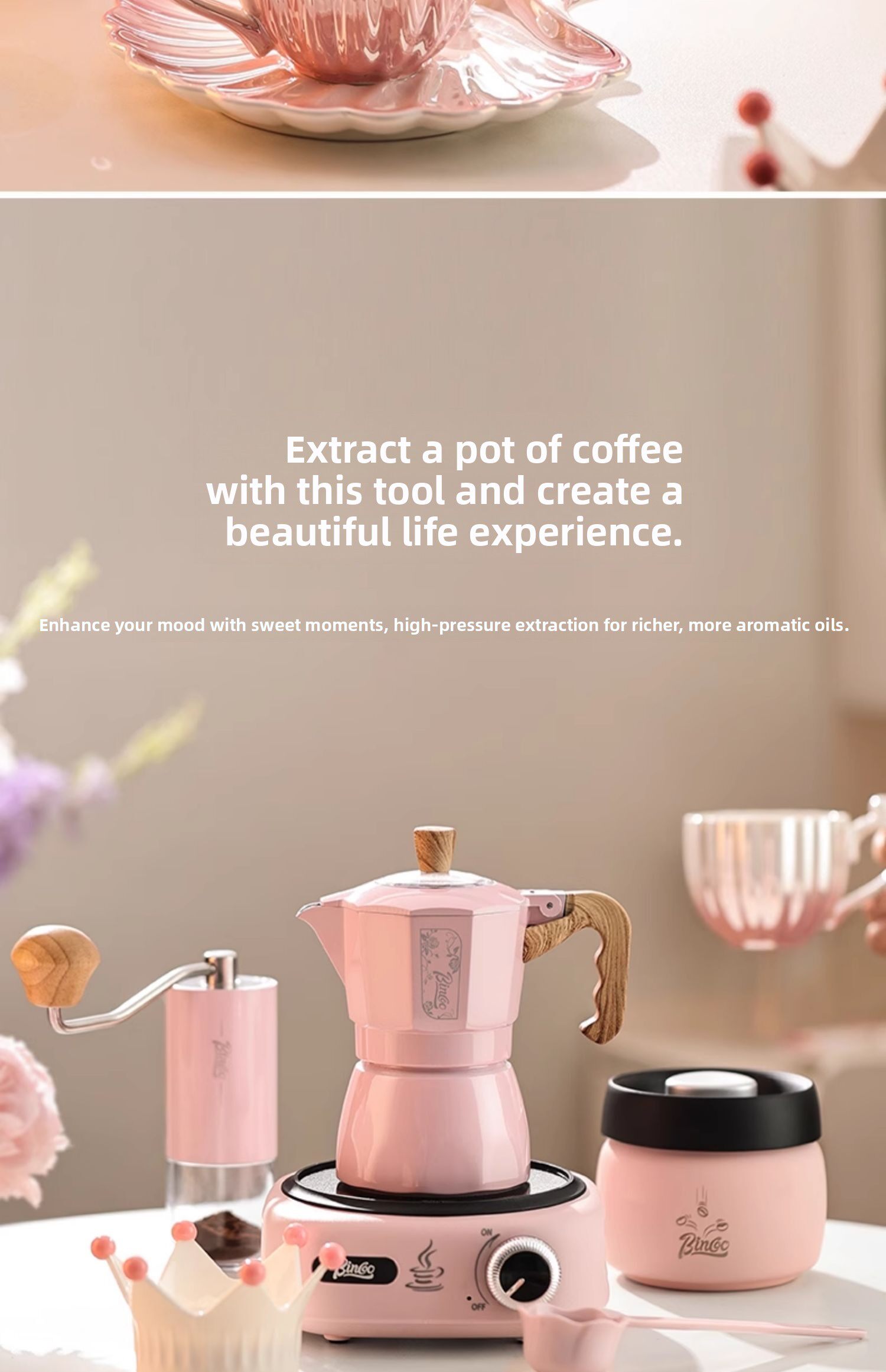 Мока-горшок Bincoo с двойным клапаном, красивый кофейник для девочек, бытовая маленькая ручная кофемолка для эспрессо, кофемашина