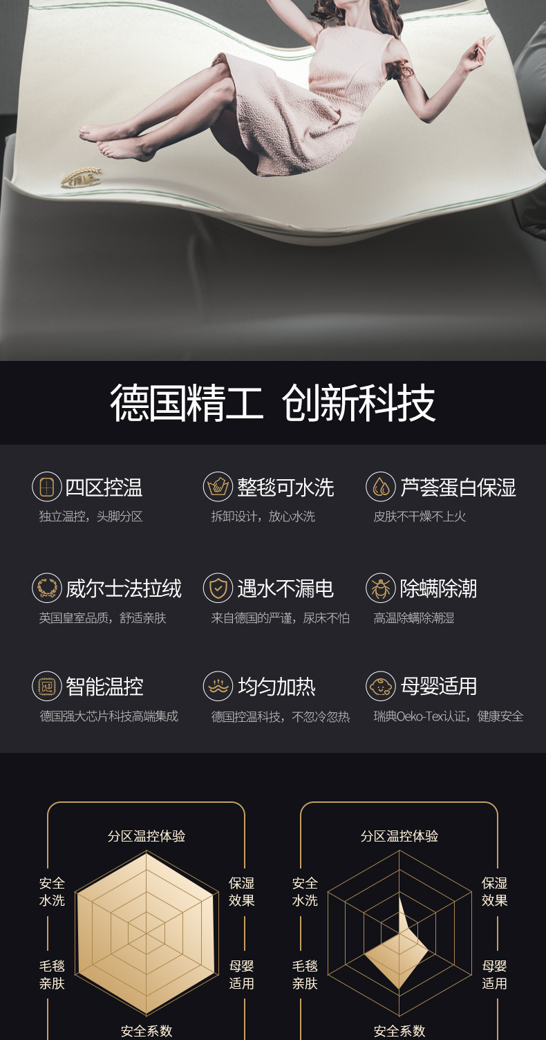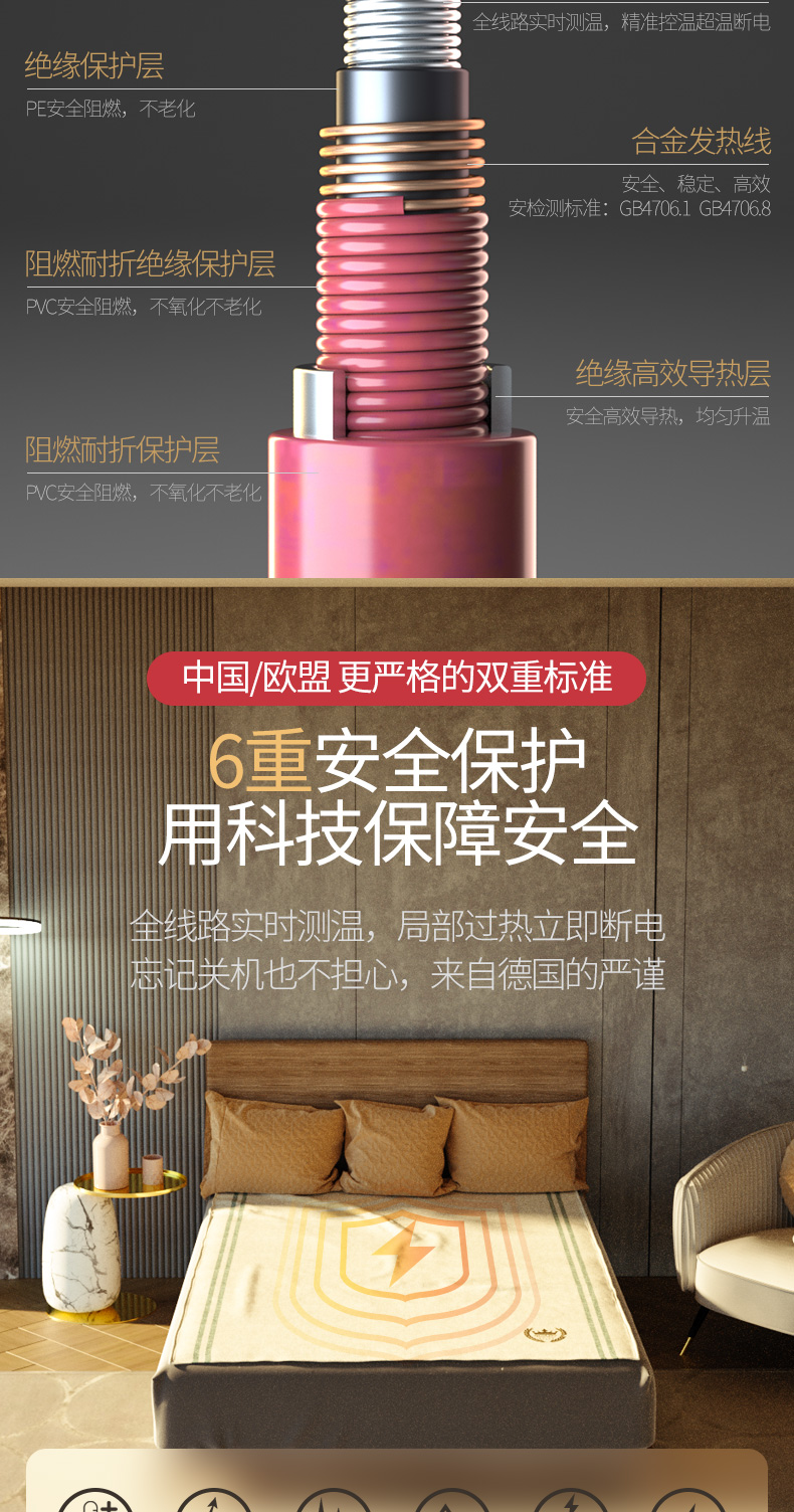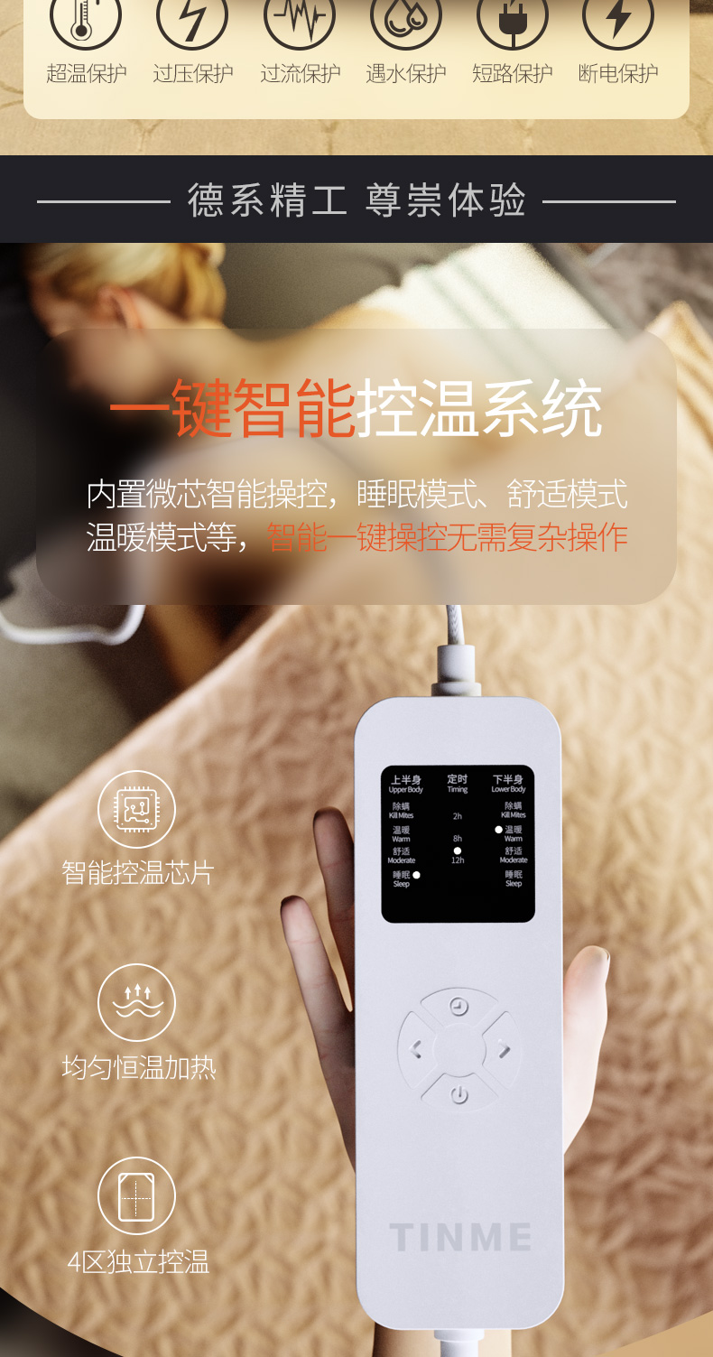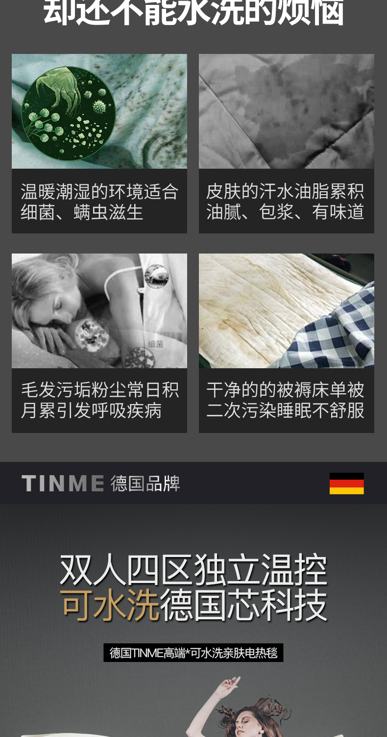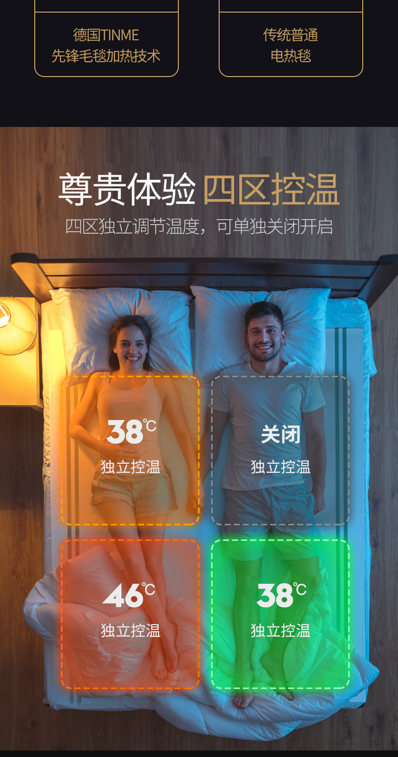 Германия Tinme Electric Blank Double Home с четырьмя районами с регулировкой температуры электрические матрасы Небольшое нагревание.