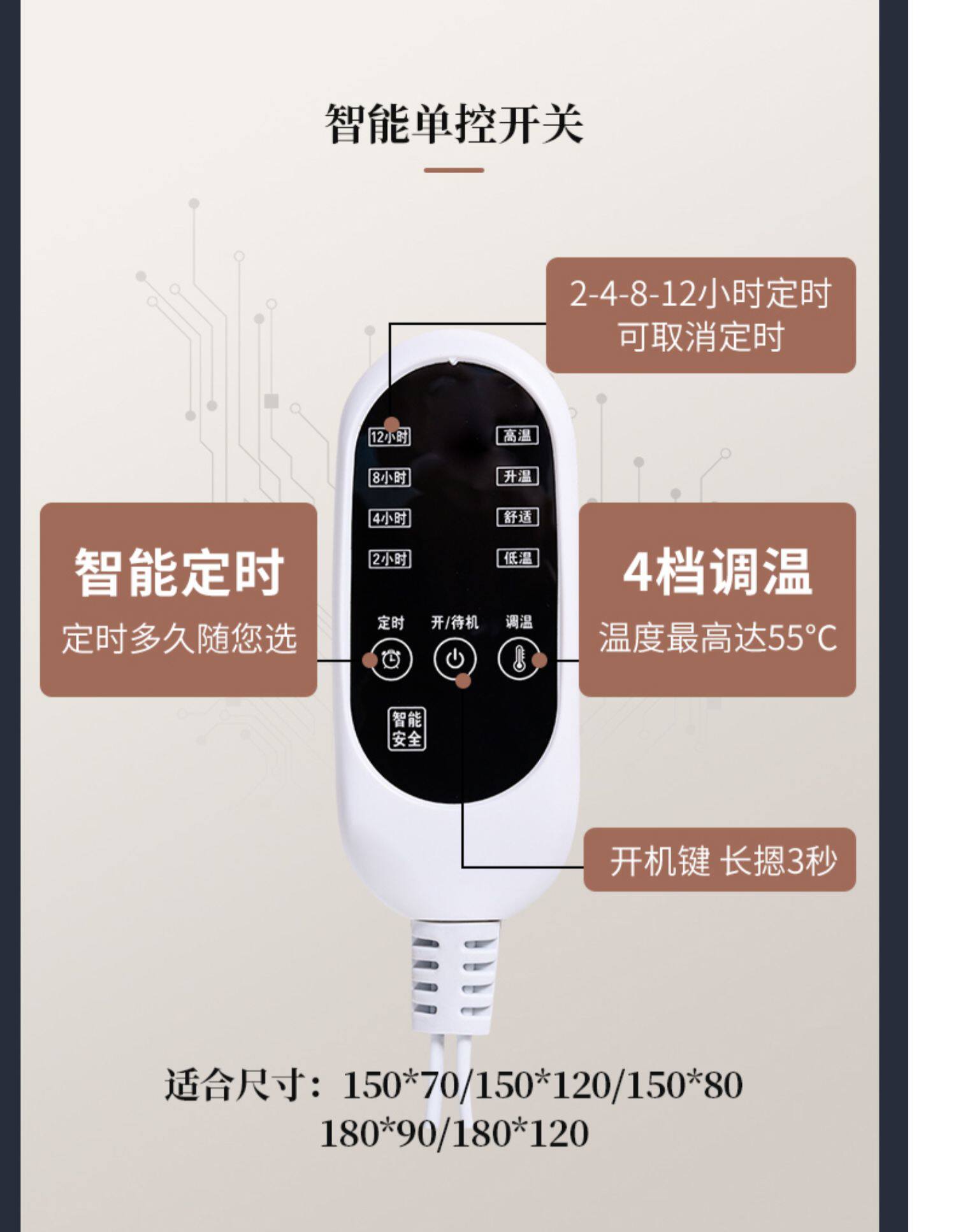- Brown Long Plush [180*150 Smart Four -Dear Dual Control]