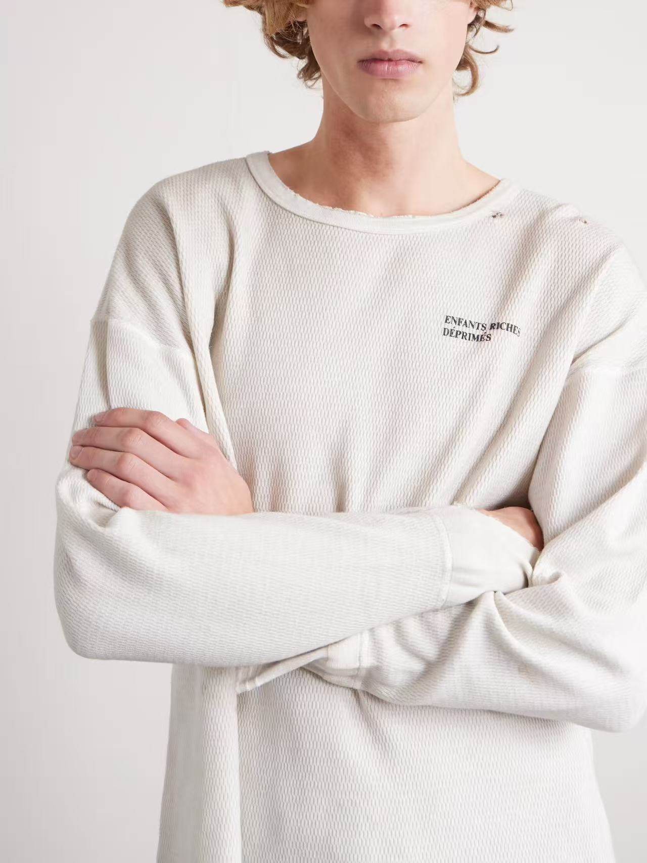 [Тот же стиль, что и у Лорен Ли Шэнцзюнь] ERD 25FW, богатое, потертое, грязно-белое, грязно-белое слоган второго поколения, вафельные длинные рукава с принтом второго поколения.
