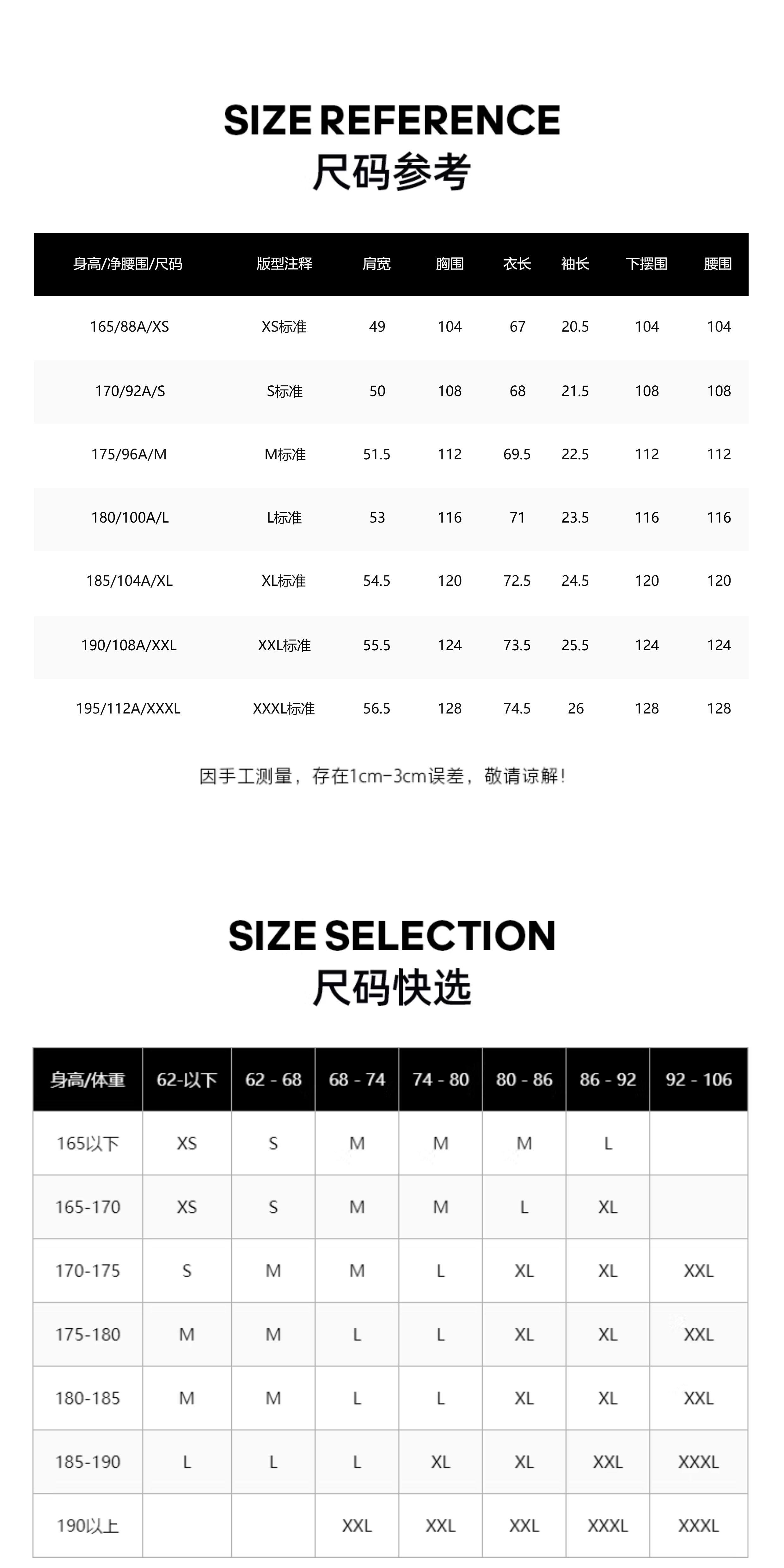 | Размер: | 165/88A/XS, 170/92A/S, 175/96A/M, 180/100A/L, 185/104A/XL, 190/108A/XXL, 195/112A/XXXL |