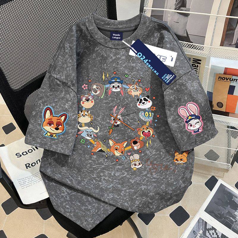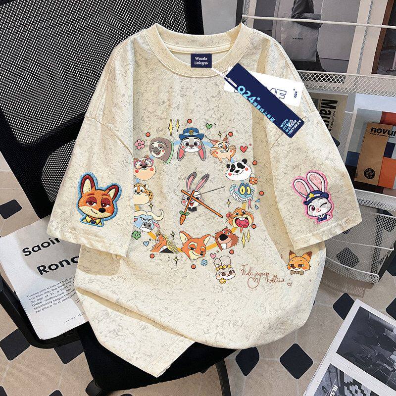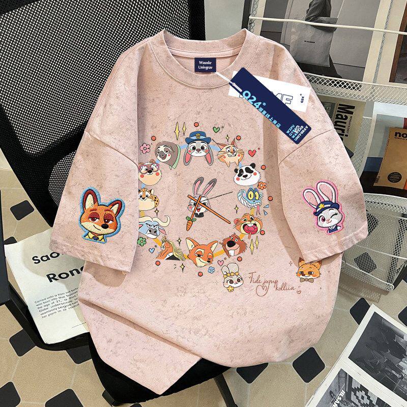Мультяшная летняя трендовая футболка с коротким рукавом с круглым воротником, с вышивкой, большой размер