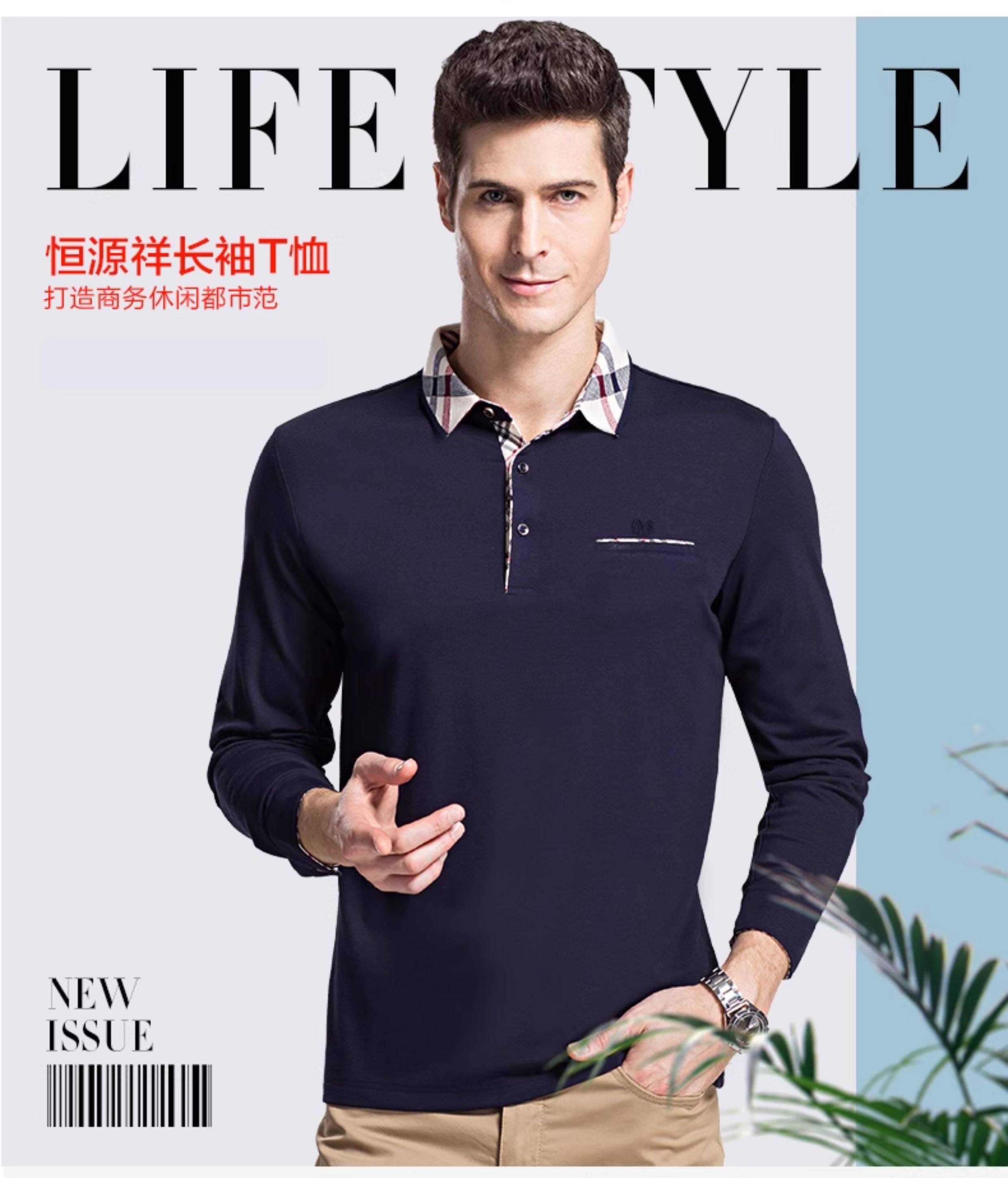 恒源祥 Мужской демисезонный лонгслив для отдыха, высокий воротник, оверсайз