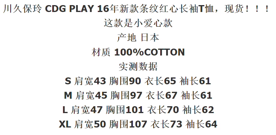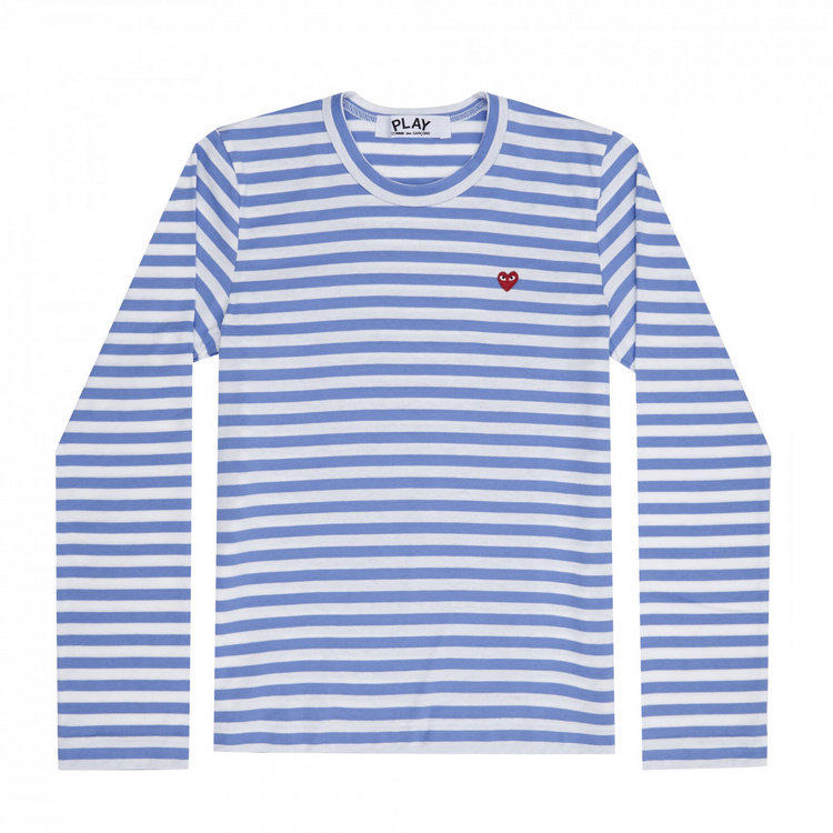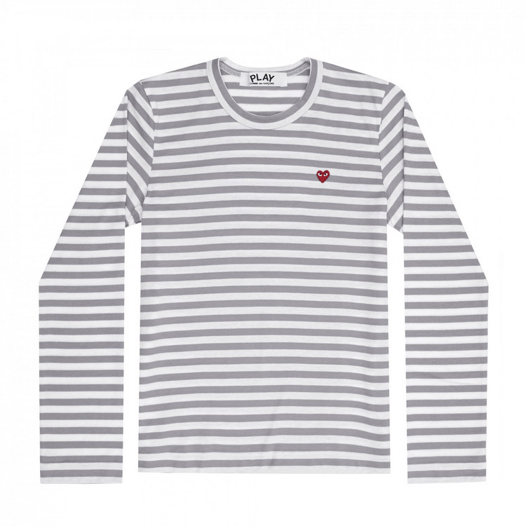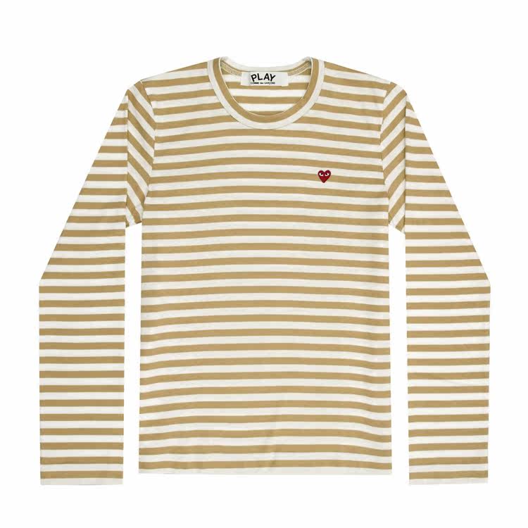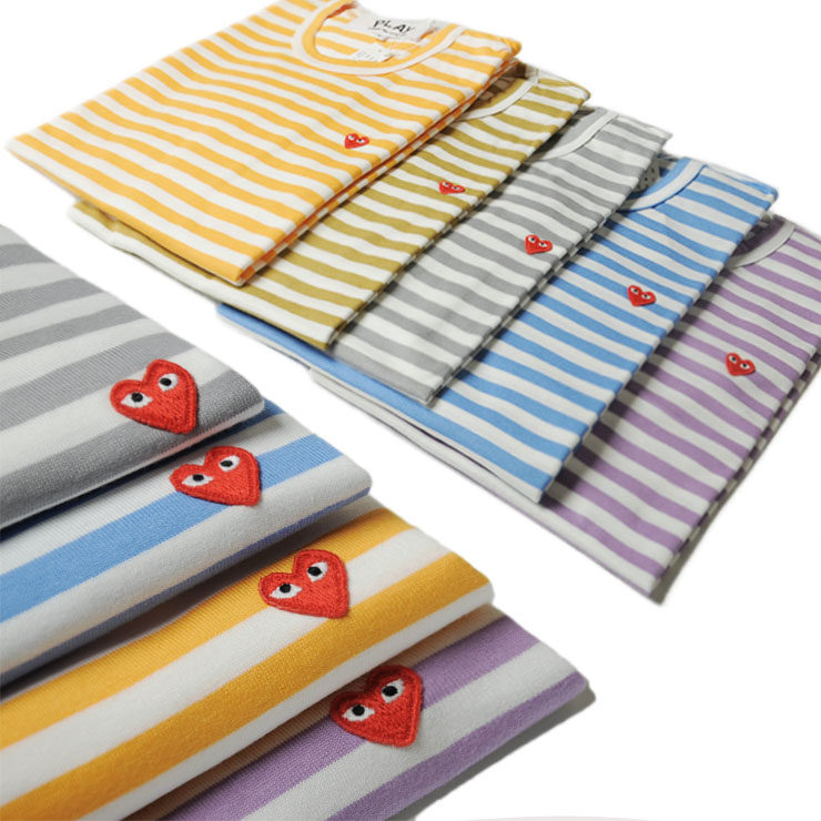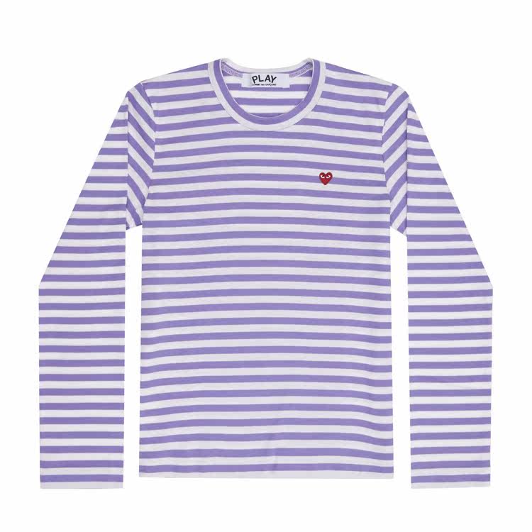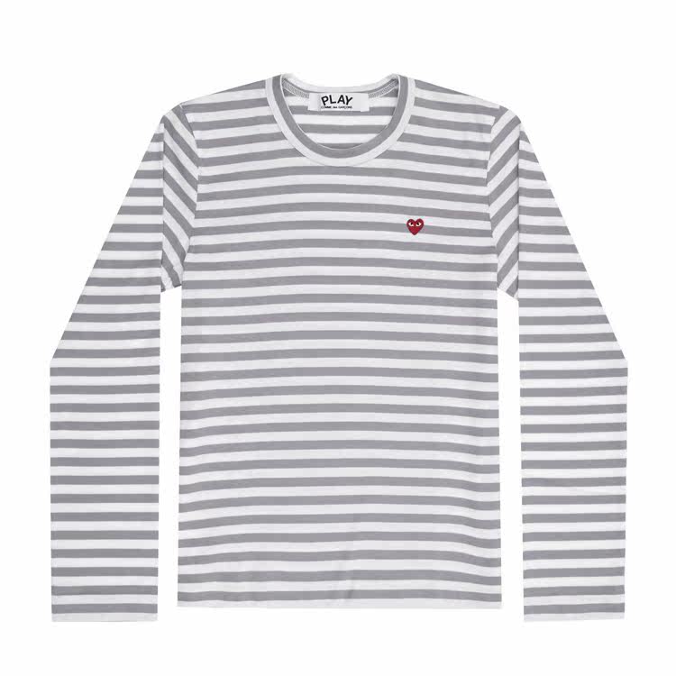 Повседневная футболка из чистого хлопка с длинными рукавами в полоску с красным сердцем и мини-сердцем Four Seasons Spot CDG Kawakubo Rei PLAY