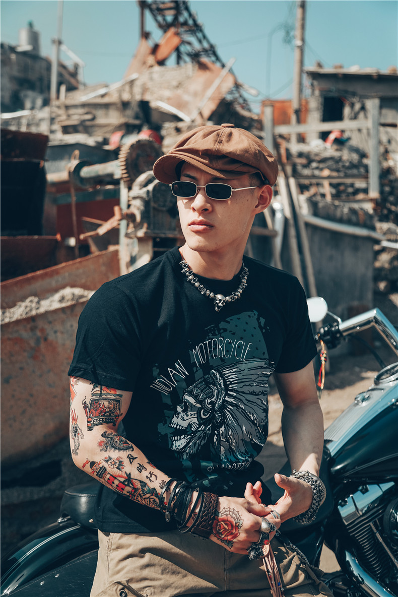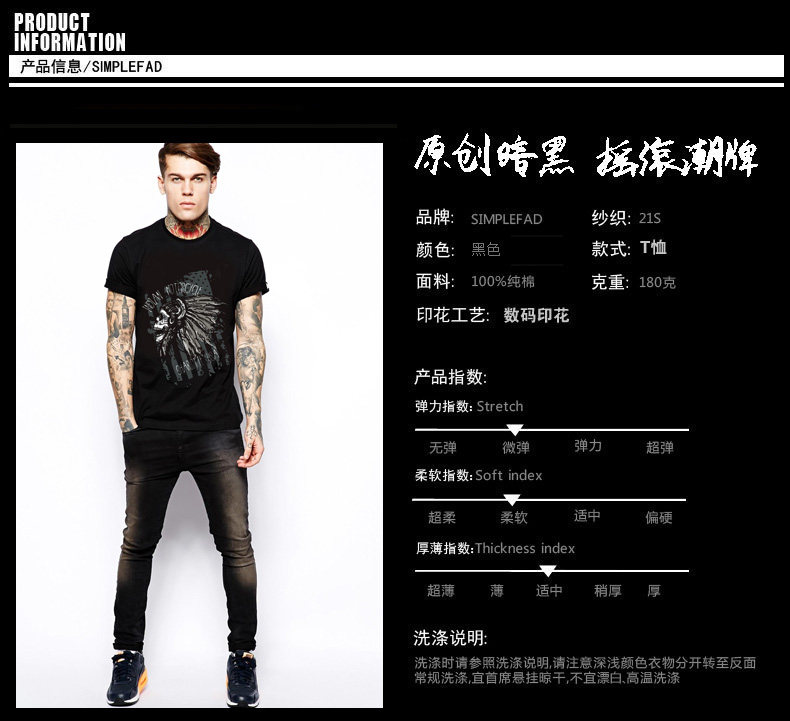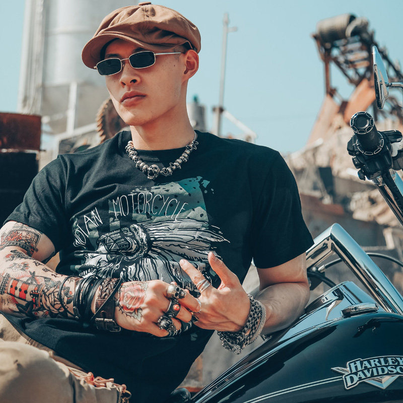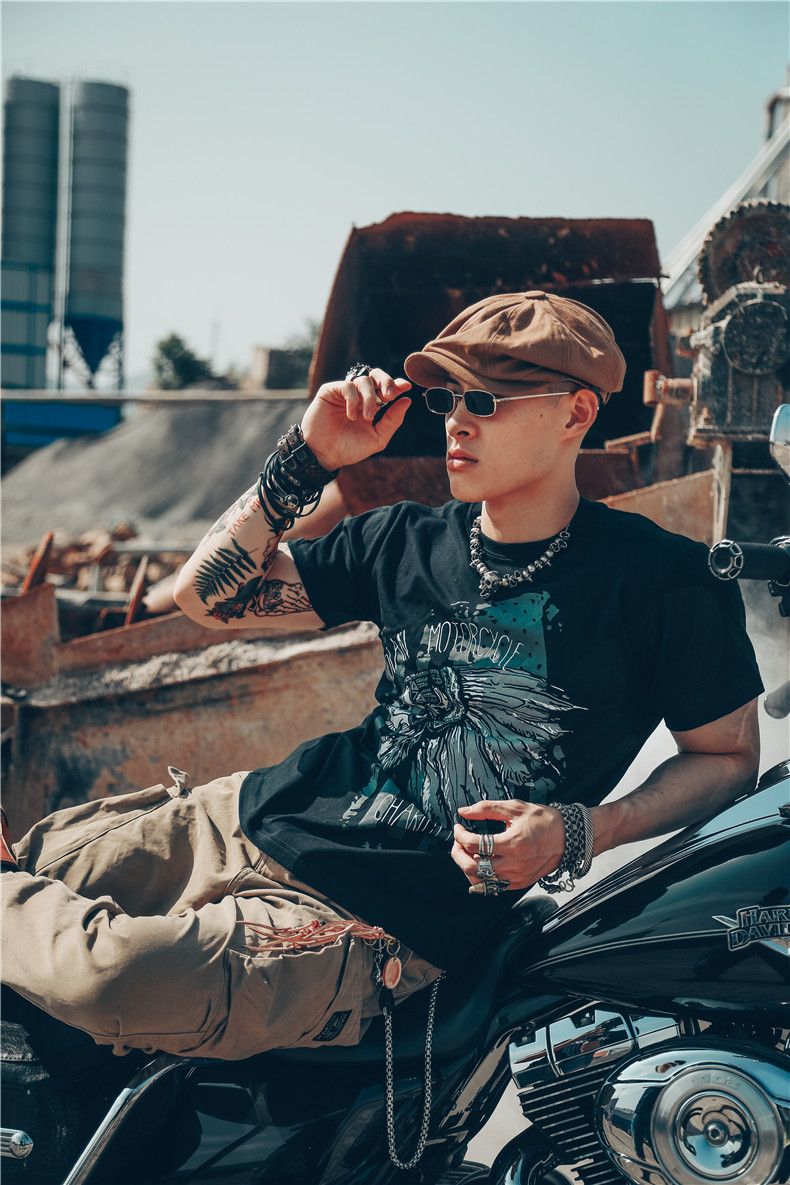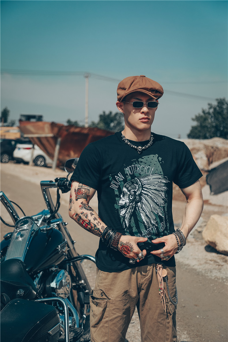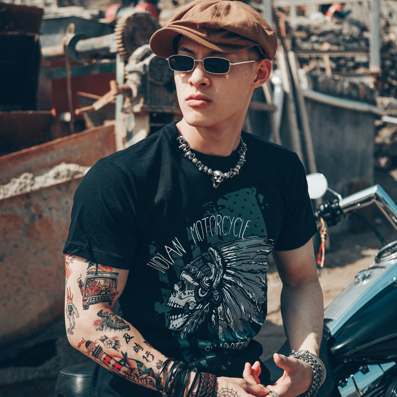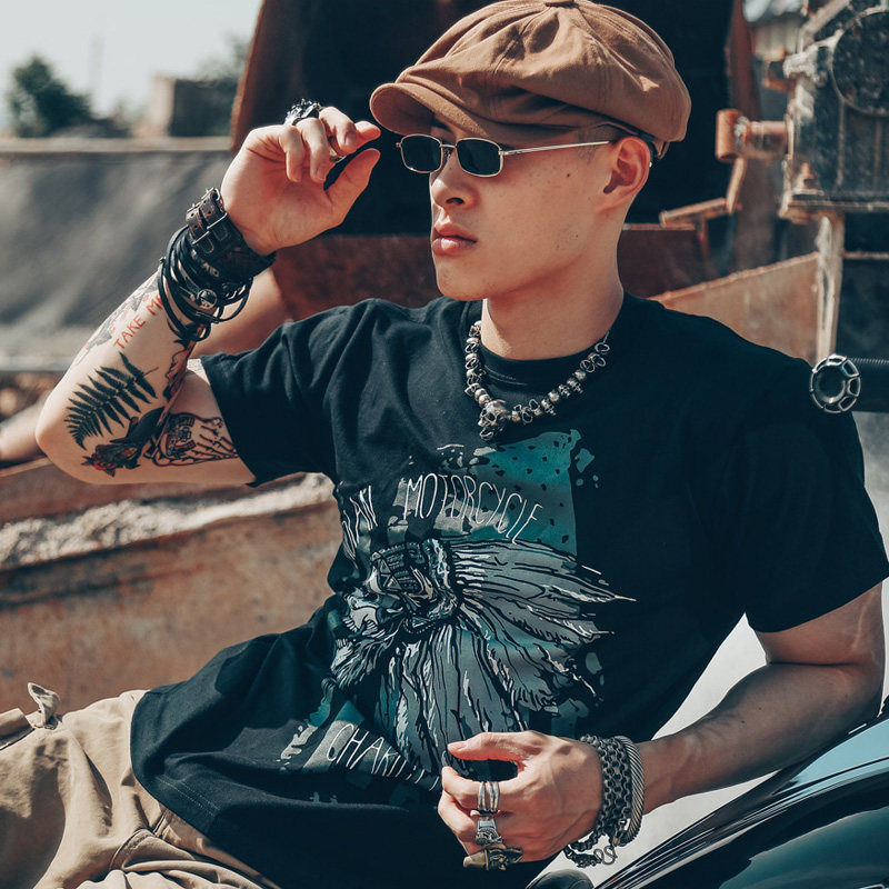 Хлопковая футболка, в американском стиле, европейский стиль, короткий рукав, в стиле панк