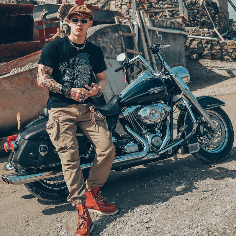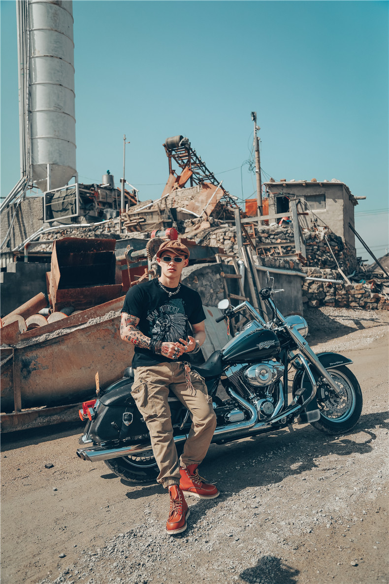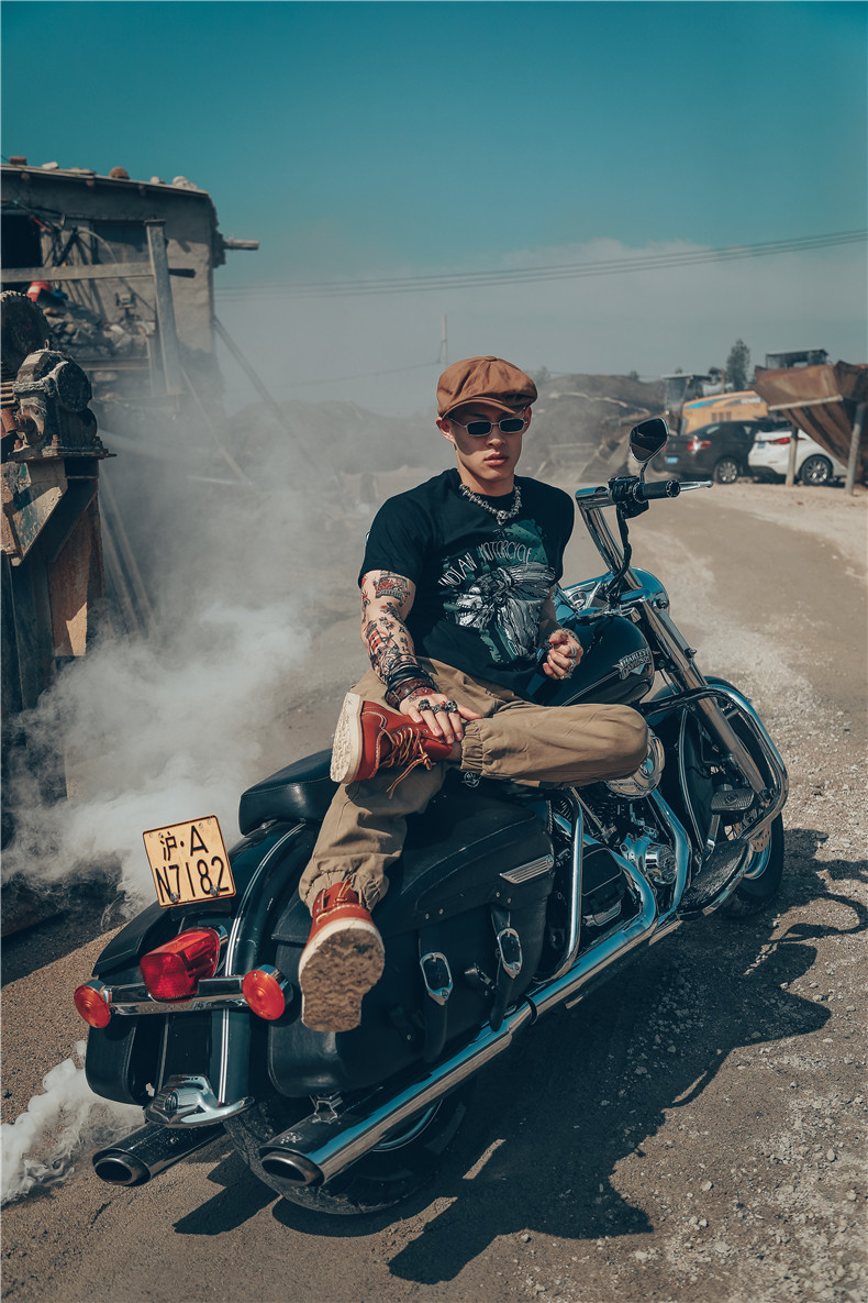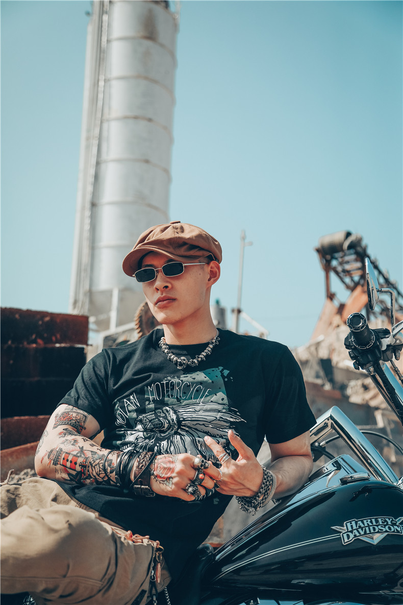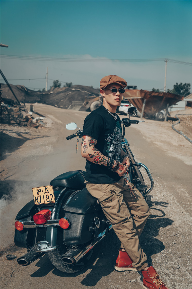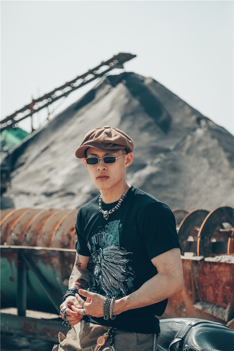 Хлопковая футболка, в американском стиле, европейский стиль, короткий рукав, в стиле панк