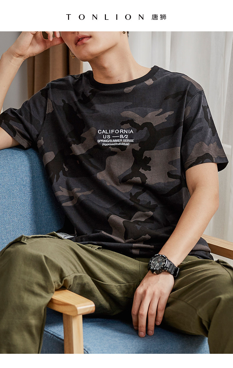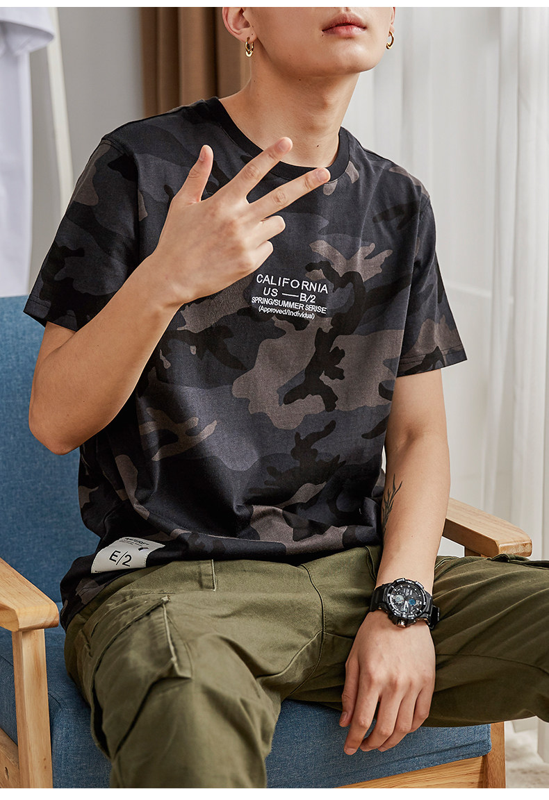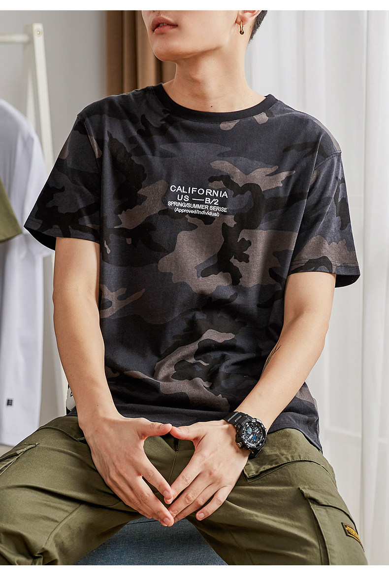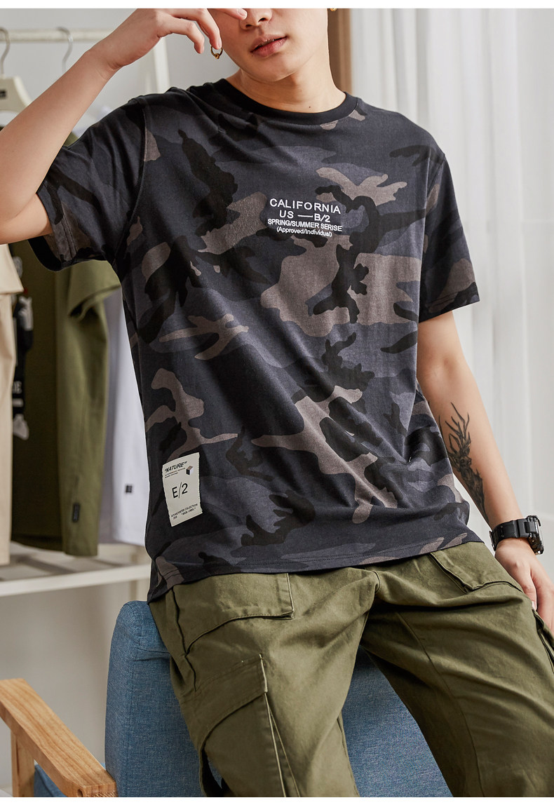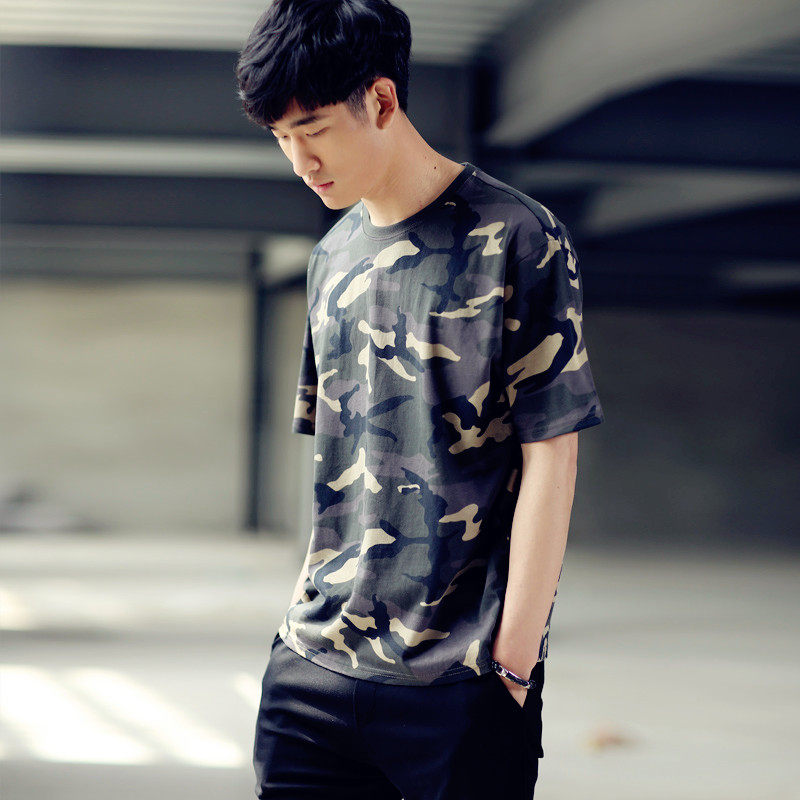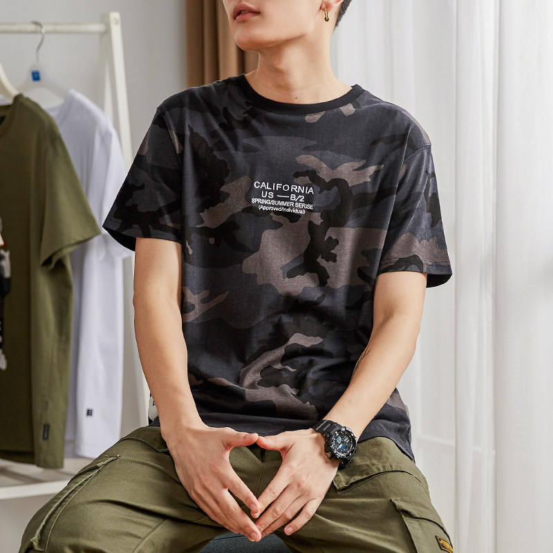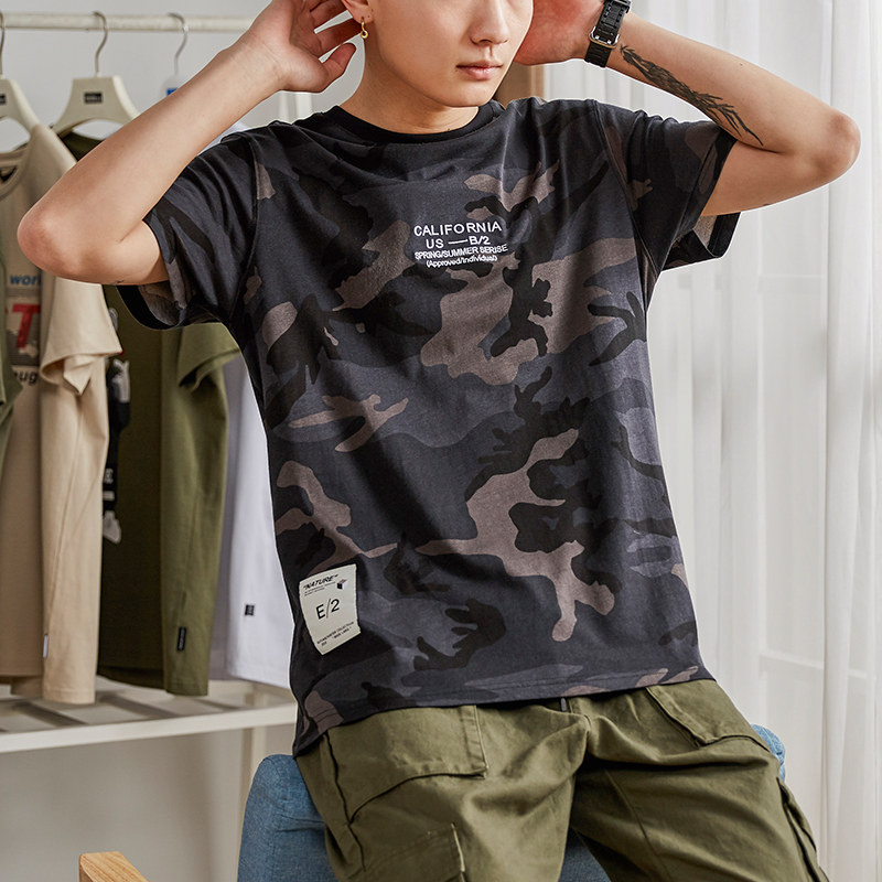 Tide, камуфляжная трендовая футболка с коротким рукавом для школьников и студентов, в корейском стиле, подходит для подростков