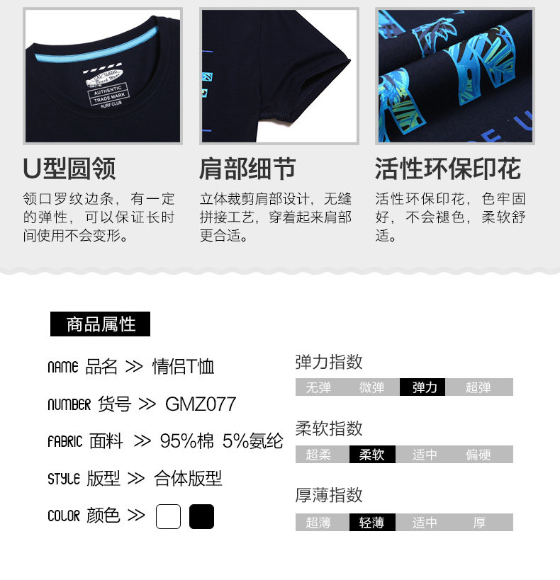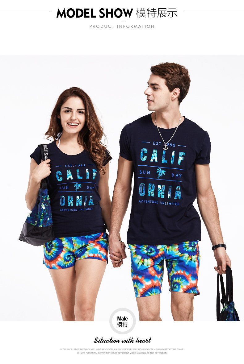 盖浪 Пляжная базовая приятная телу футболка с коротким рукавом для отдыха подходит для мужчин и женщин, для влюбленных, короткий рукав