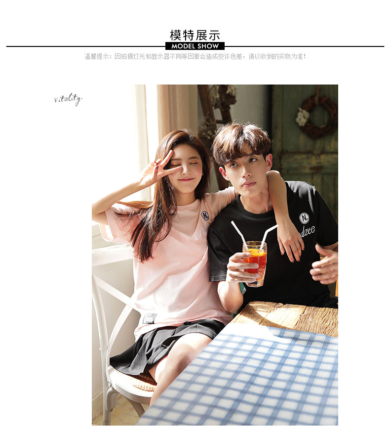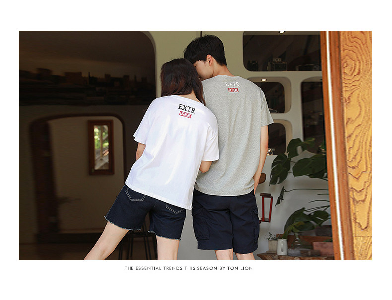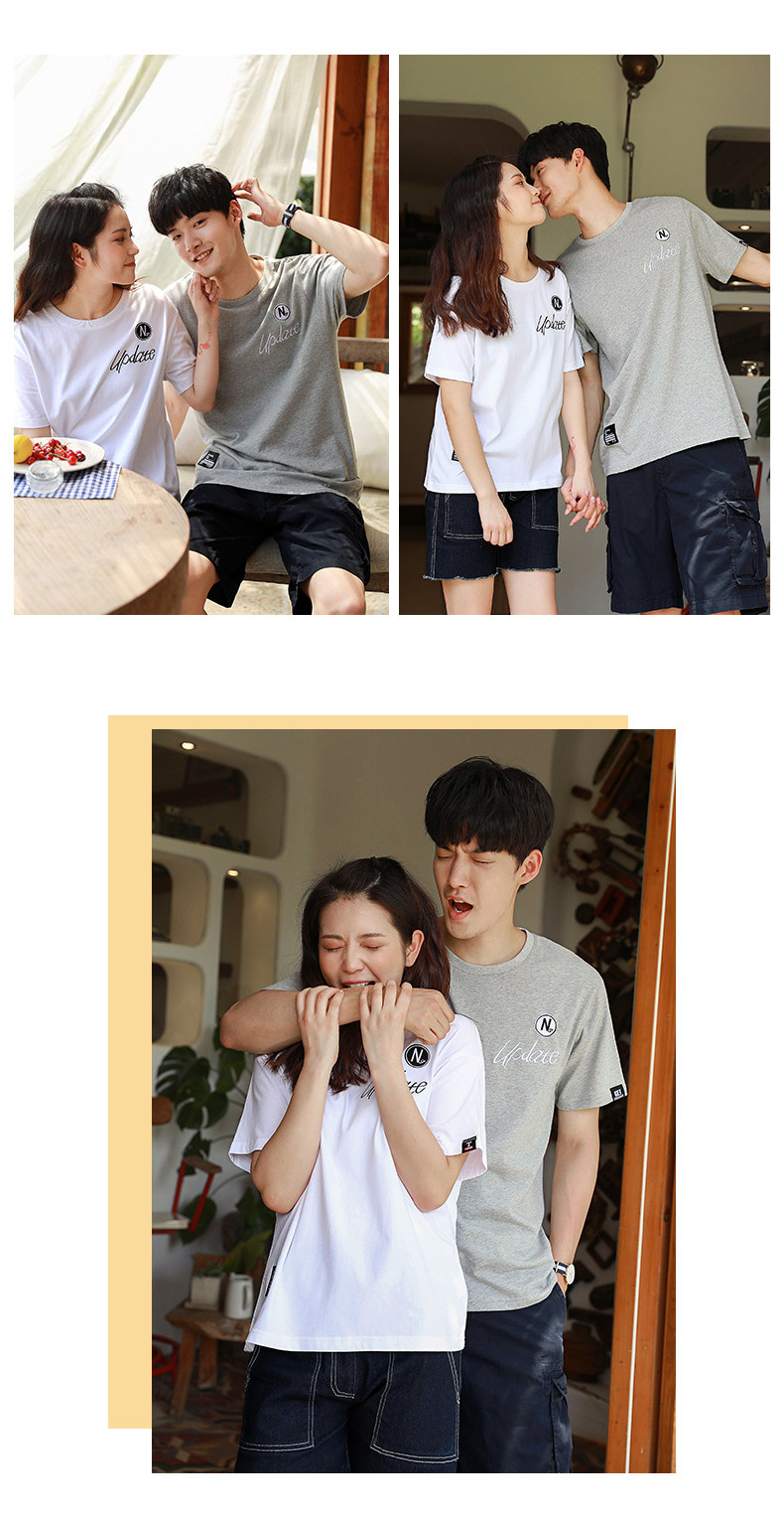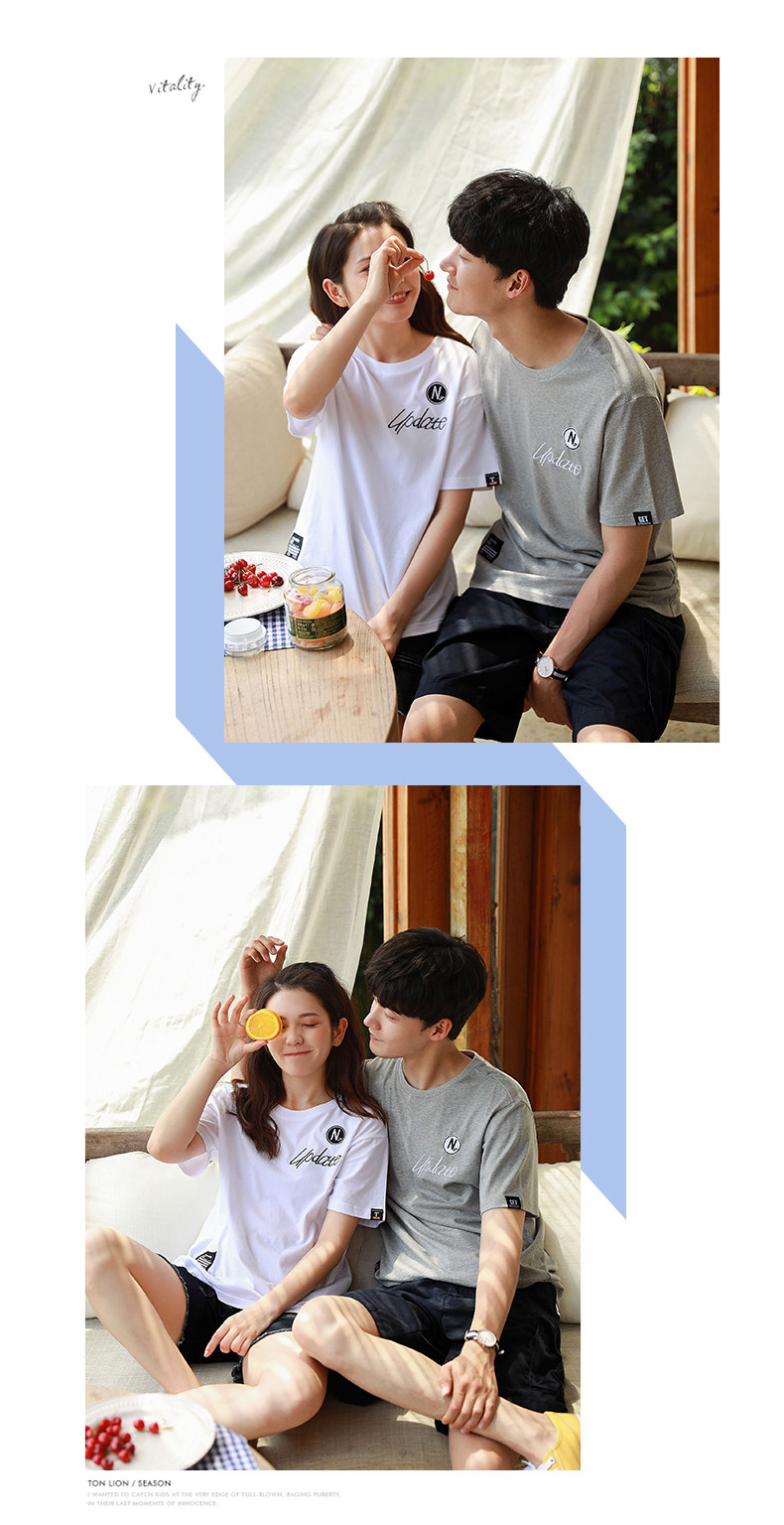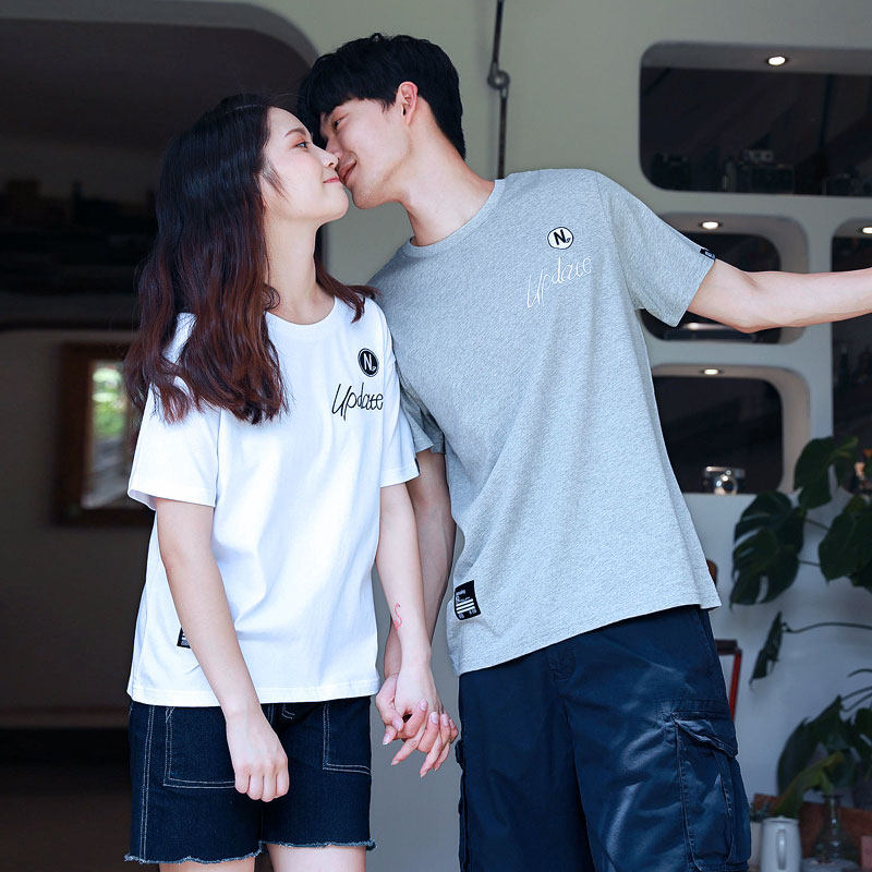 Парная одежда, летняя одежда, хлопковая футболка подходит для мужчин и женщин, для влюбленных, короткий рукав, в корейском стиле