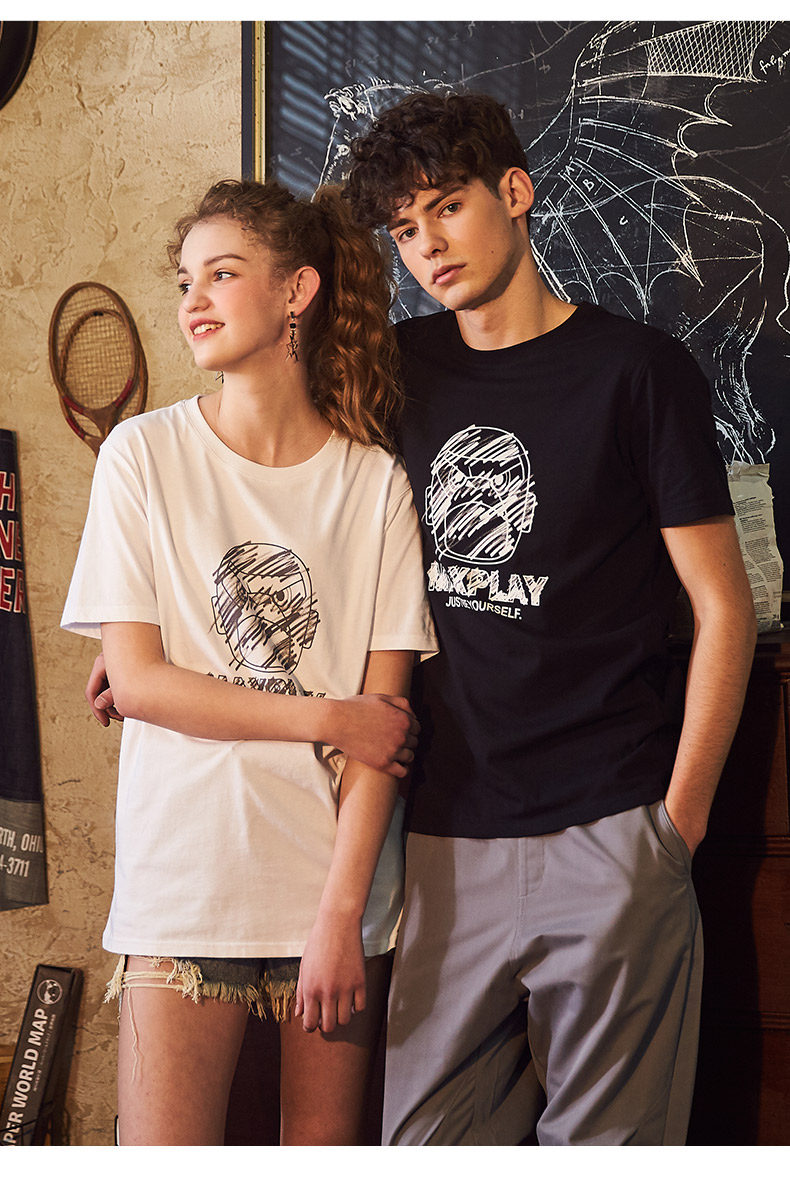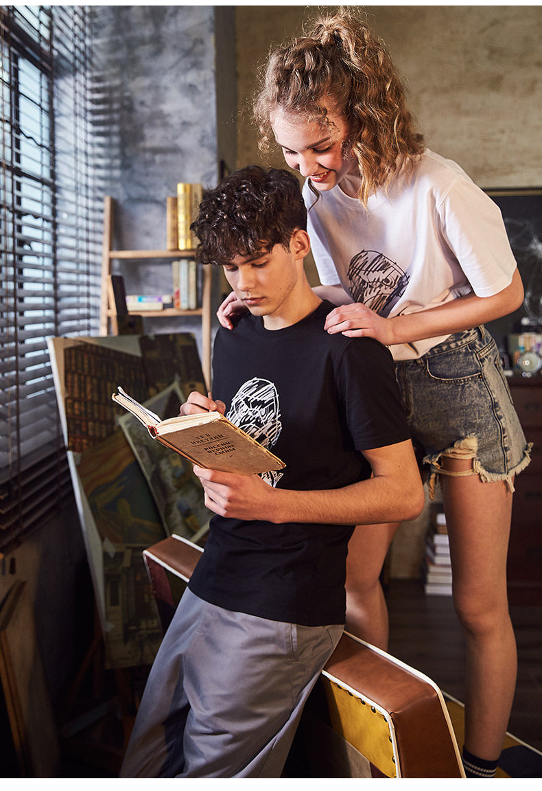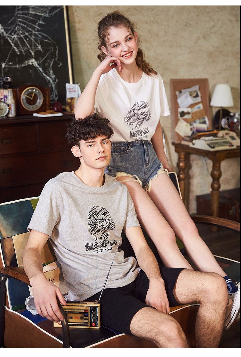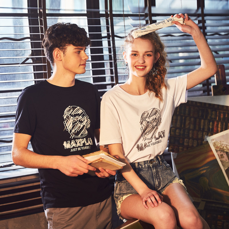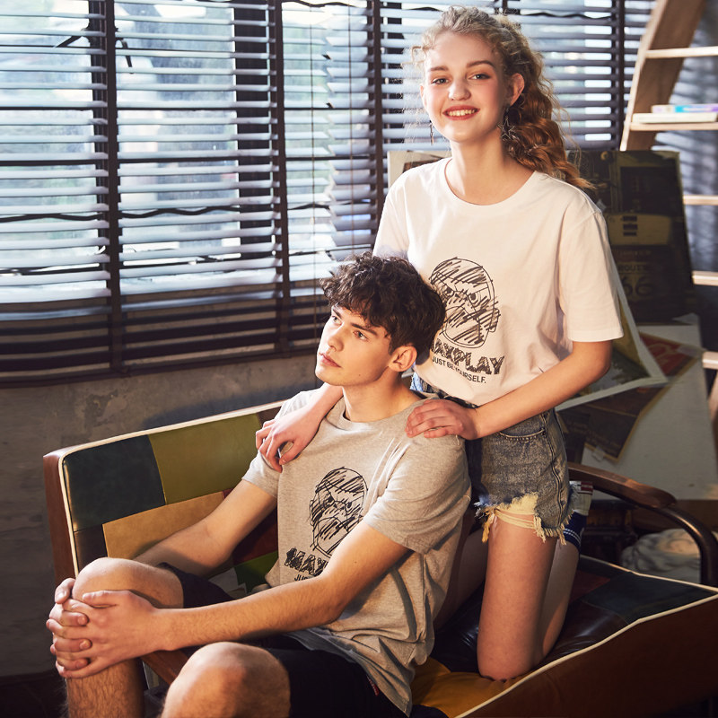 Парная одежда, летняя одежда, хлопковая футболка подходит для мужчин и женщин, для влюбленных, короткий рукав, в корейском стиле