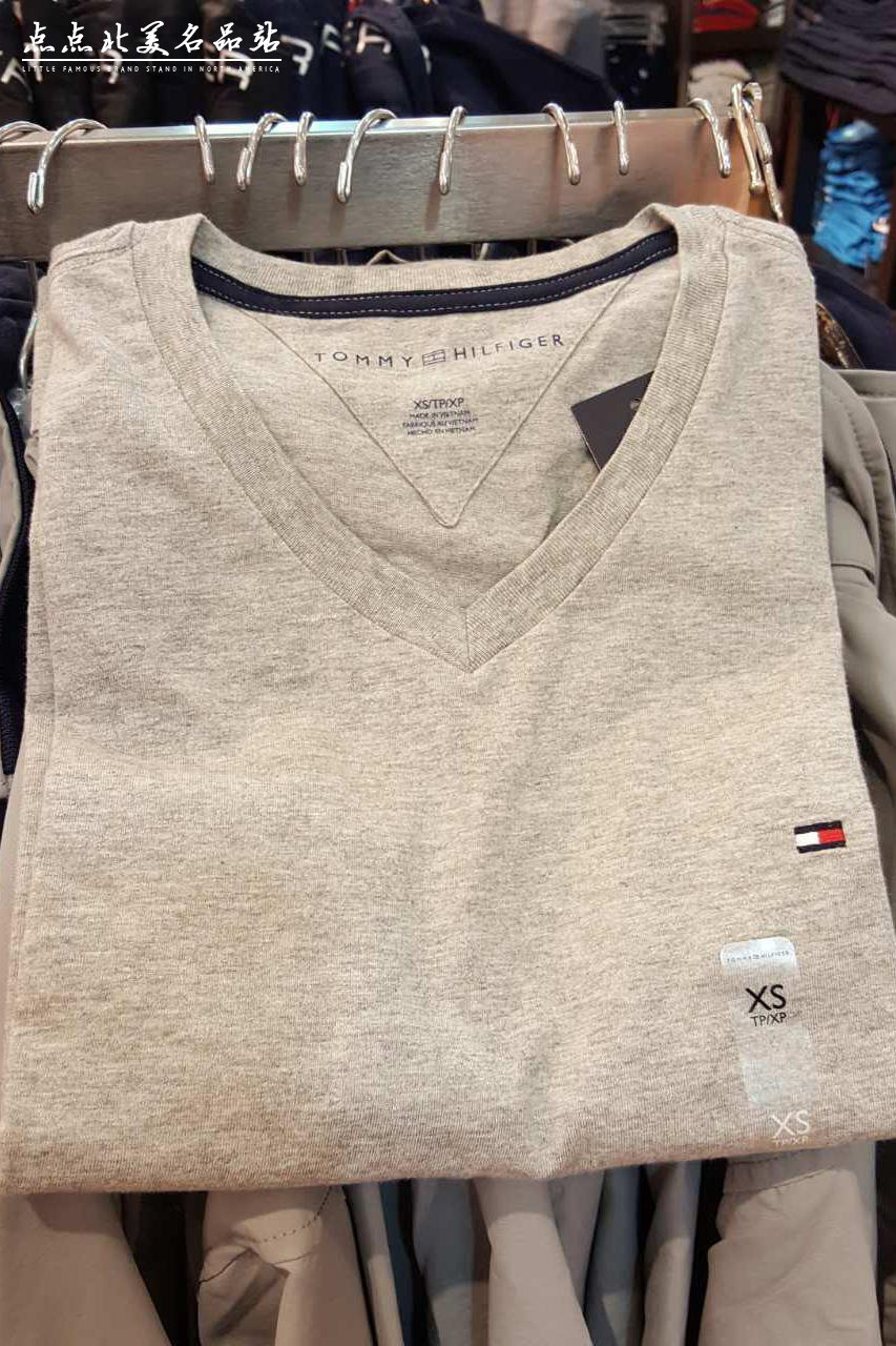 Tommy hilfiger, хлопковая футболка, (в наличии на складе), облегающий крой, V-образный вырез