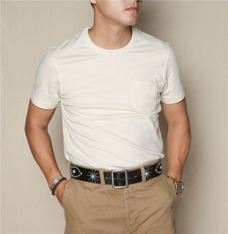 Футболка в кармане с короткими рукавами Классическая ретро-круглый карман с короткими рукавами