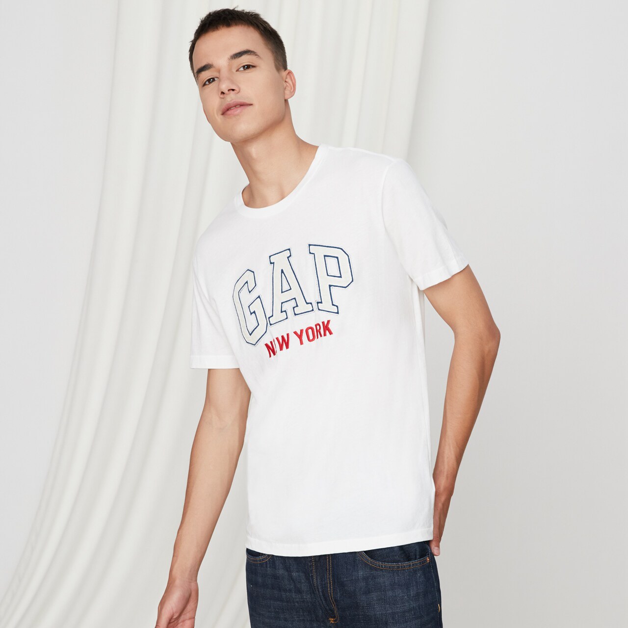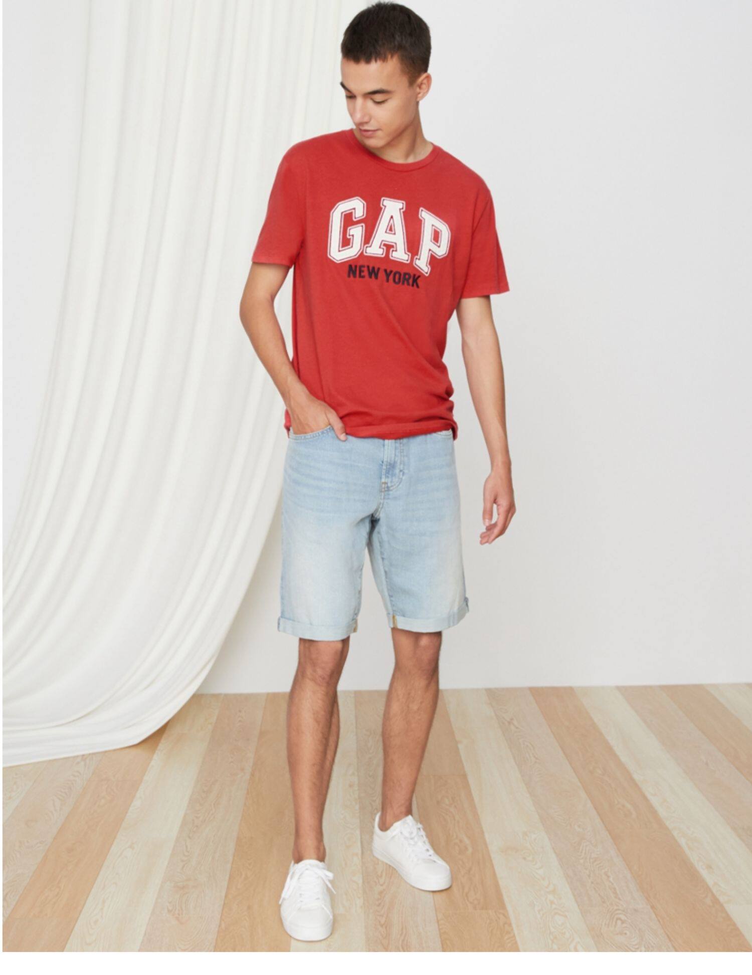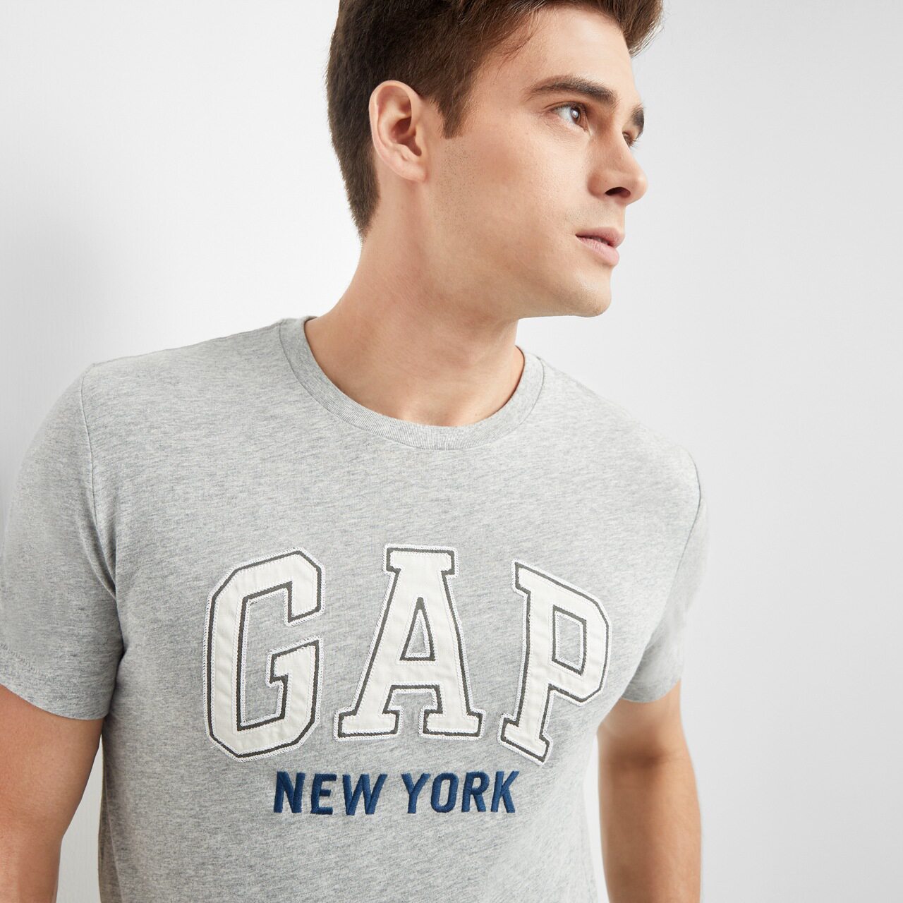 Gap Мужская базовая приятная телу футболка с коротким рукавом с круглым воротником, с печатью вашего логотипа