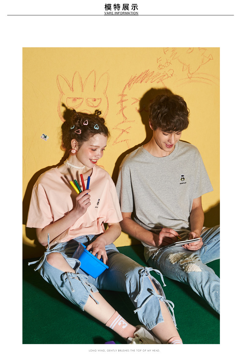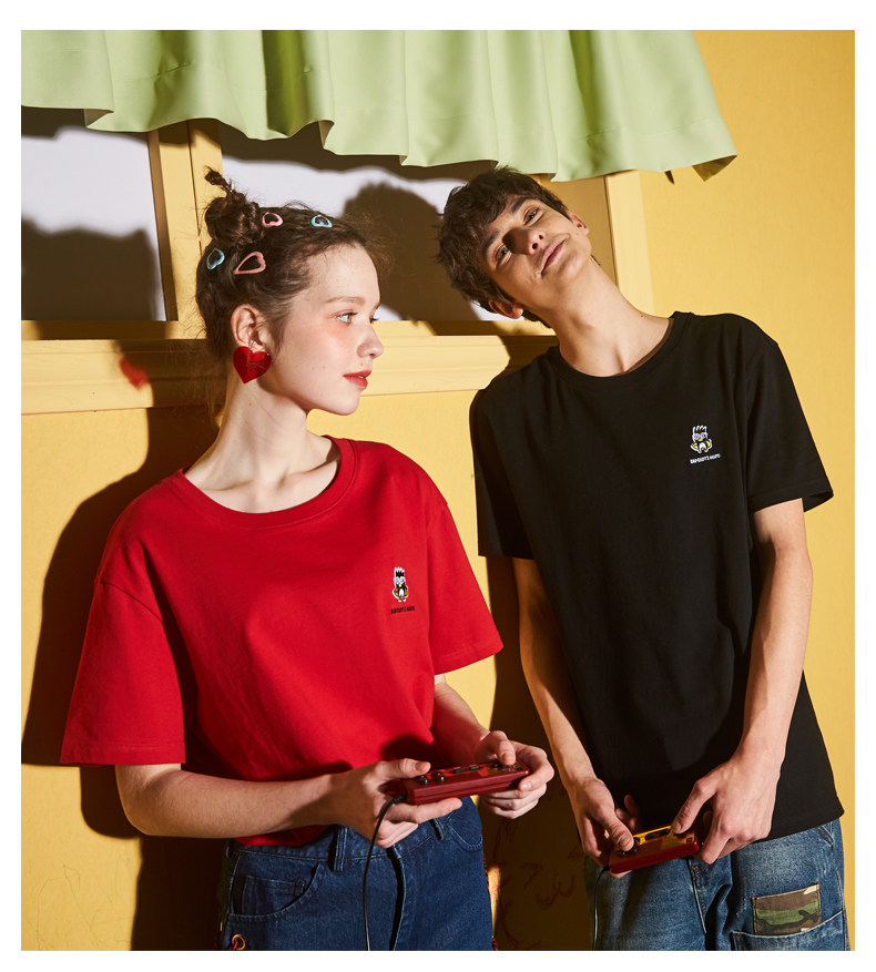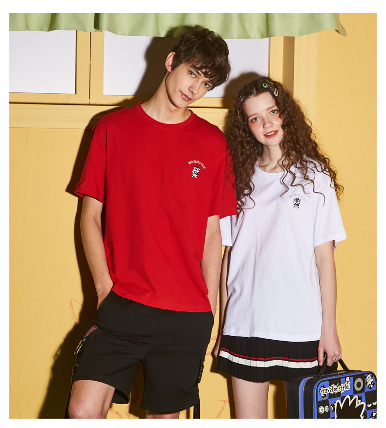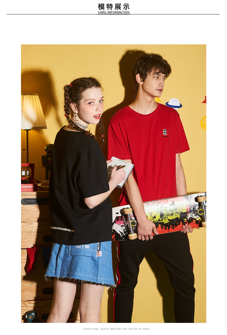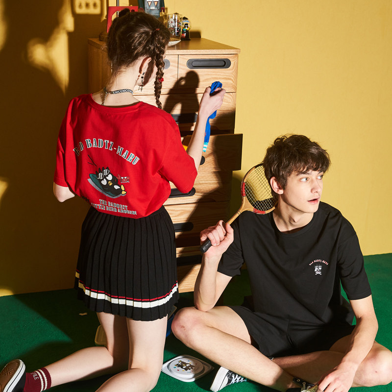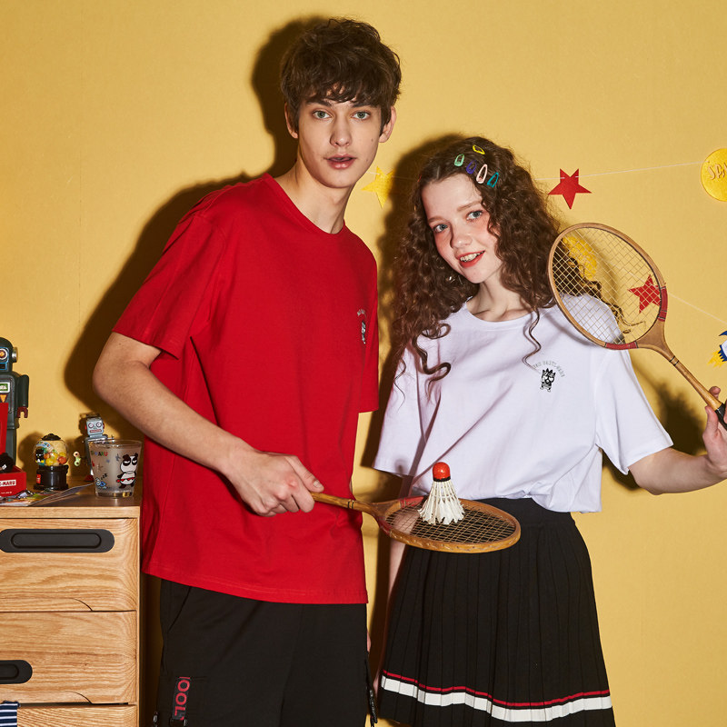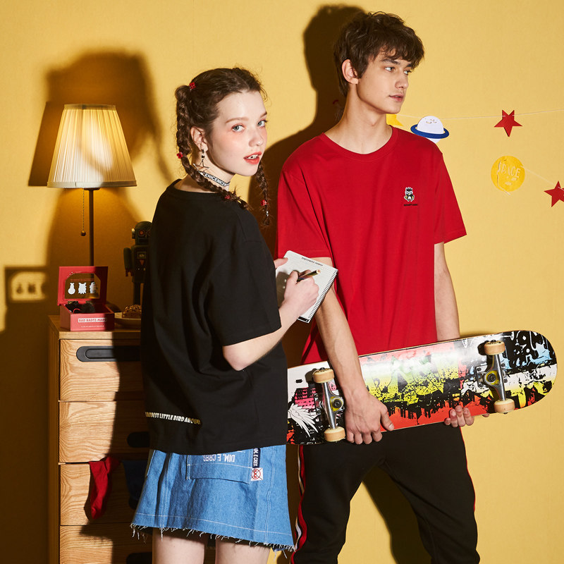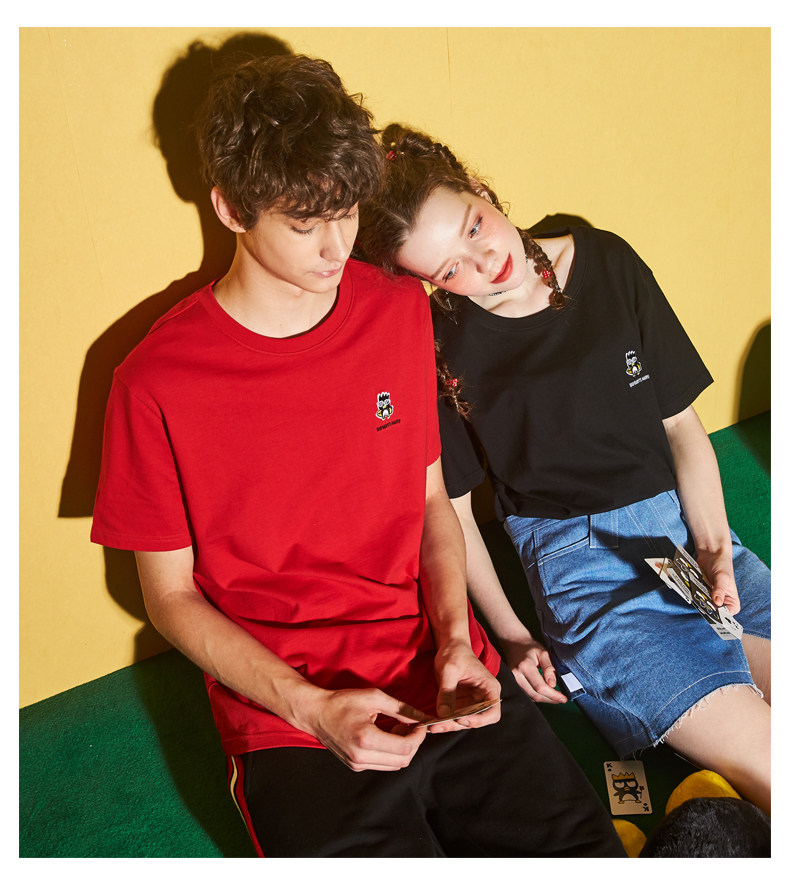[100 Юань 3] Тан -Льон Пара одежда Новая 钕 Рукав для рукава T -Fork Mens Запеченные свободные студенты студентов