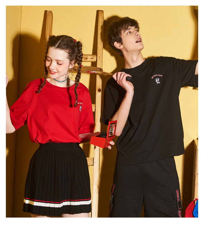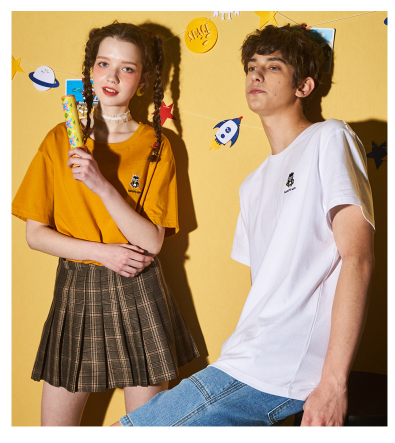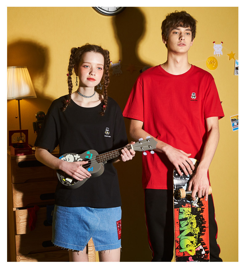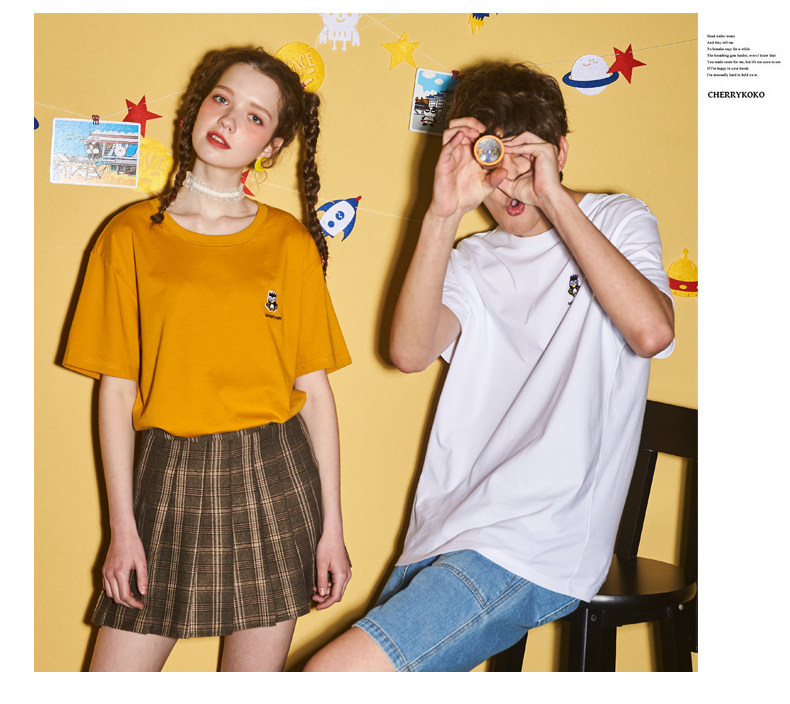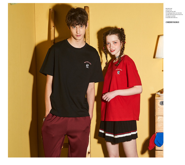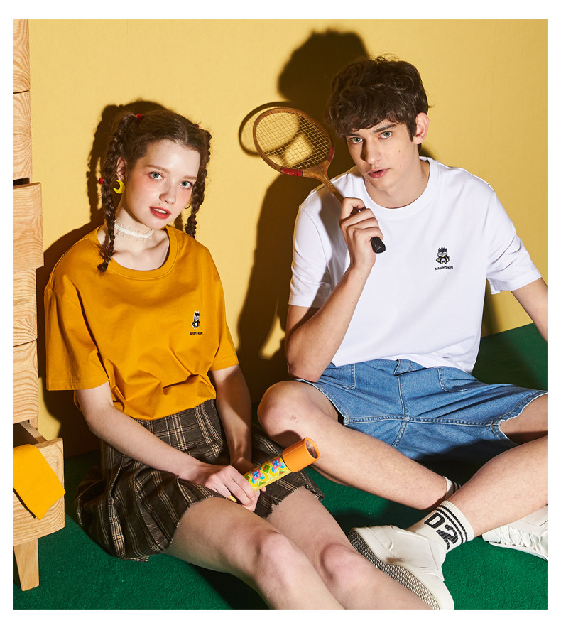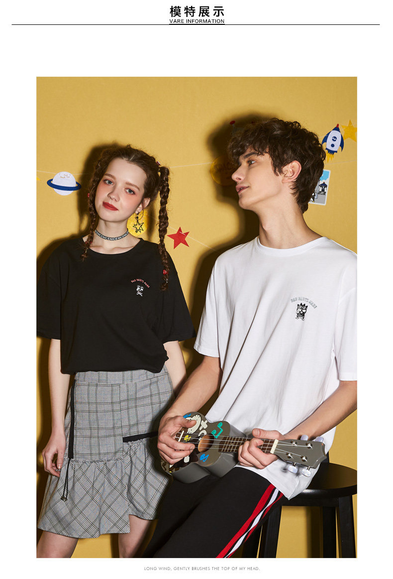 [100 Юань 3] Тан -Льон Пара одежда Новая 钕 Рукав для рукава T -Fork Mens Запеченные свободные студенты студентов