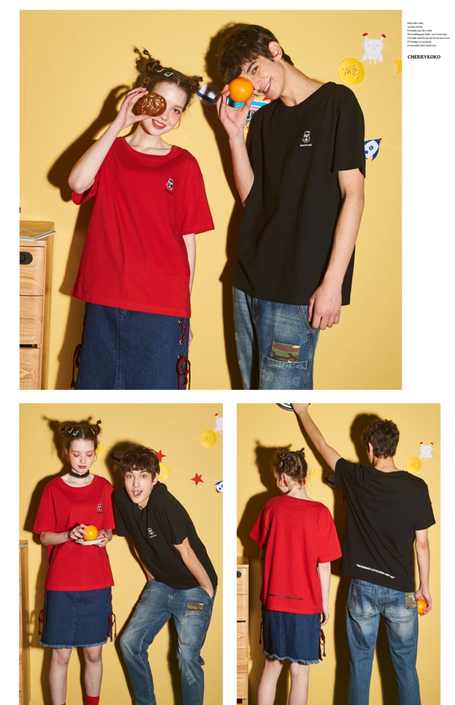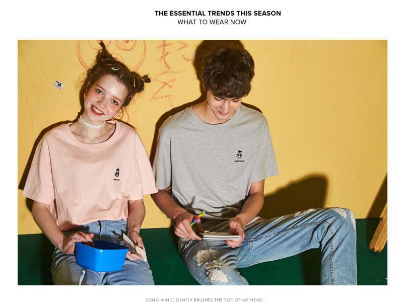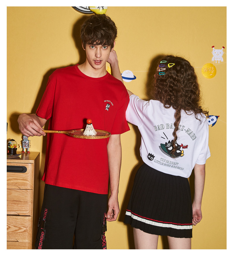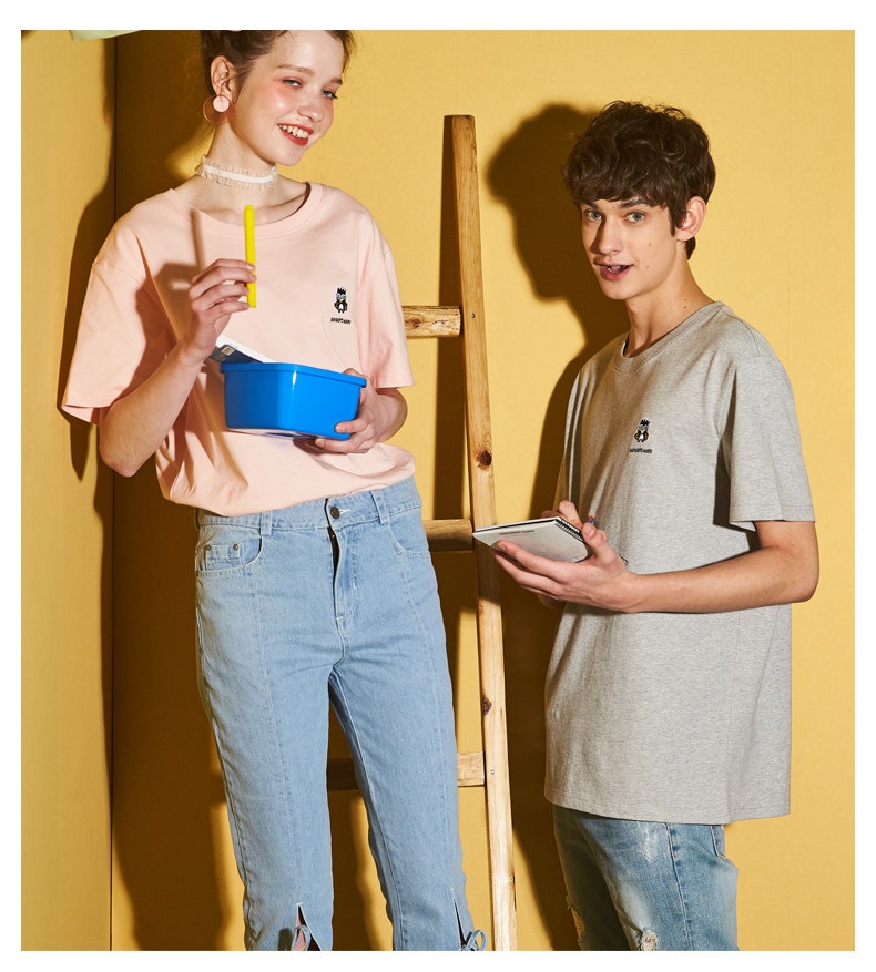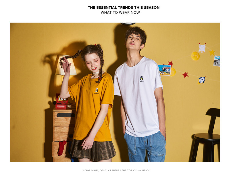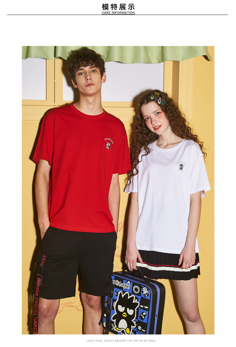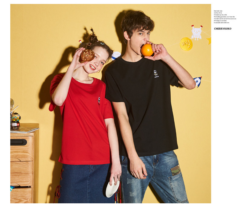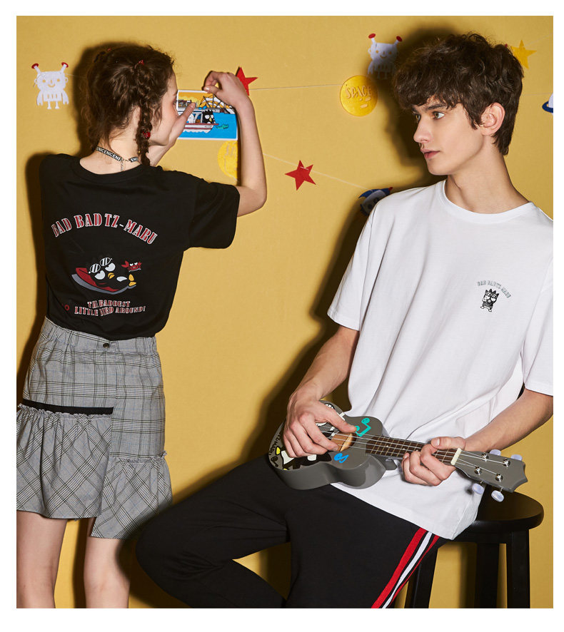 [100 Юань 3] Тан -Льон Пара одежда Новая 钕 Рукав для рукава T -Fork Mens Запеченные свободные студенты студентов