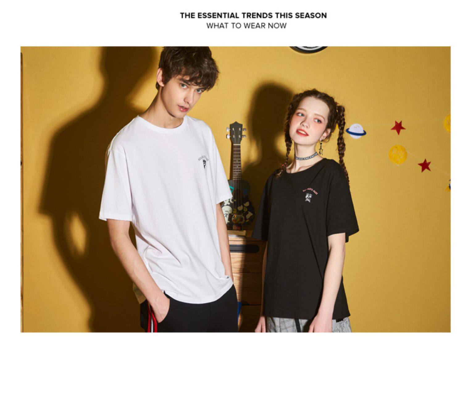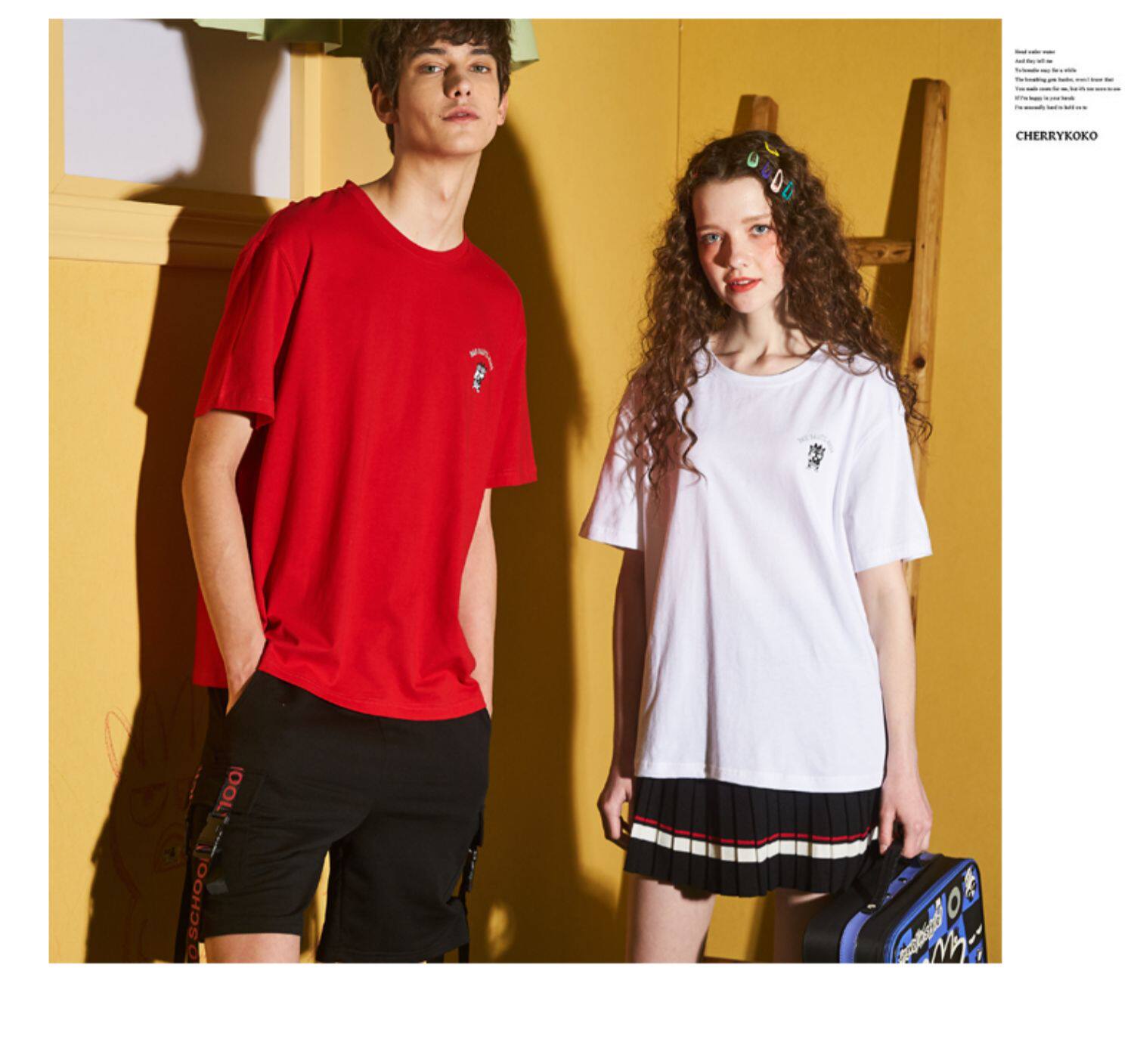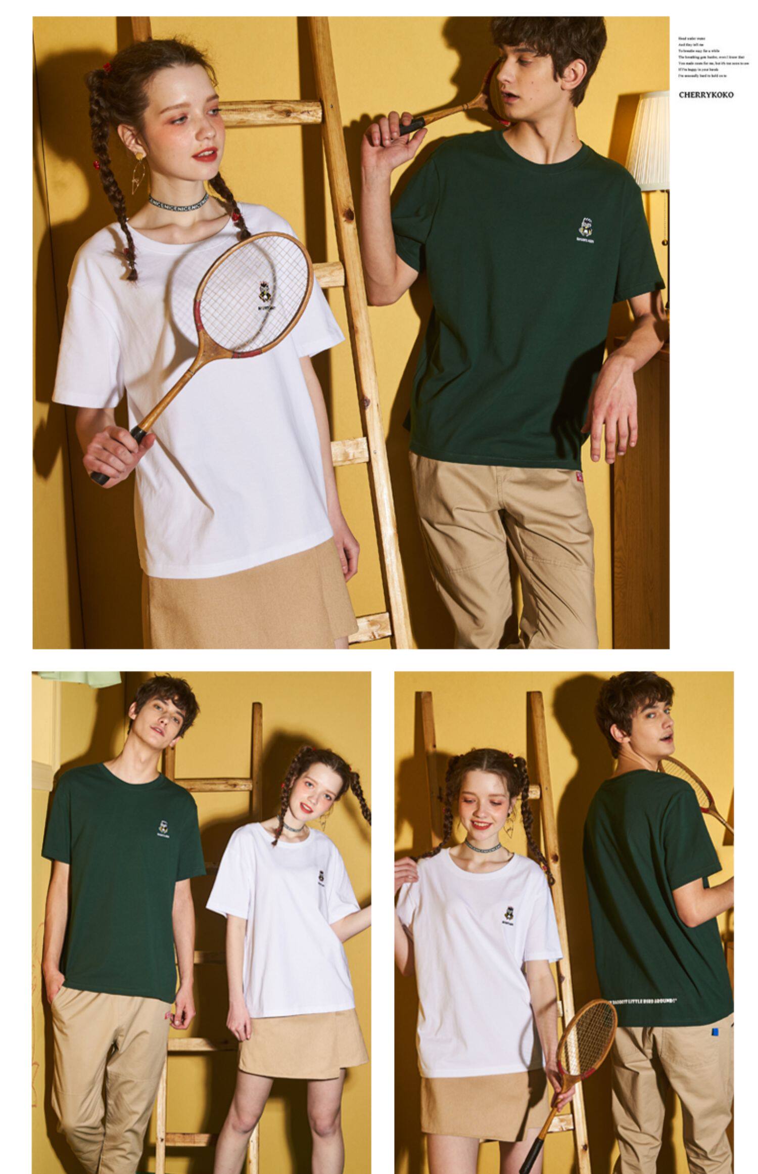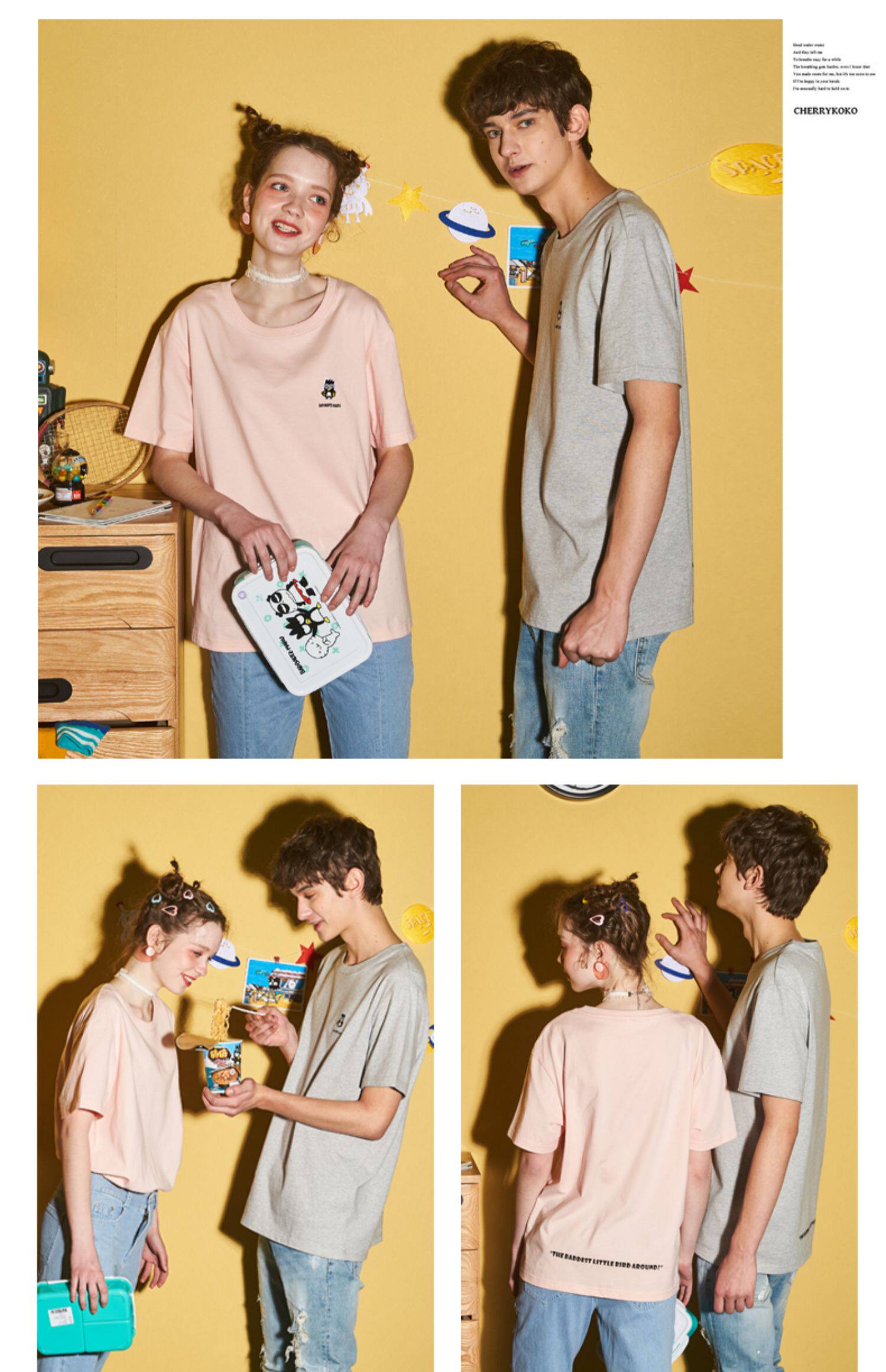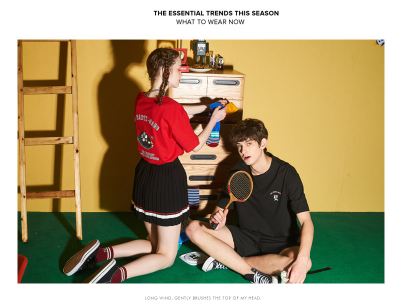 [100 Юань 3] Тан -Льон Пара одежда Новая 钕 Рукав для рукава T -Fork Mens Запеченные свободные студенты студентов
