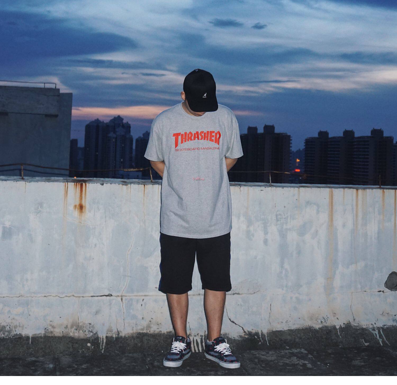 Spot Thrash Skate Mag Tee Flame Mei Chao Costra Street Basic Skateboard Short -Sleeed T -For