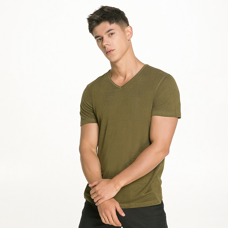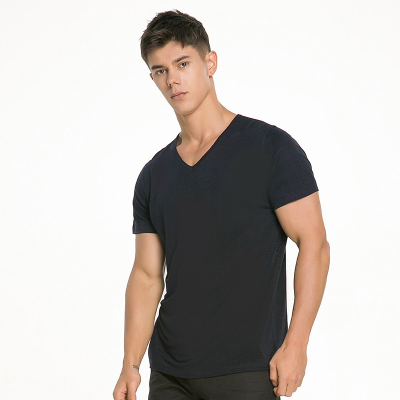 Дышащая комфортная трендовая футболка с коротким рукавом, V-образный вырез, короткий рукав
