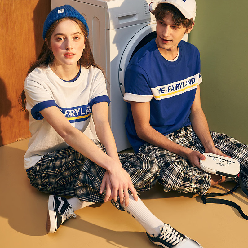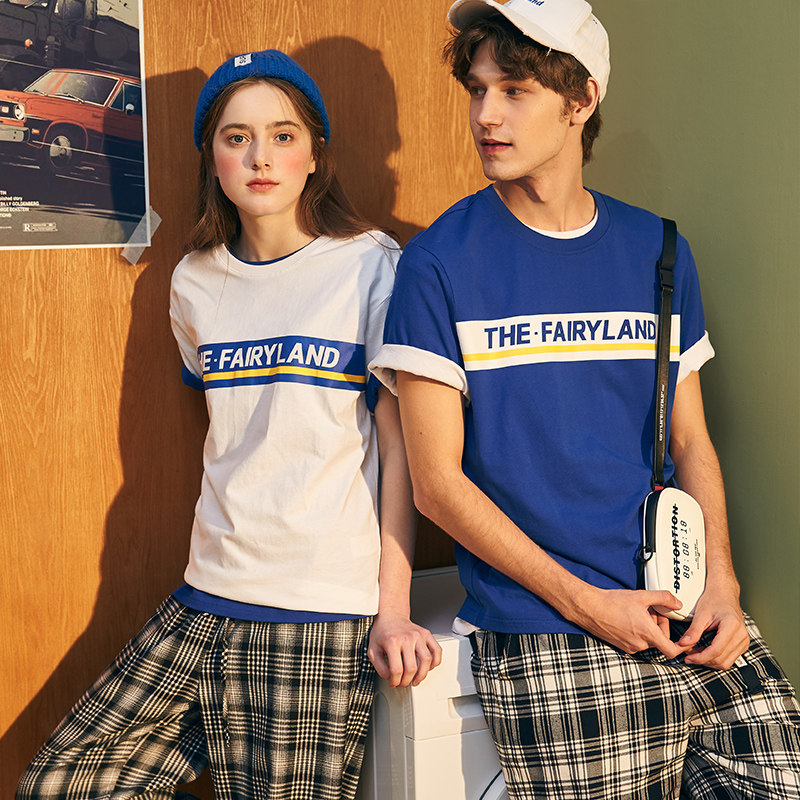 Летняя белая парная одежда с круглым воротником, футболка с коротким рукавом, для влюбленных, в корейском стиле