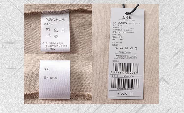 Varsden/华尔思丹 Универсальная модная трендовая футболка с круглым воротником