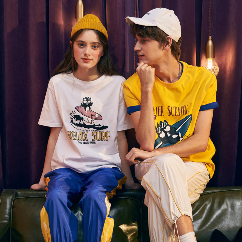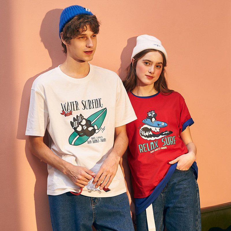 Летняя одежда, трендовая парная одежда для школьников и студентов, футболка с коротким рукавом, для влюбленных, в корейском стиле, принт