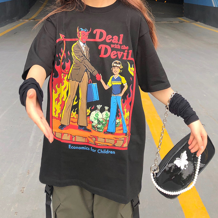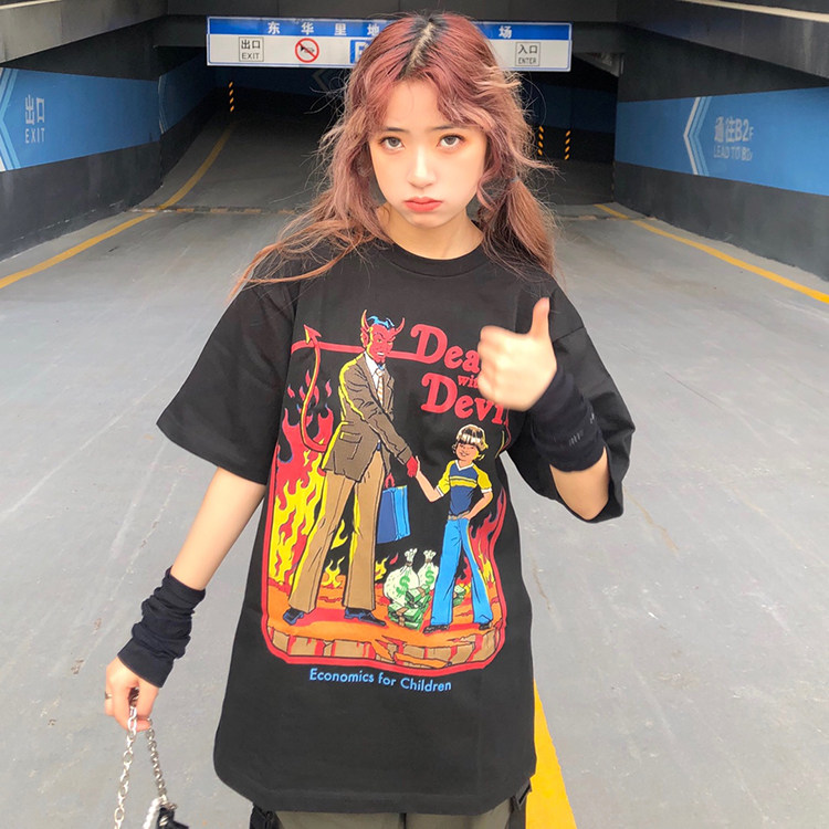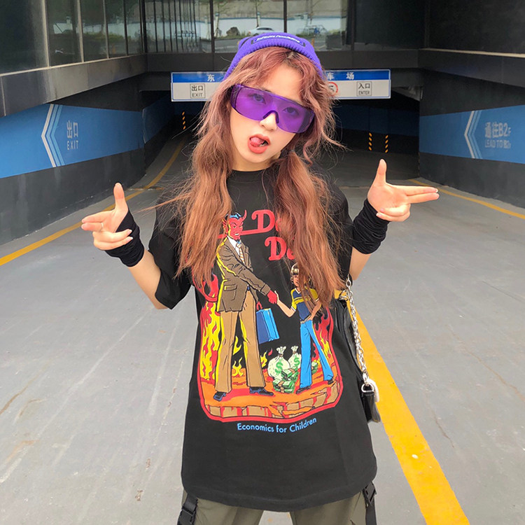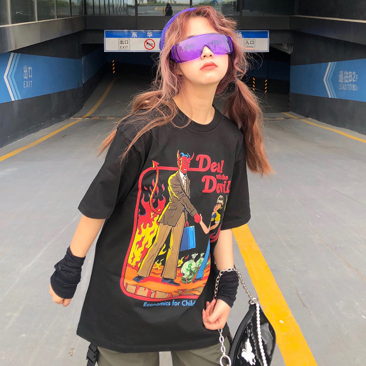 Комиксы, ретро футболка с коротким рукавом для влюбленных, в американском стиле, короткий рукав, оверсайз