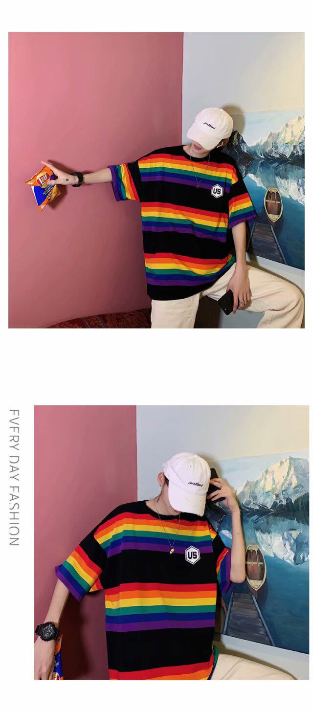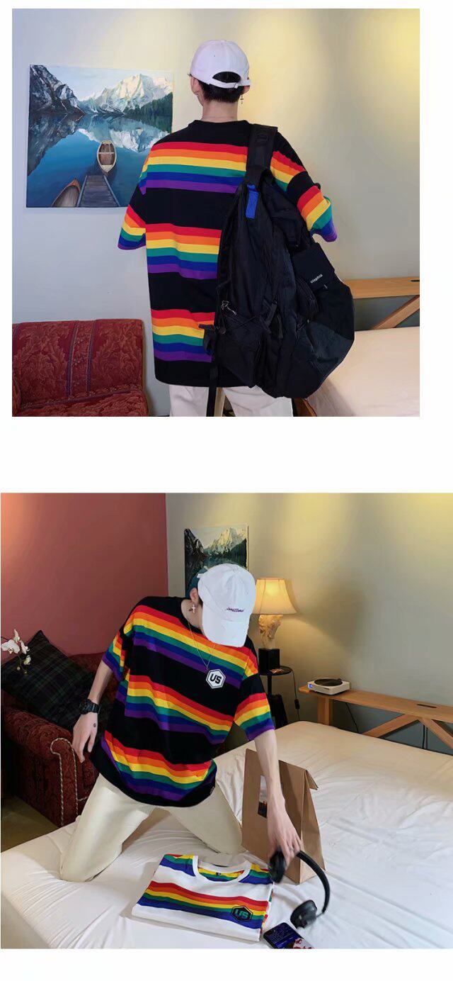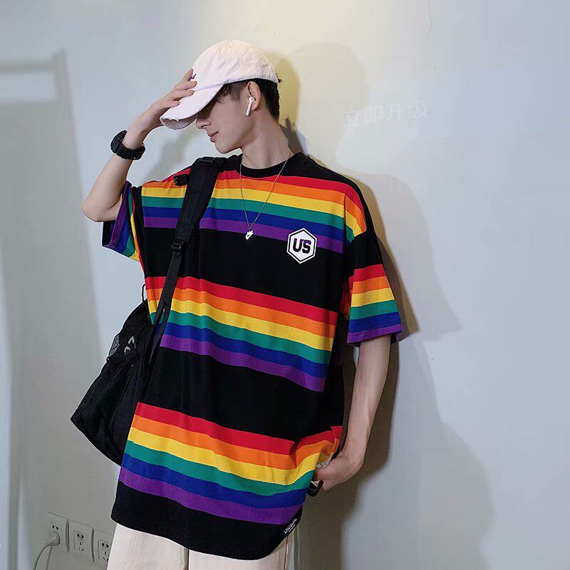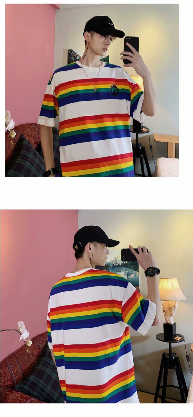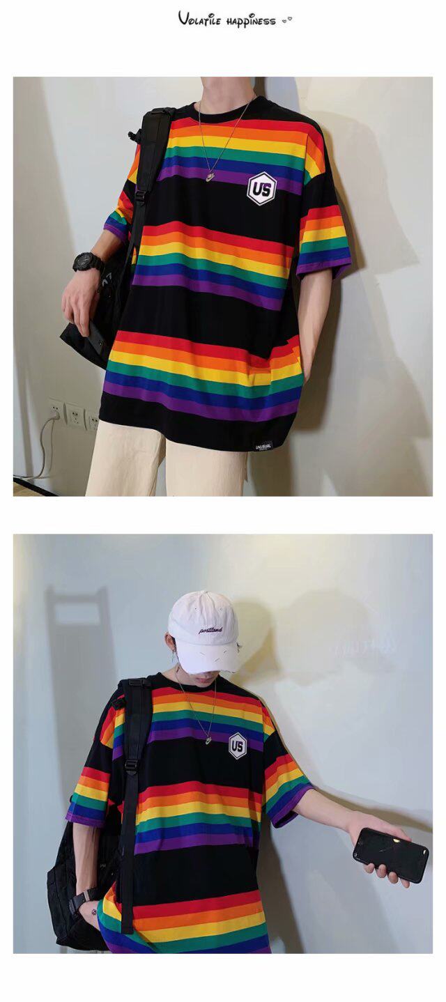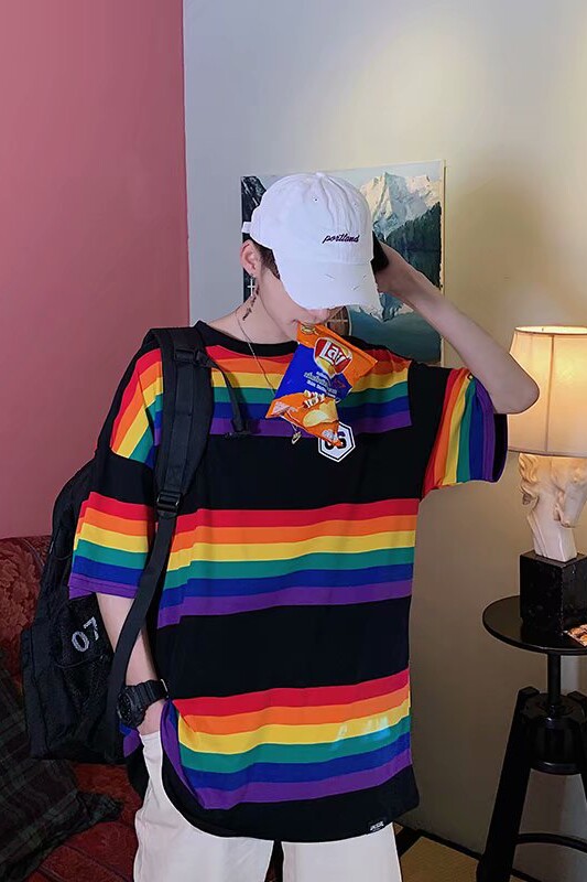 Радужная трендовая футболка с коротким рукавом, короткий рукав, оверсайз