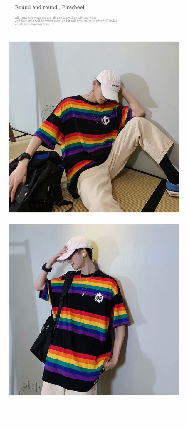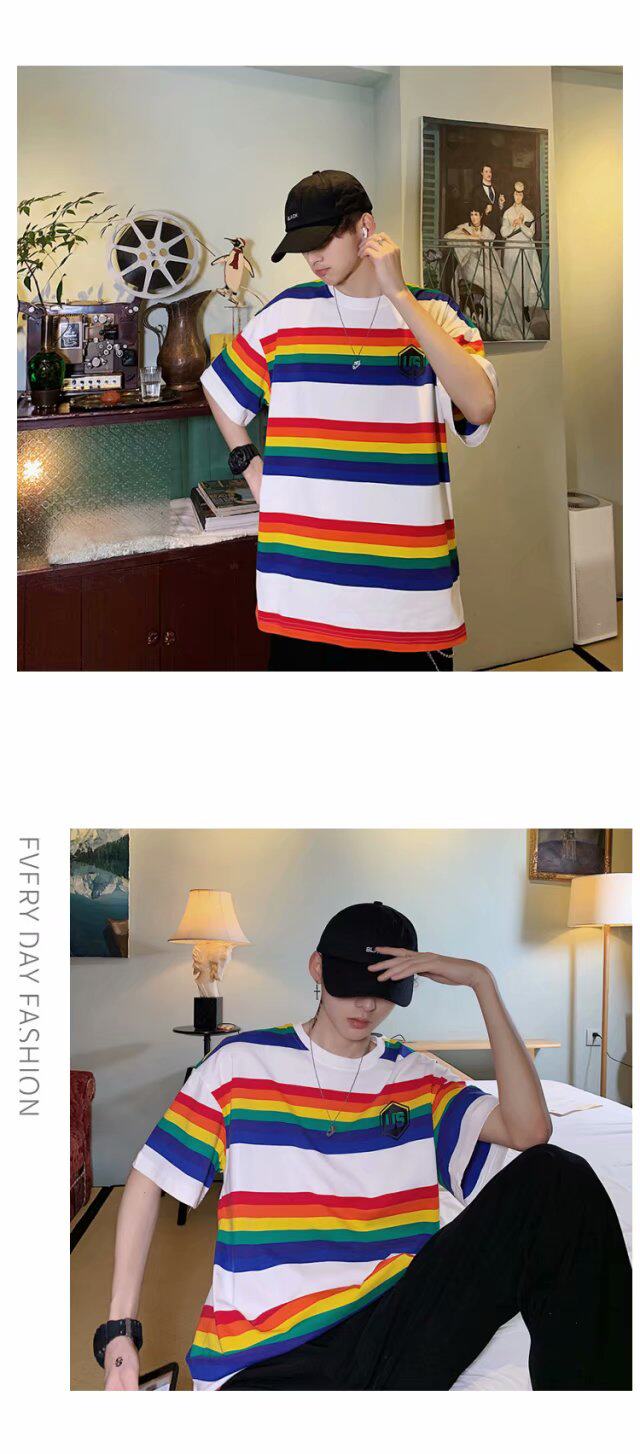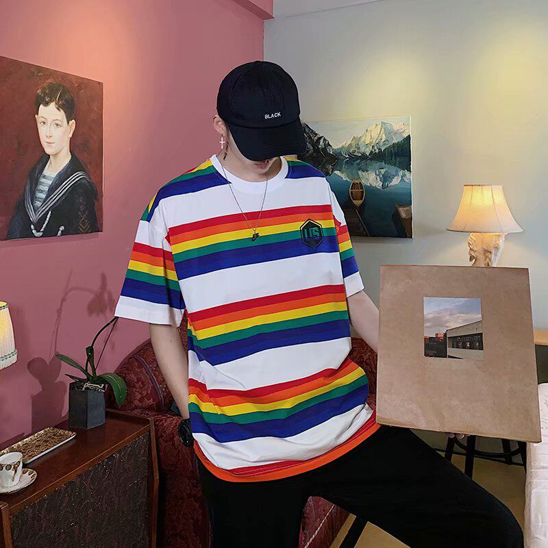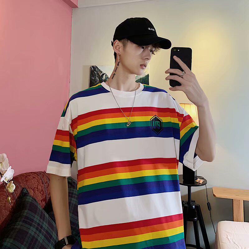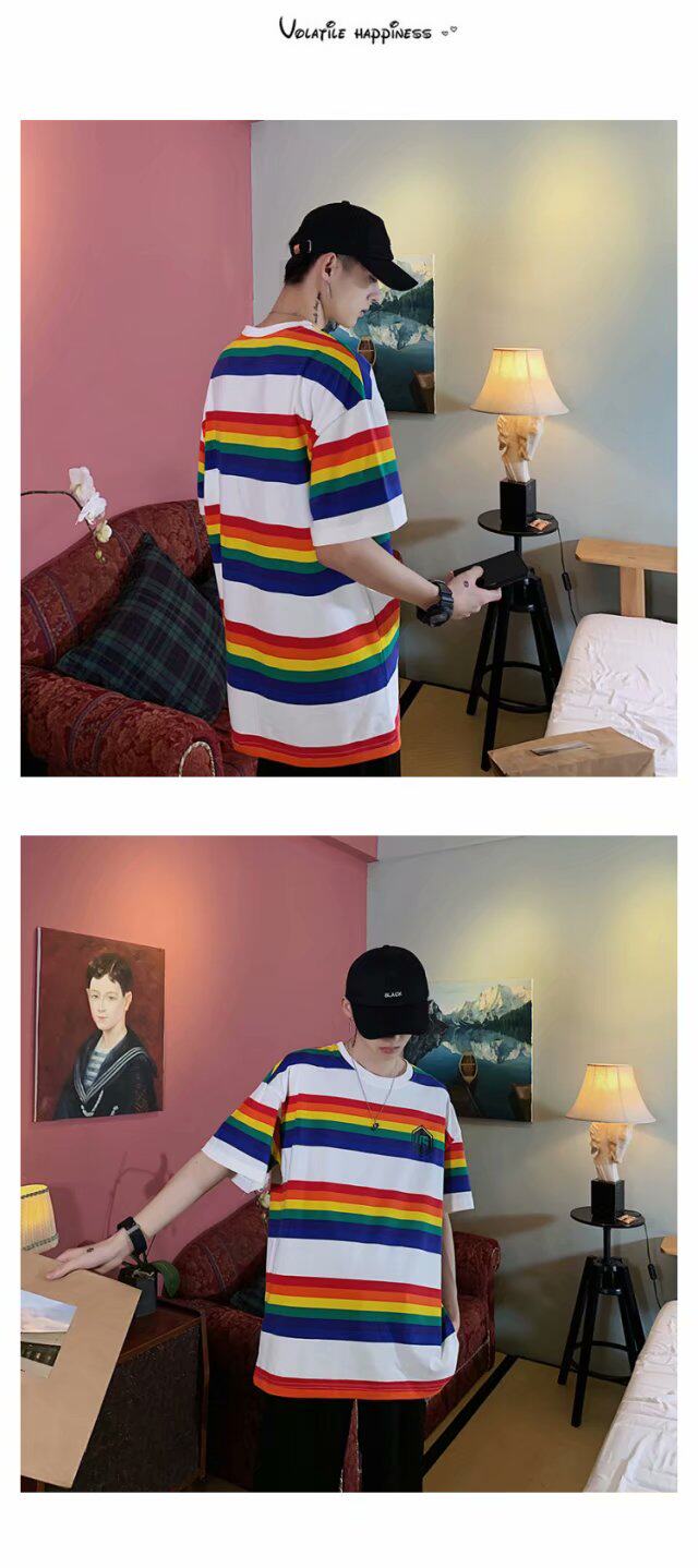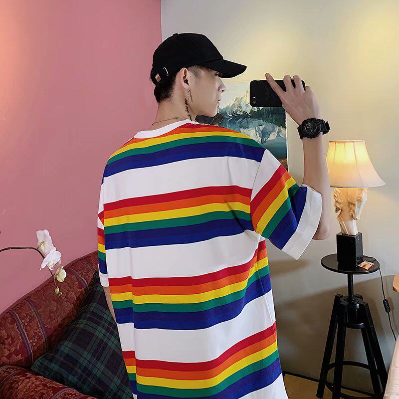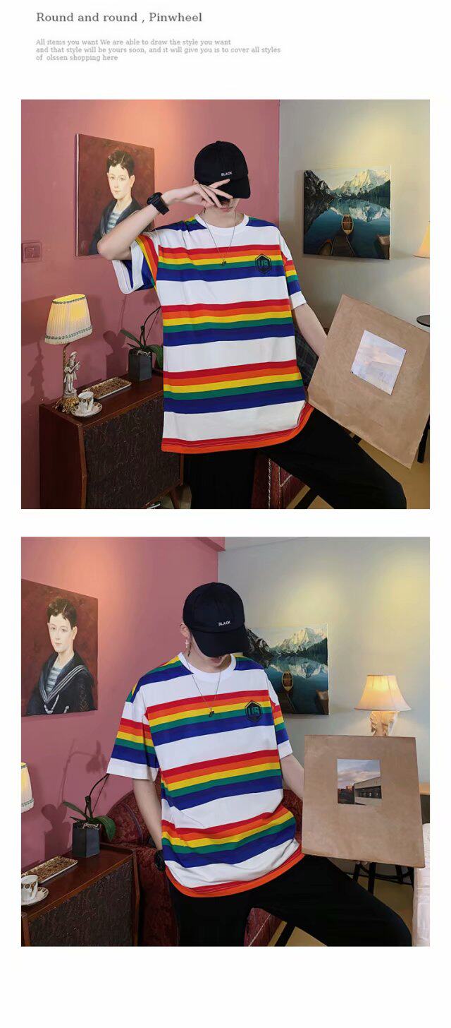 Радужная трендовая футболка с коротким рукавом, короткий рукав, оверсайз