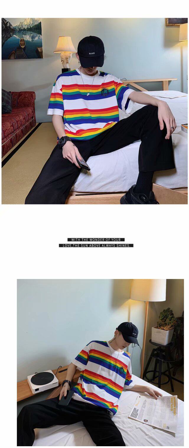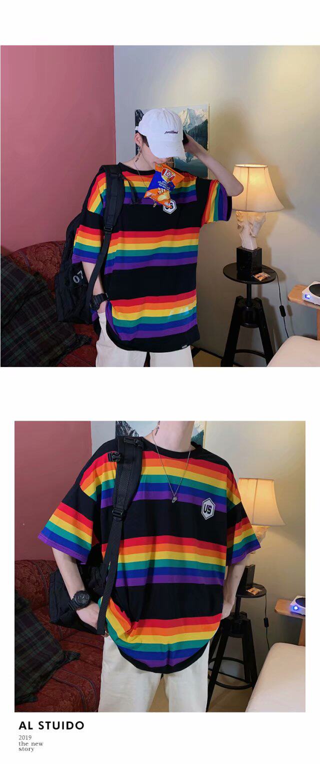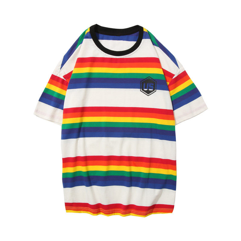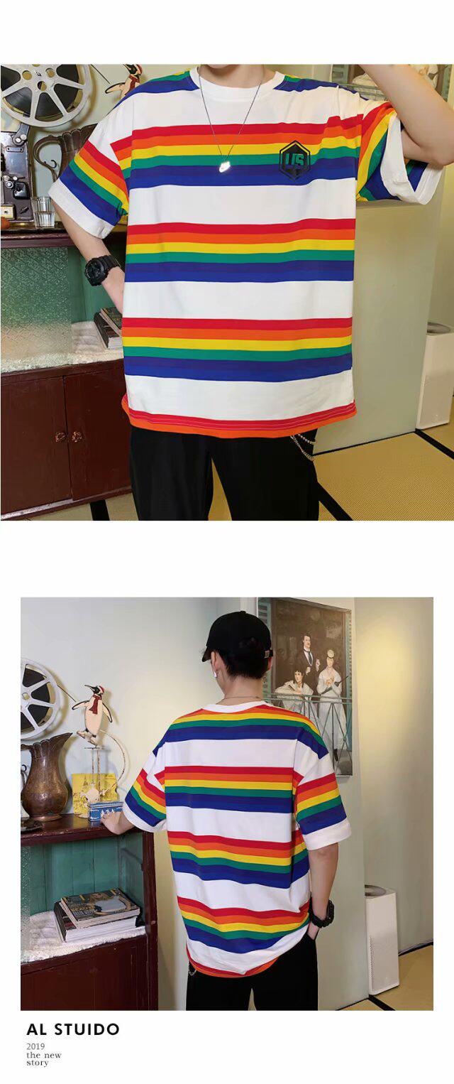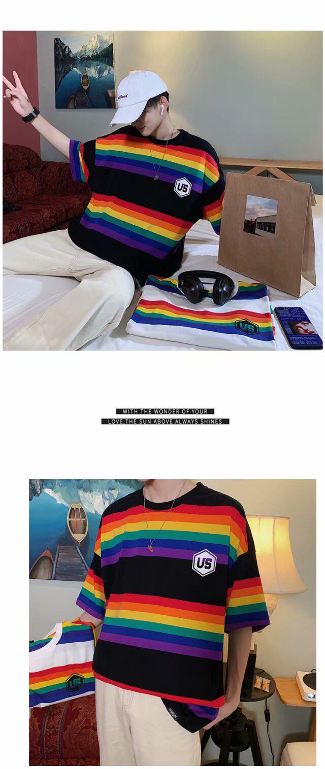 Радужная трендовая футболка с коротким рукавом, короткий рукав, оверсайз