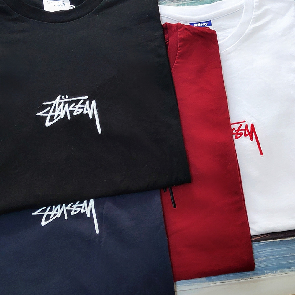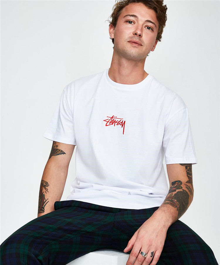 Австралийская версия подлинного Stussy Stock Tee Tee Logo, вышитый логотип с короткими мужчинами и женщинами.