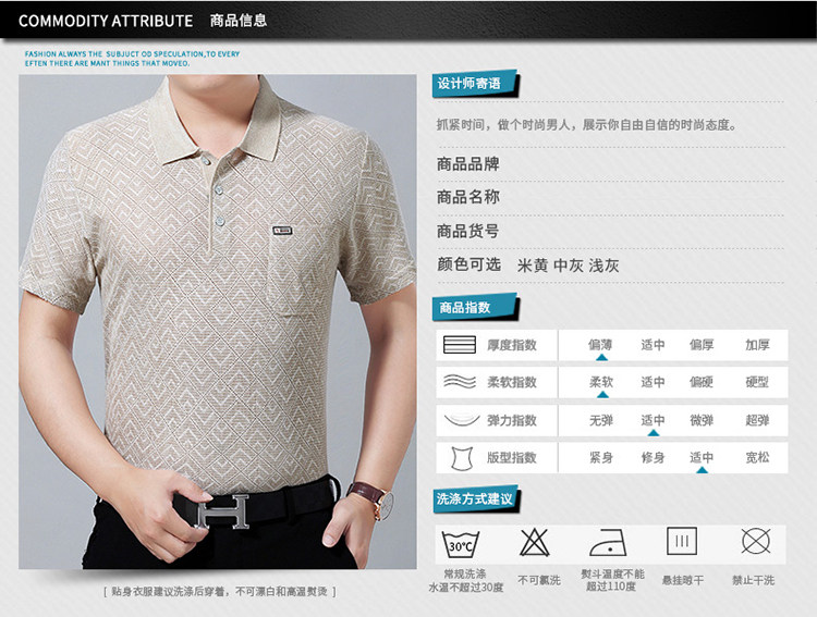 Летняя футболка с коротким рукавом, летняя одежда, для мужчины среднего возраста