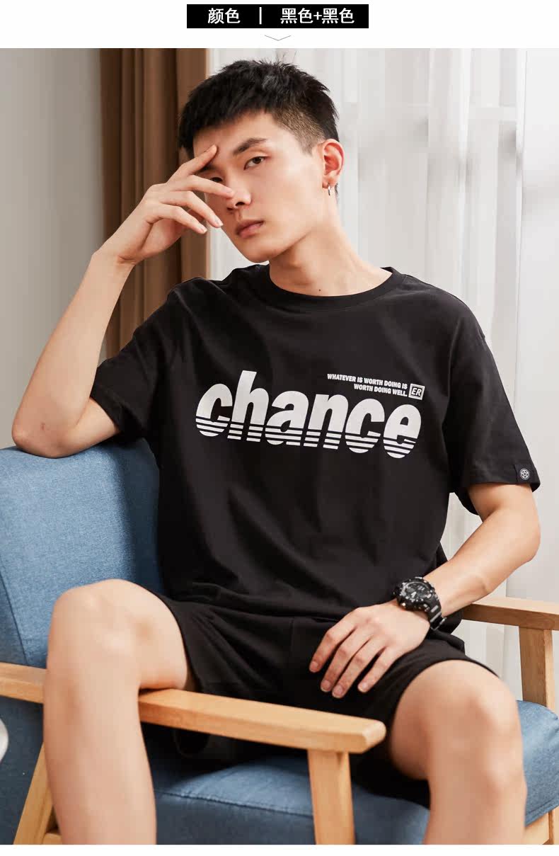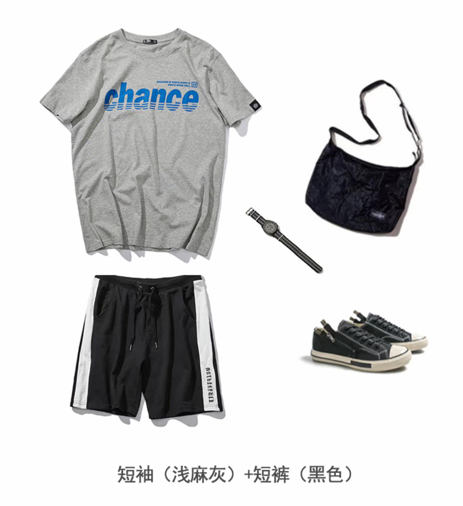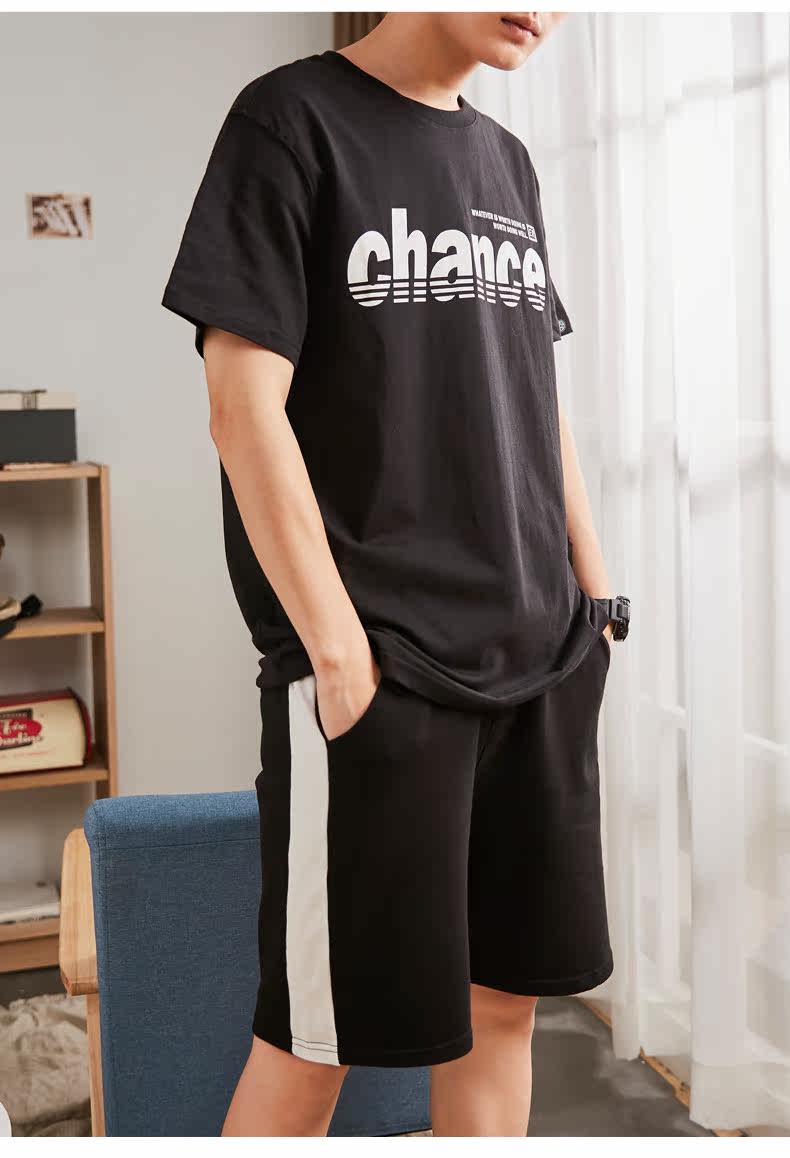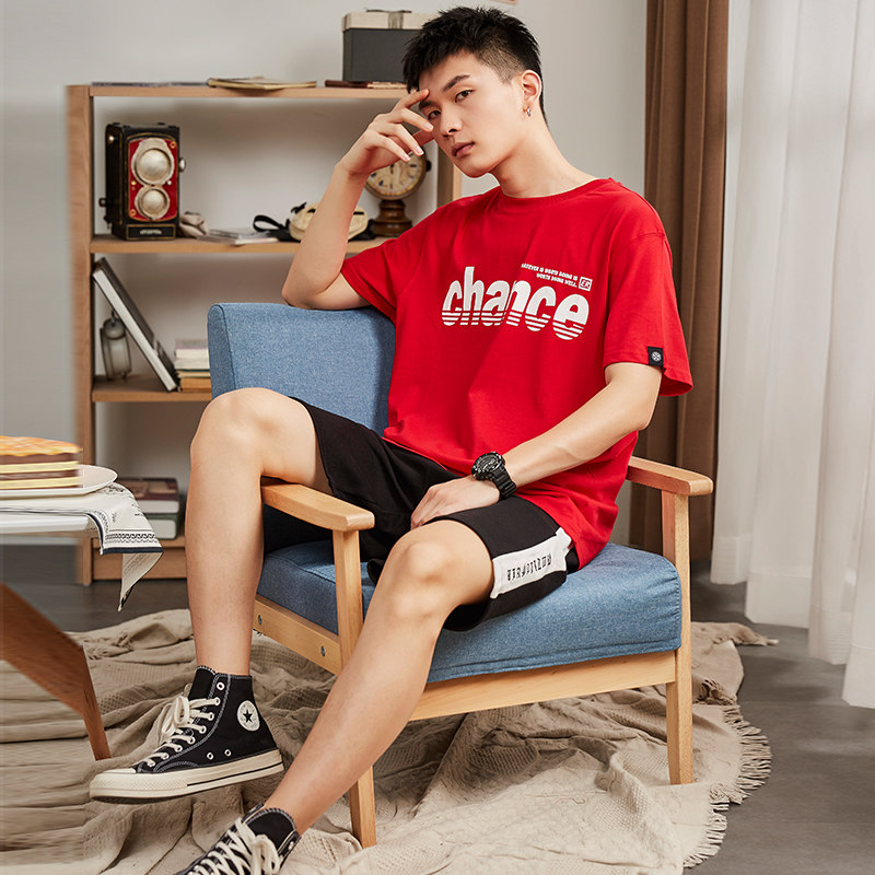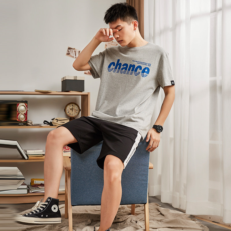Футболка с коротким рукавом, летний комплект, хлопковые шорты для отдыха, штаны, в корейском стиле