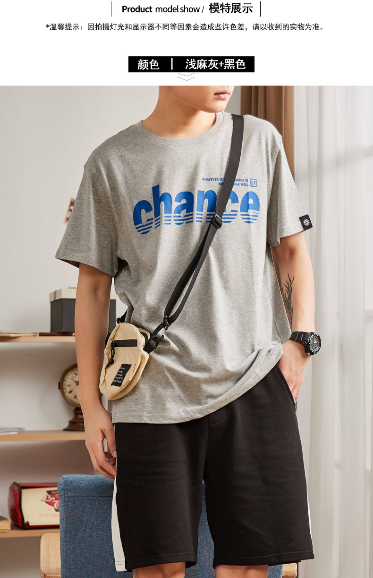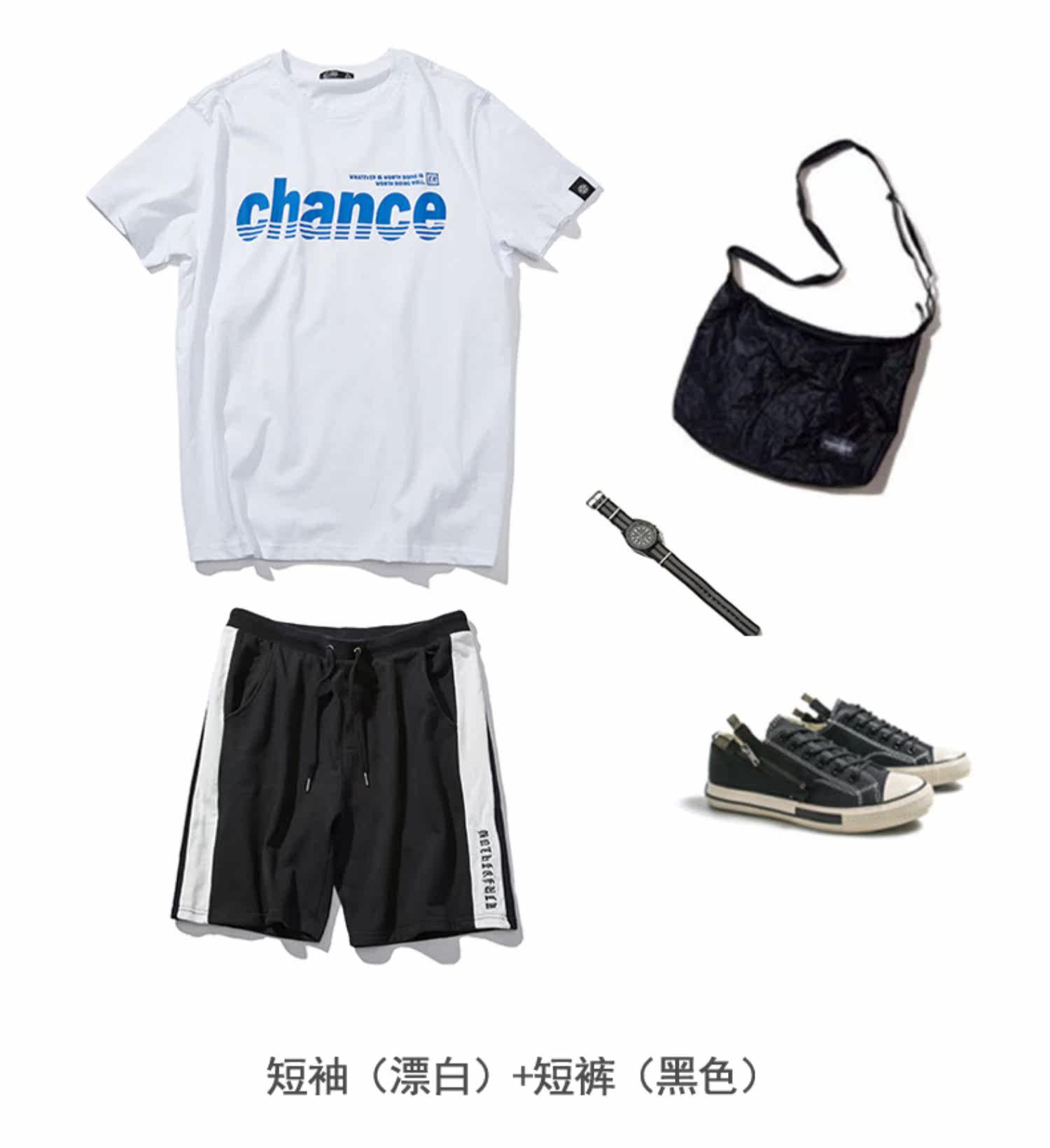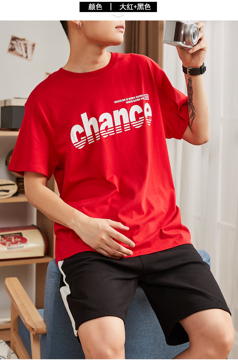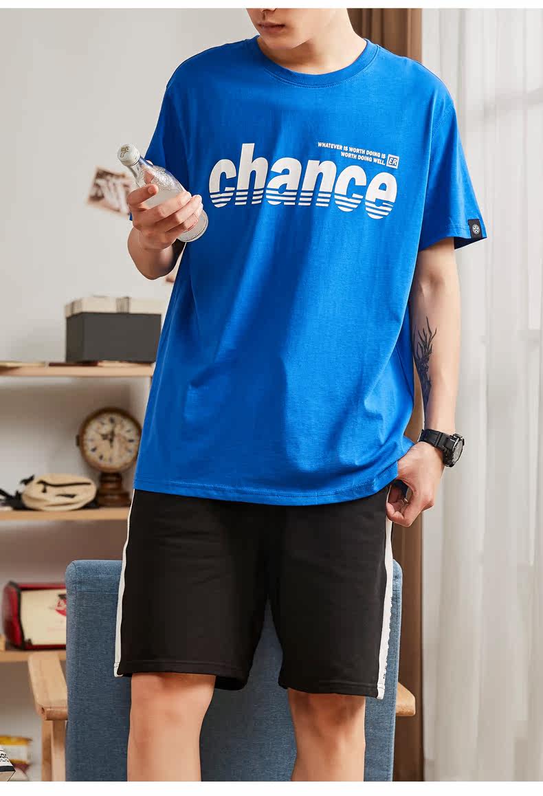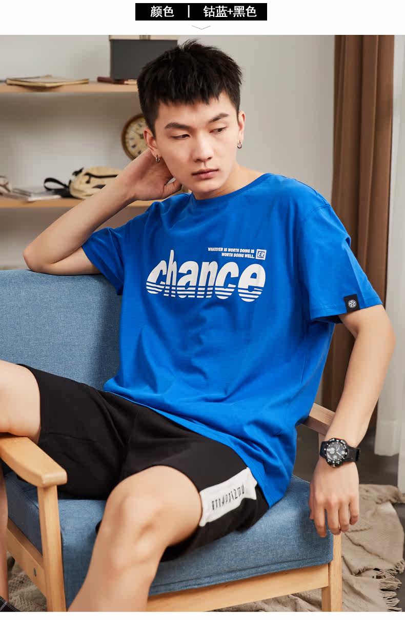 Футболка с коротким рукавом, летний комплект, хлопковые шорты для отдыха, штаны, в корейском стиле