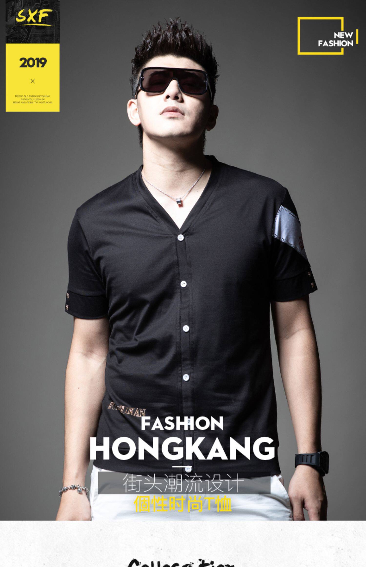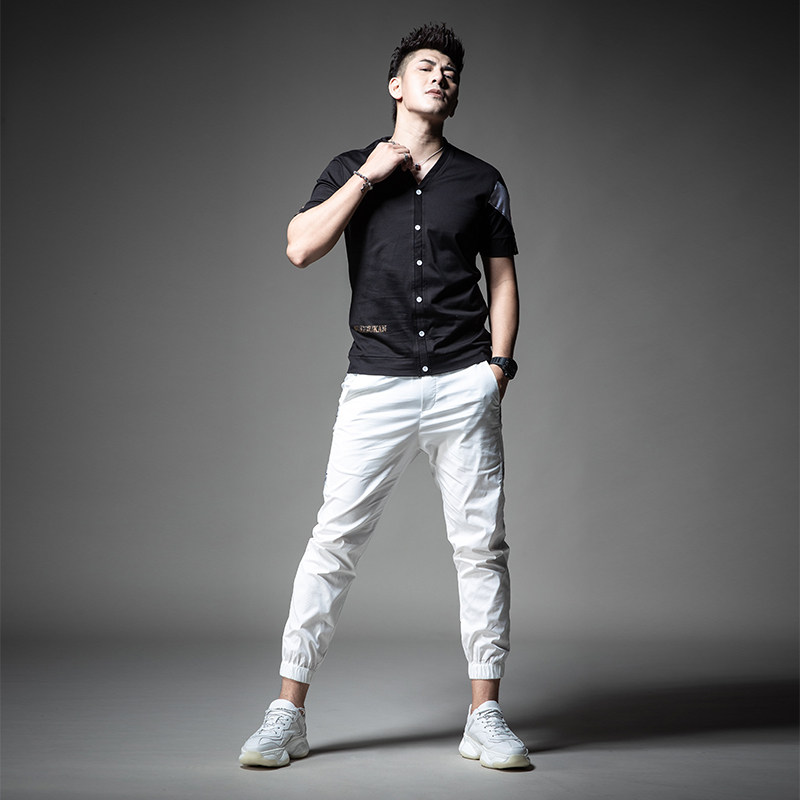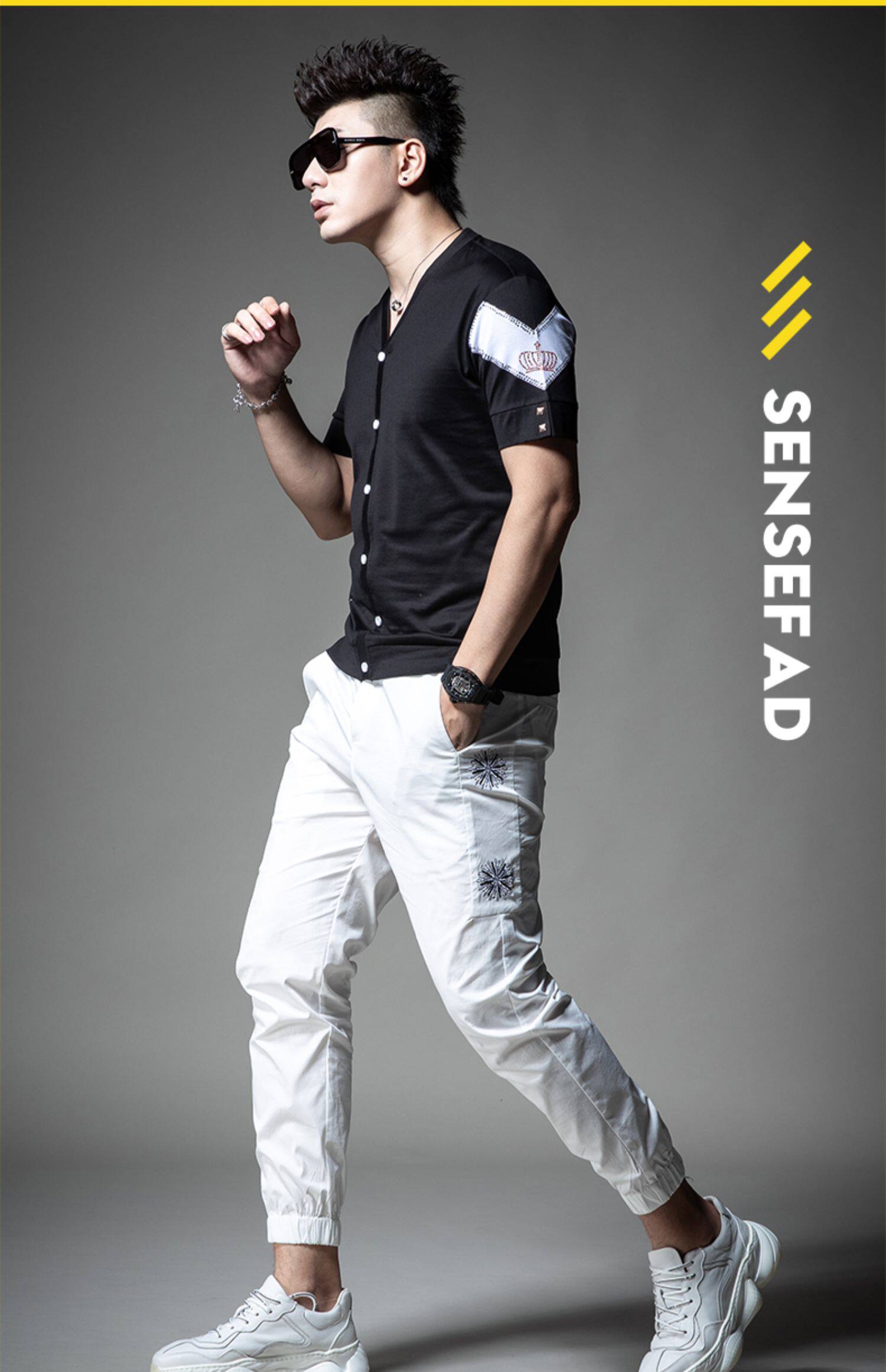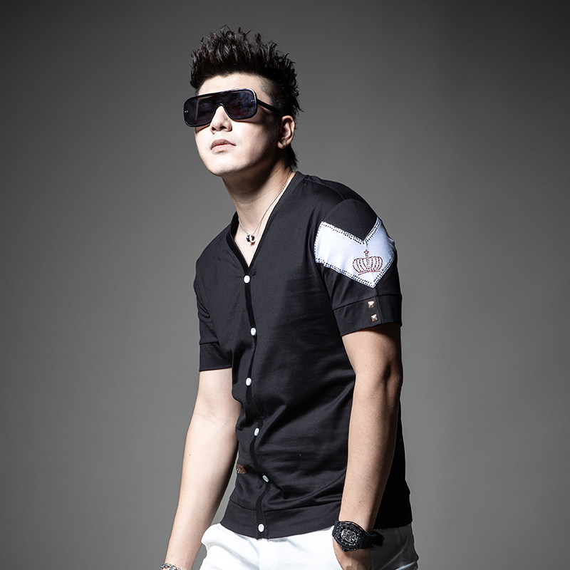 Летняя футболка с коротким рукавом, V-образный вырез