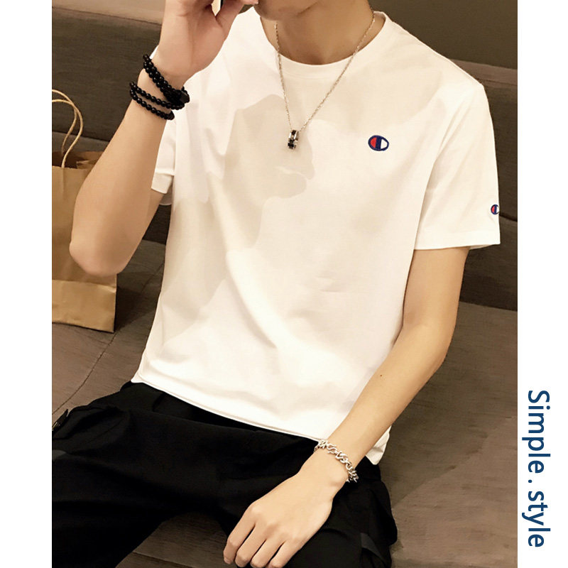 Мужская хлопковая летняя трендовая брендовая универсальная футболка с коротким рукавом для школьников