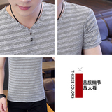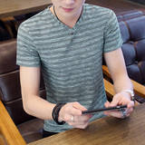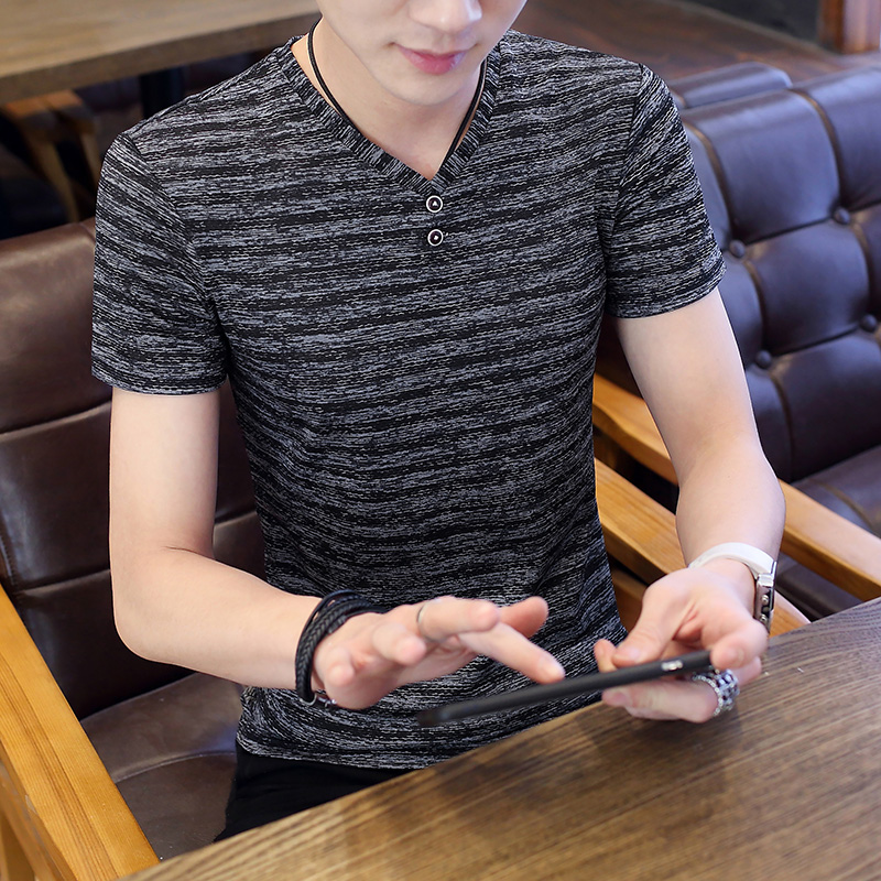 Мужская летняя шелковая тонкая приталенная трендовая элитная футболка, короткий рукав, изысканный стиль, коллекция 2023, V-образный вырез, высокий воротник