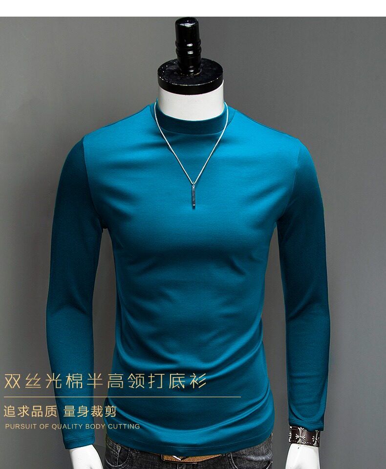 Осенний хлопковый лонгслив, базовое приятное телу трендовое термобелье, высокий воротник, облегающий крой