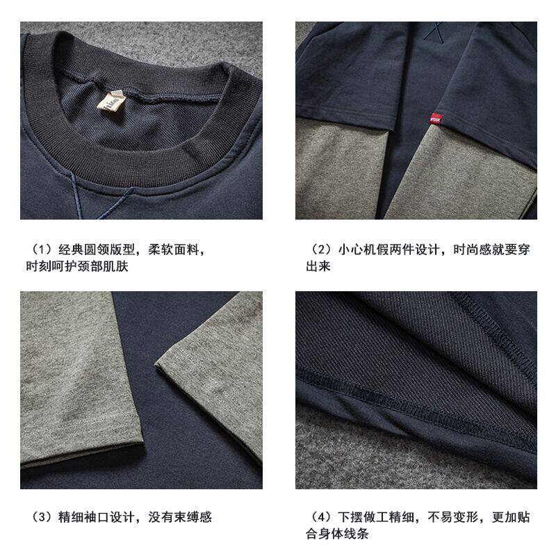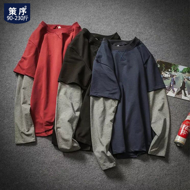 Мужской японский лонгслив, комплект с круглым воротником, мужская весенняя куртка, большой размер, оверсайз