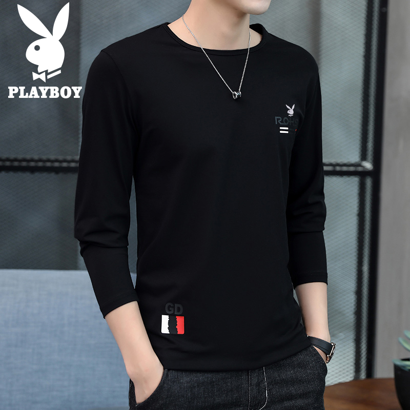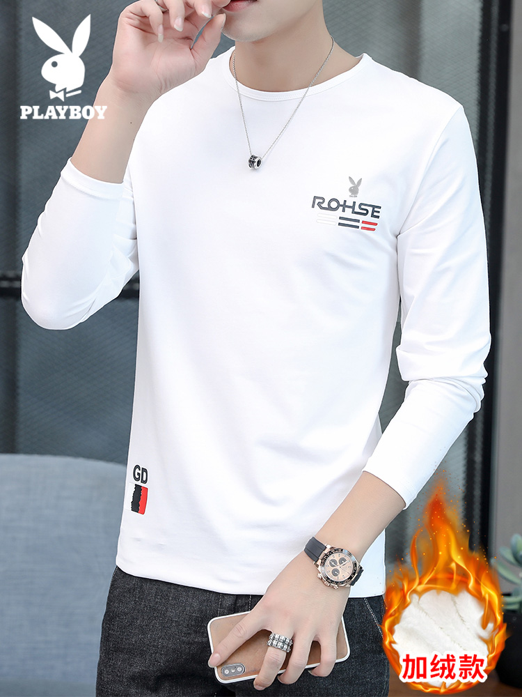 Playboy, мужской хлопковый демисезонный осенний лонгслив, трендовая белая футболка, термобелье, круглый воротник