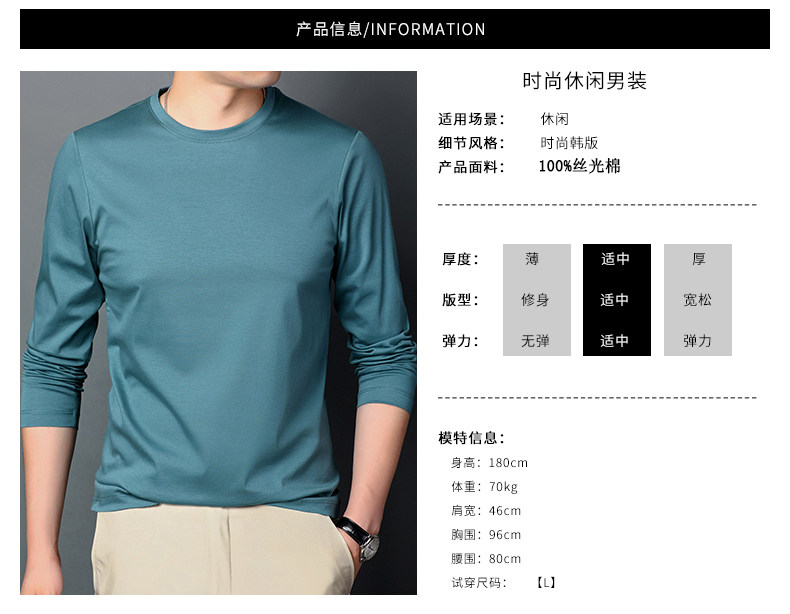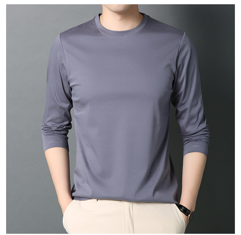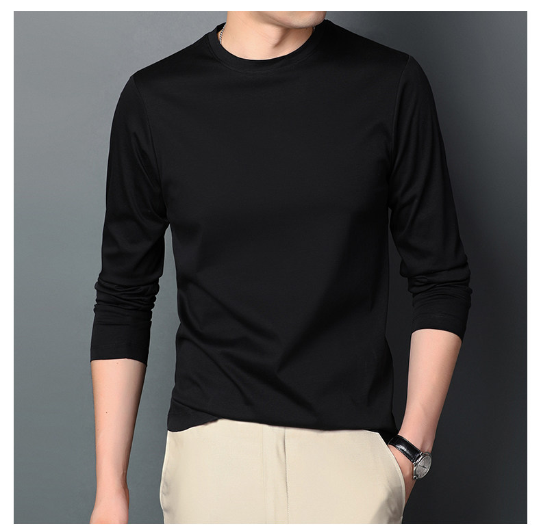 Хлопковая футболка, осенний однотонный хлопковый лонгслив с круглым воротником