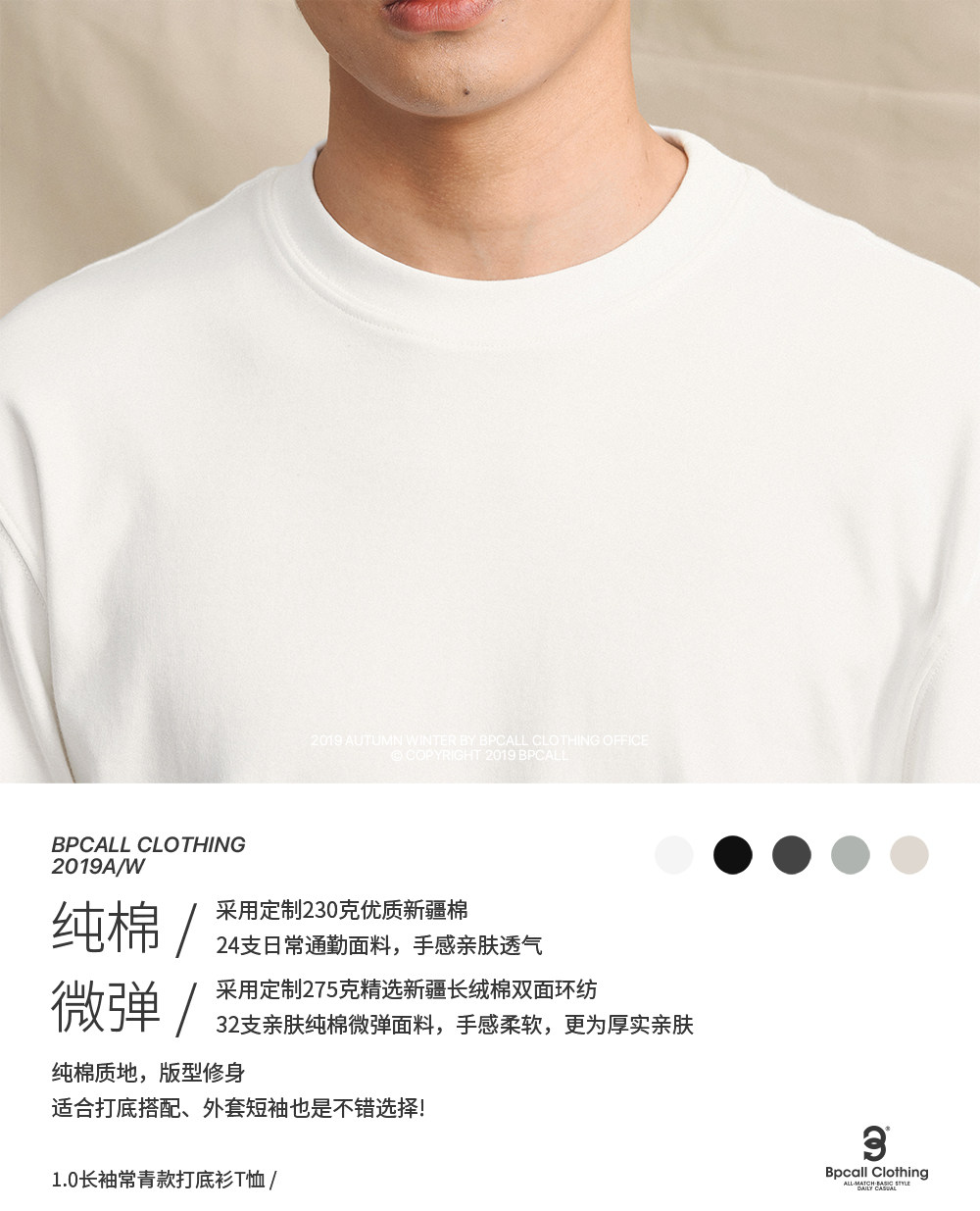 BPCALL Демисезонный японский хлопковый базовый многоцветный лонгслив, увеличенная толщина