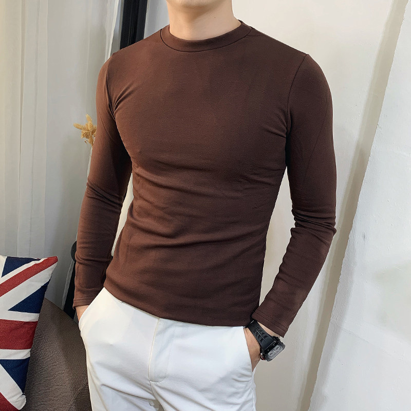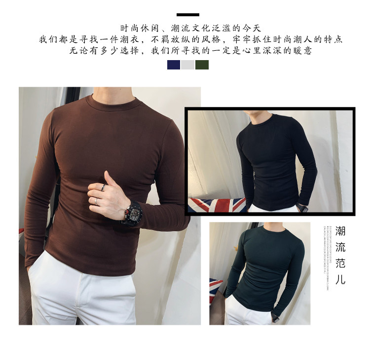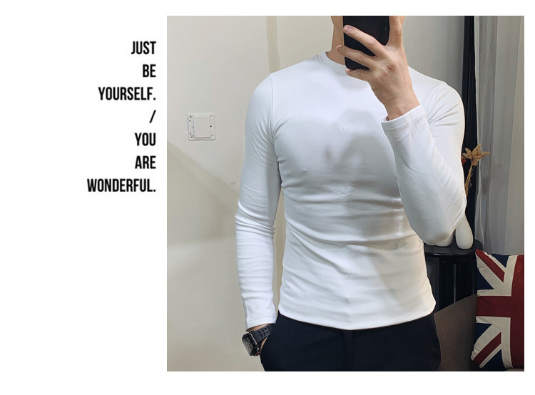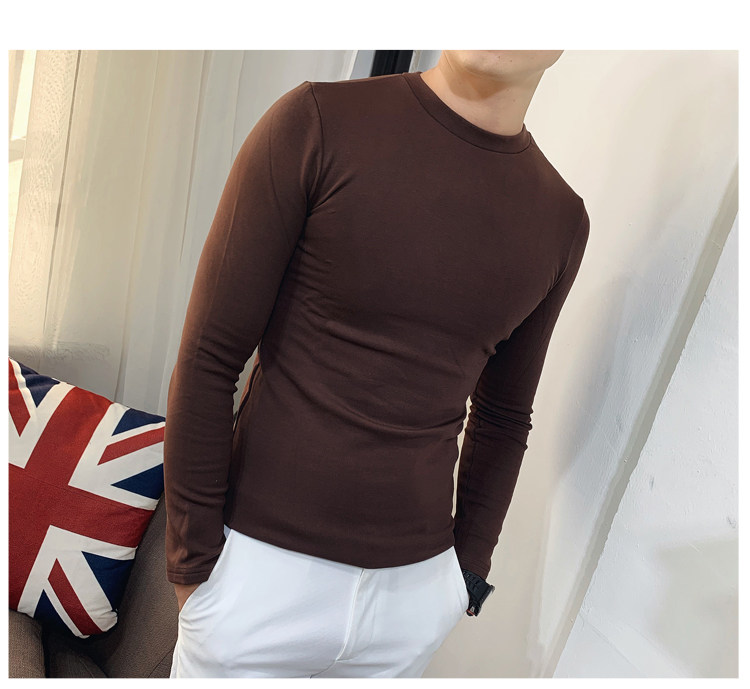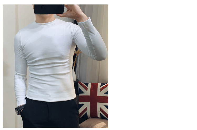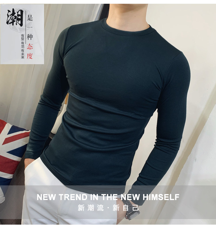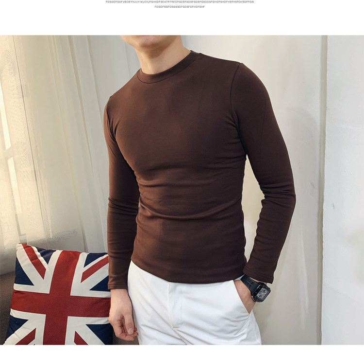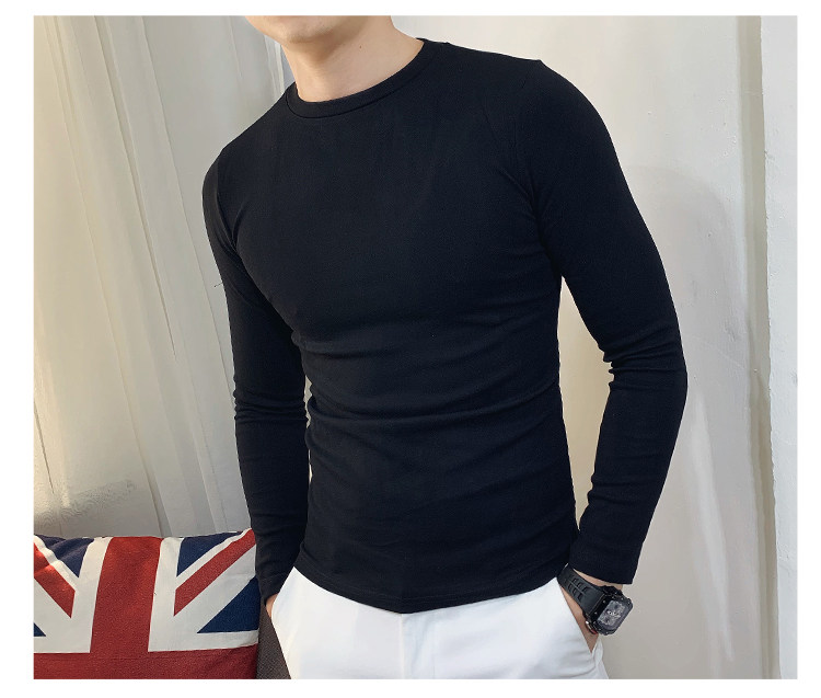Демисезонный трендовый флисовый лонгслив с круглым воротником, облегающий крой, в корейском стиле